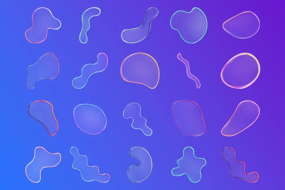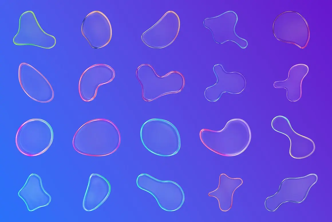 50 Bubbles PNG Shapes 50款彩虹时尚彩色半透明泡泡水珠艺术气泡webp免抠高清图片素材