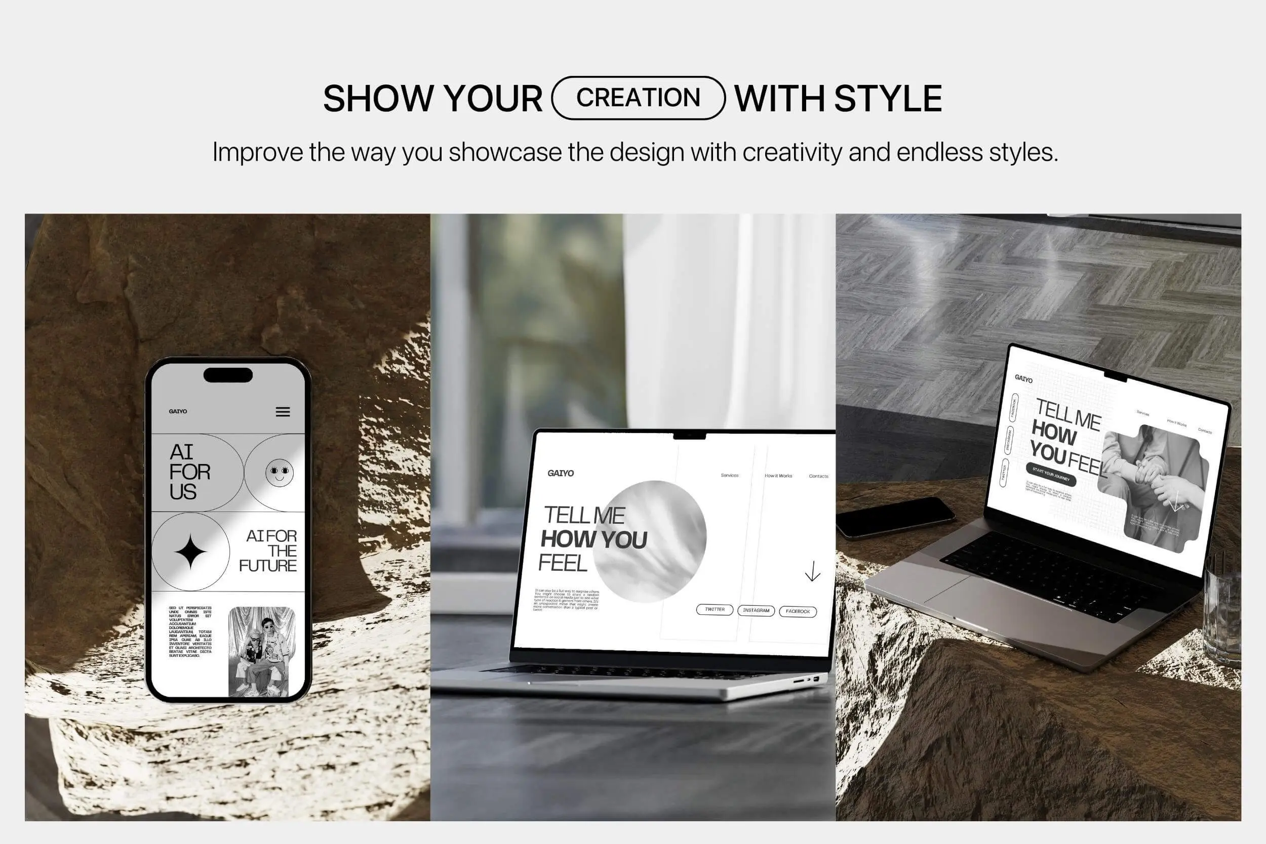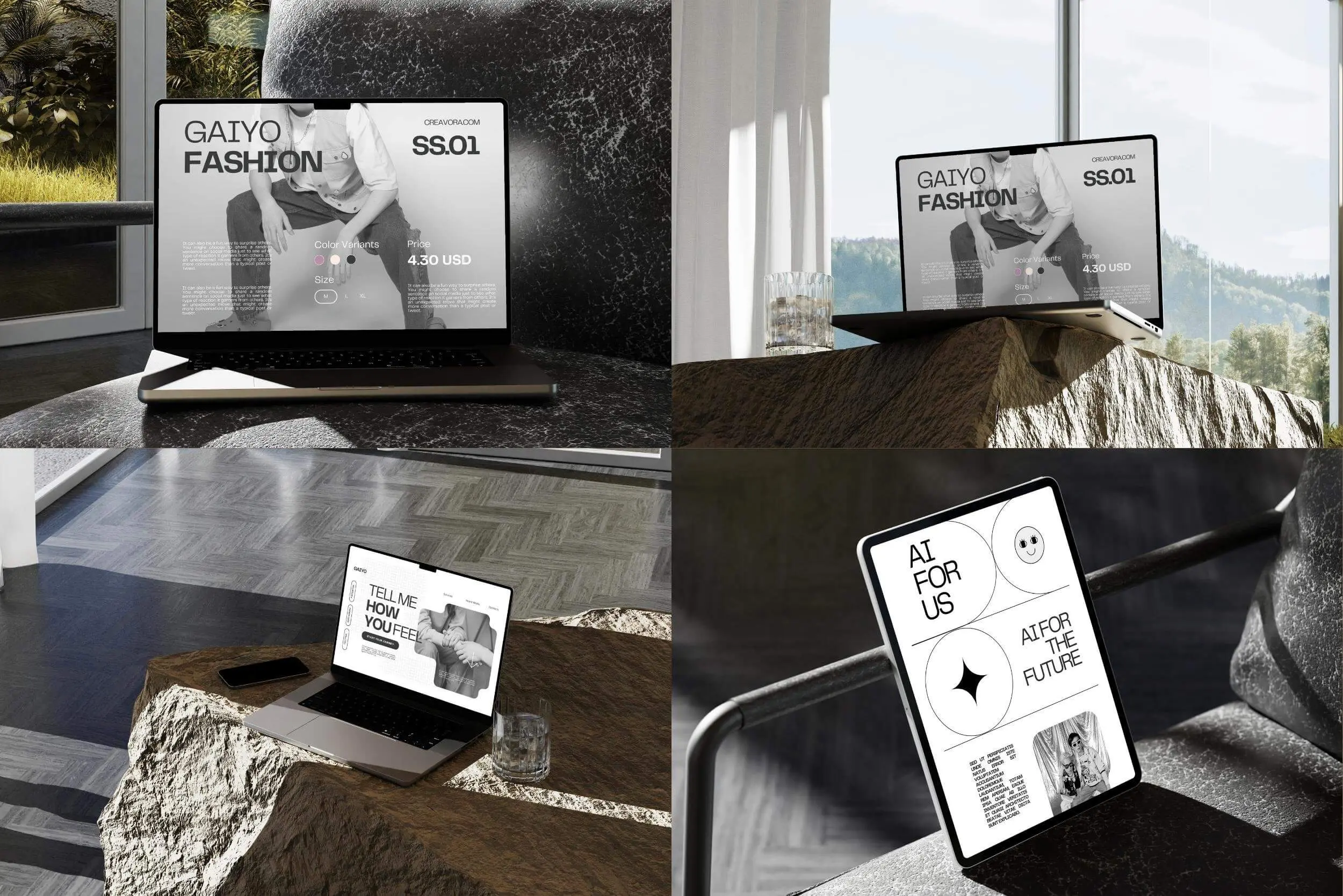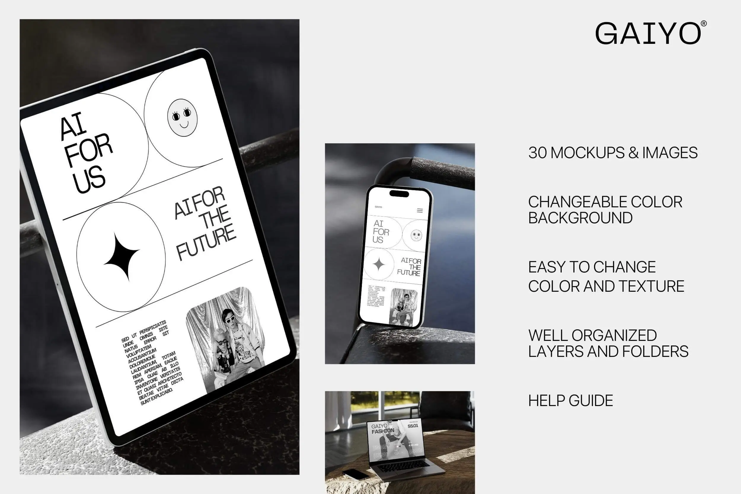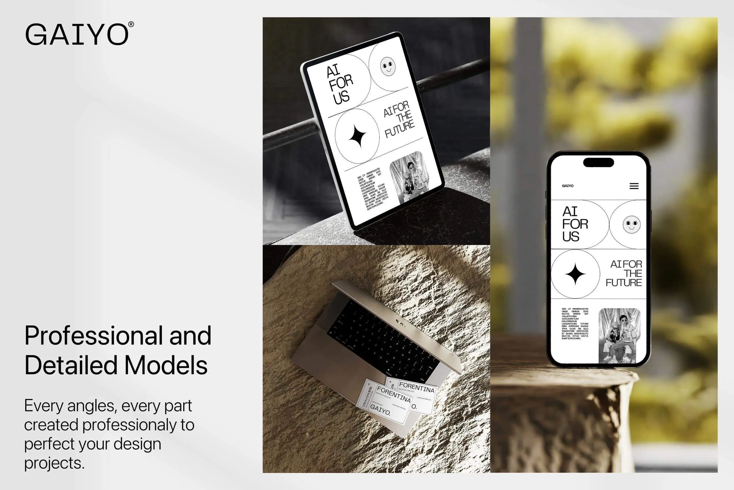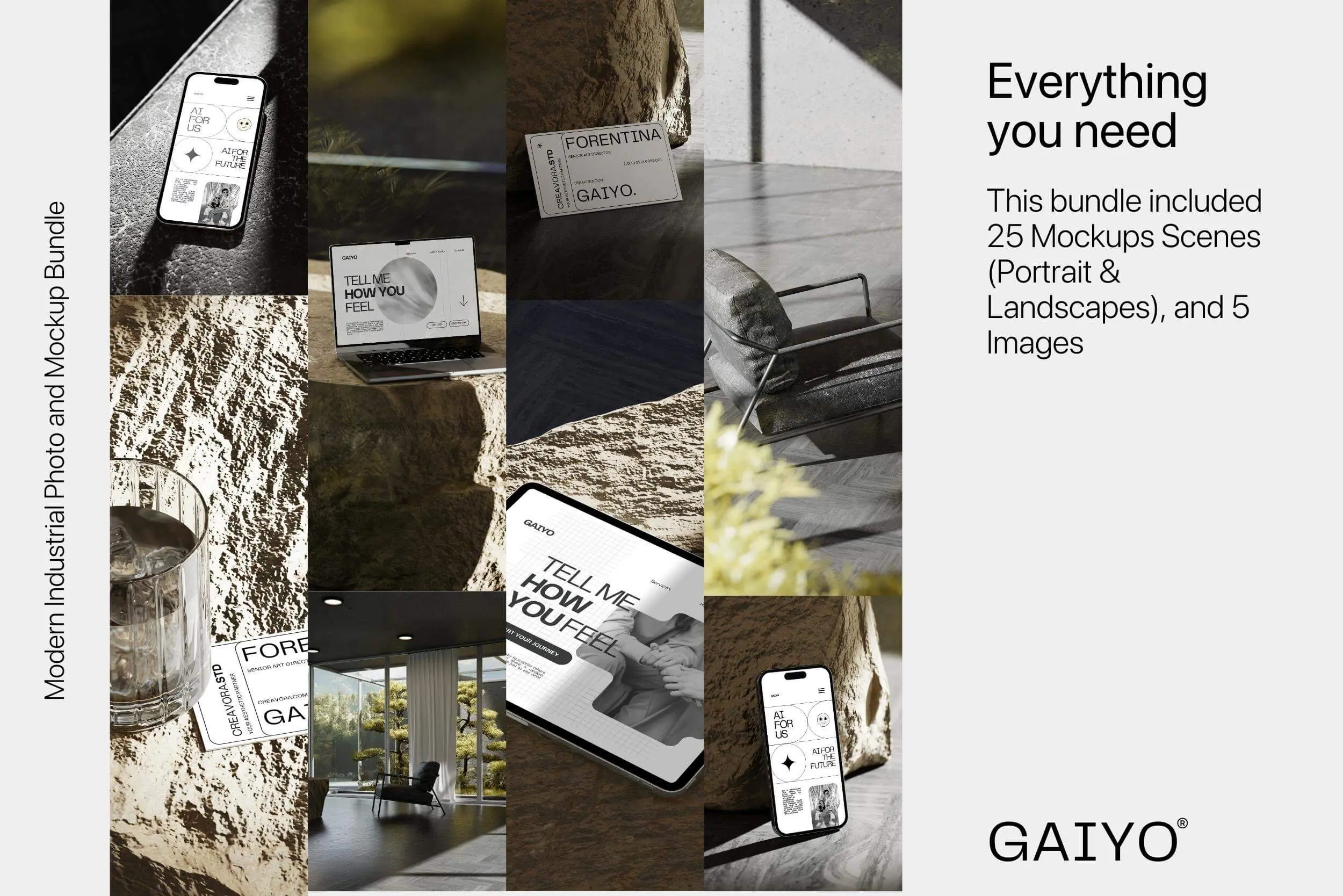 Gaiyo – Industrial Mockup Bundle 25款工业风iPhone手机iPad页面设计贴图ps样机素材空间展示效果图