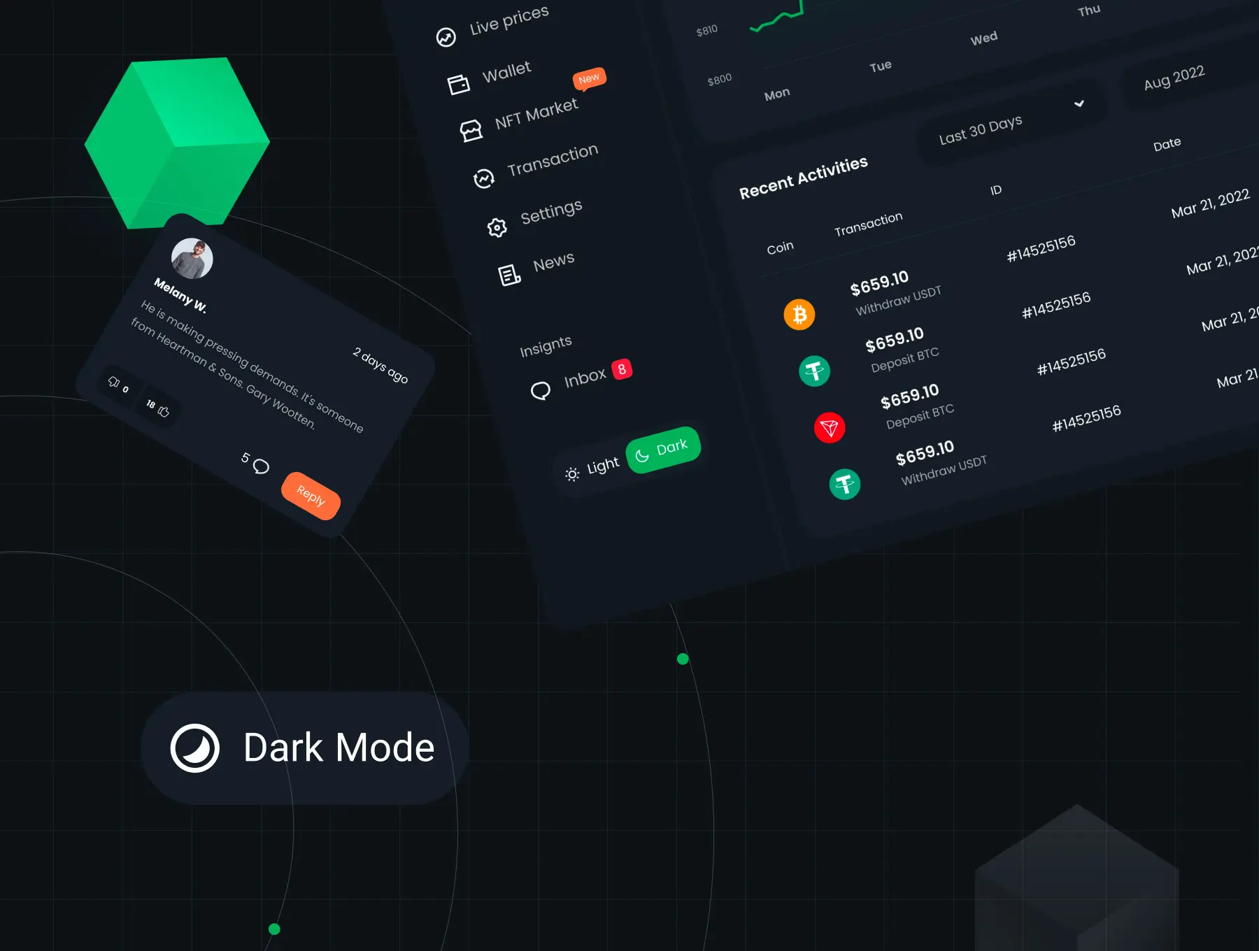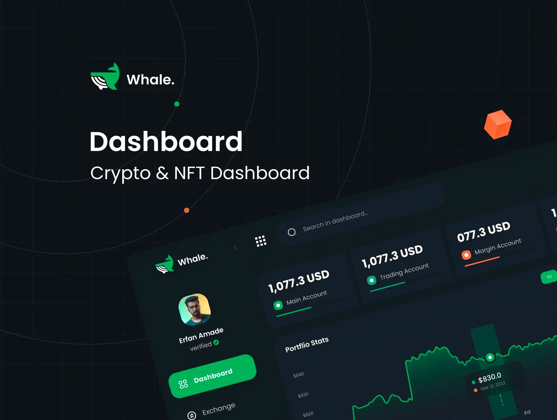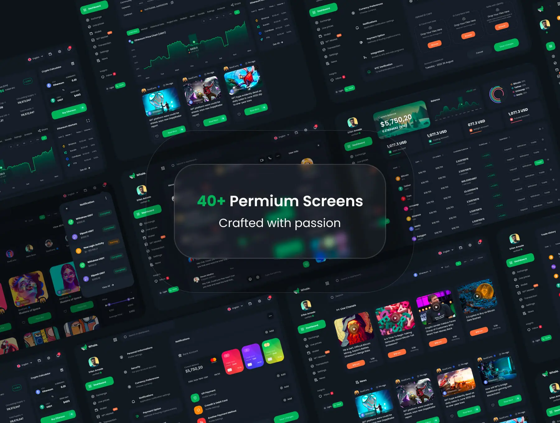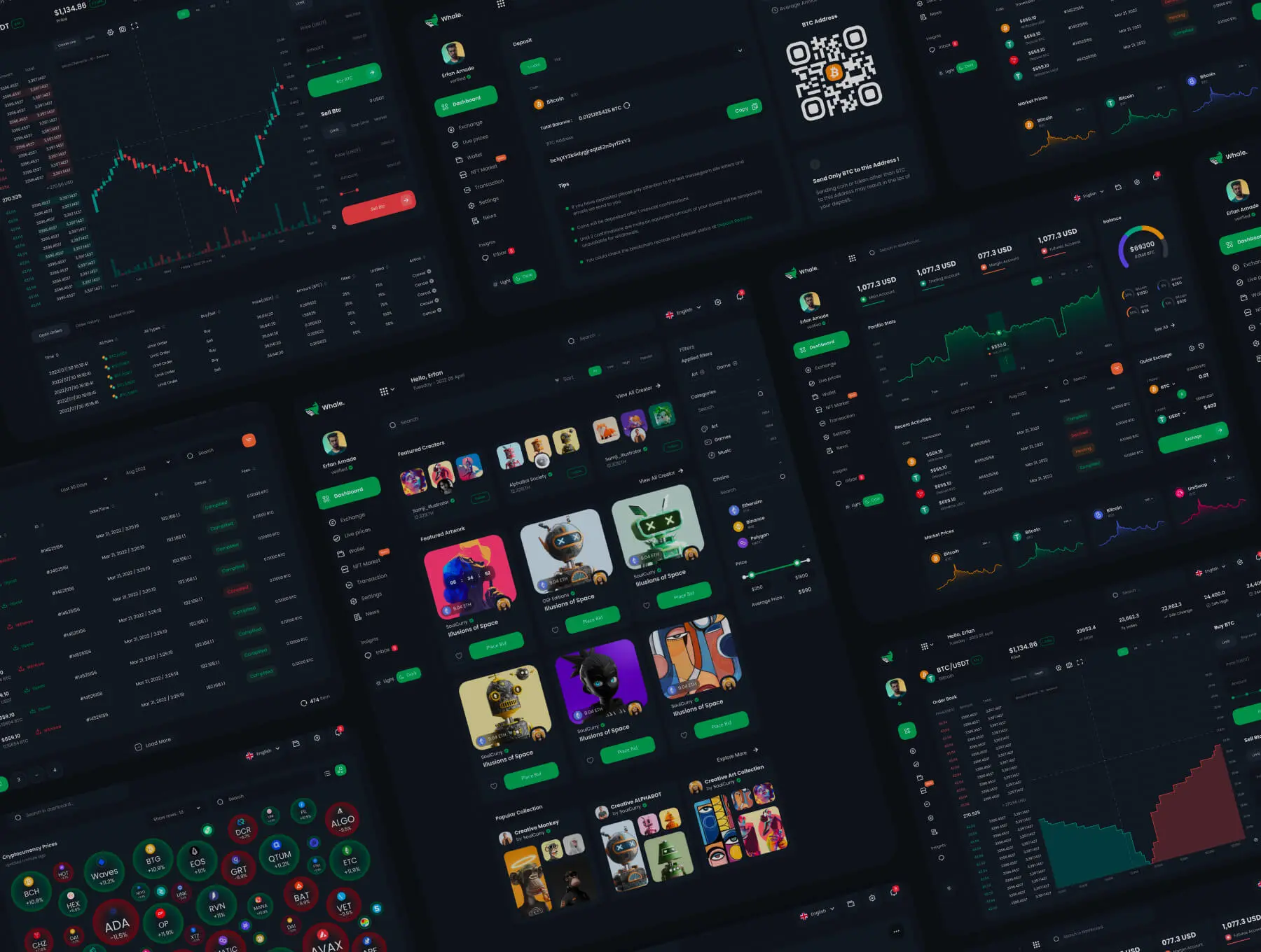Crypto Whale – Crypto & NFT Dashboard UI Kit 40+屏暗黑NFT加密货币在线交易平台网站这几设计Figma模板素材
