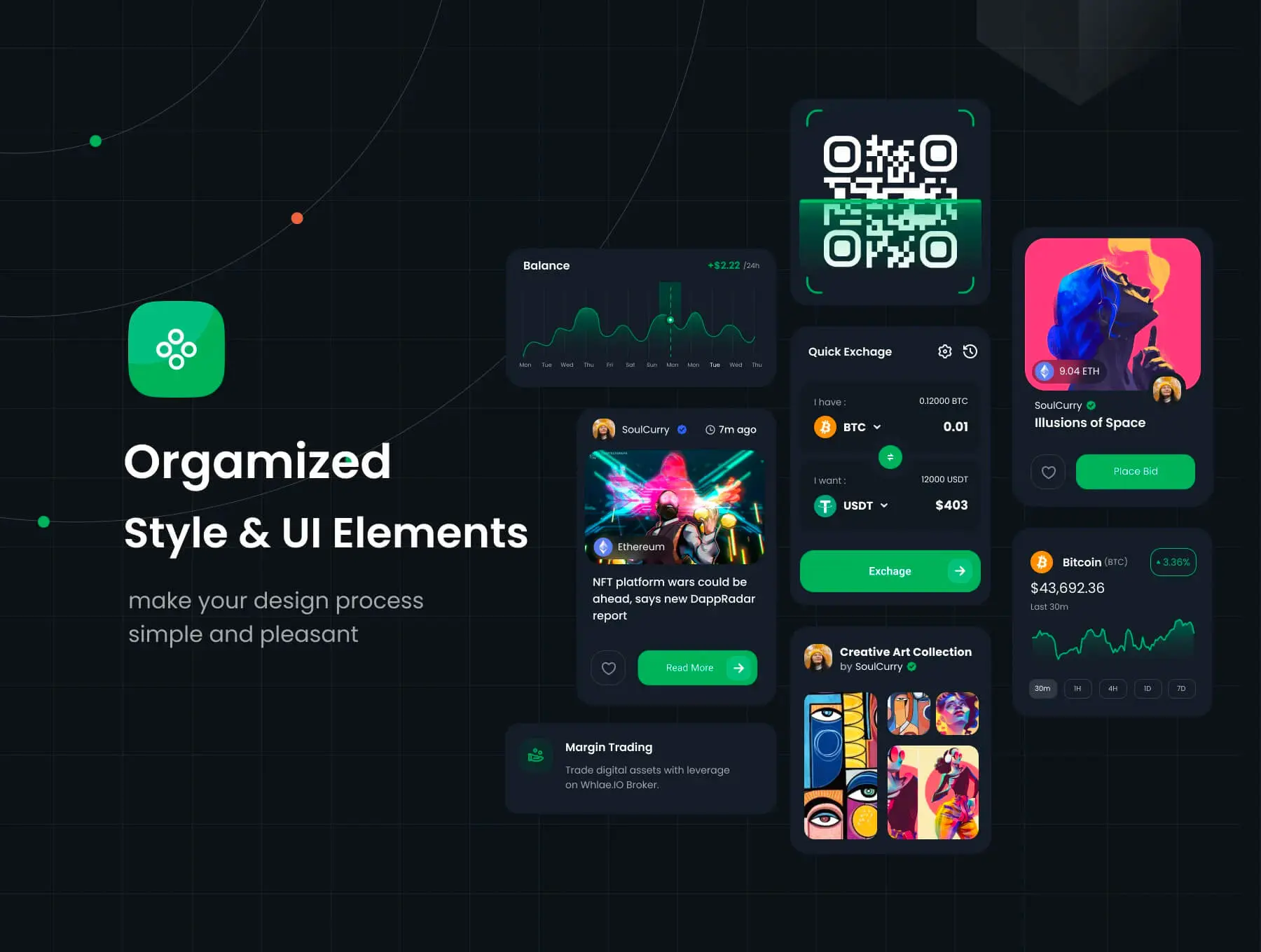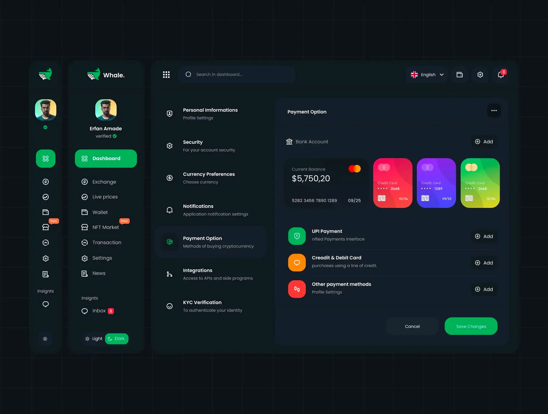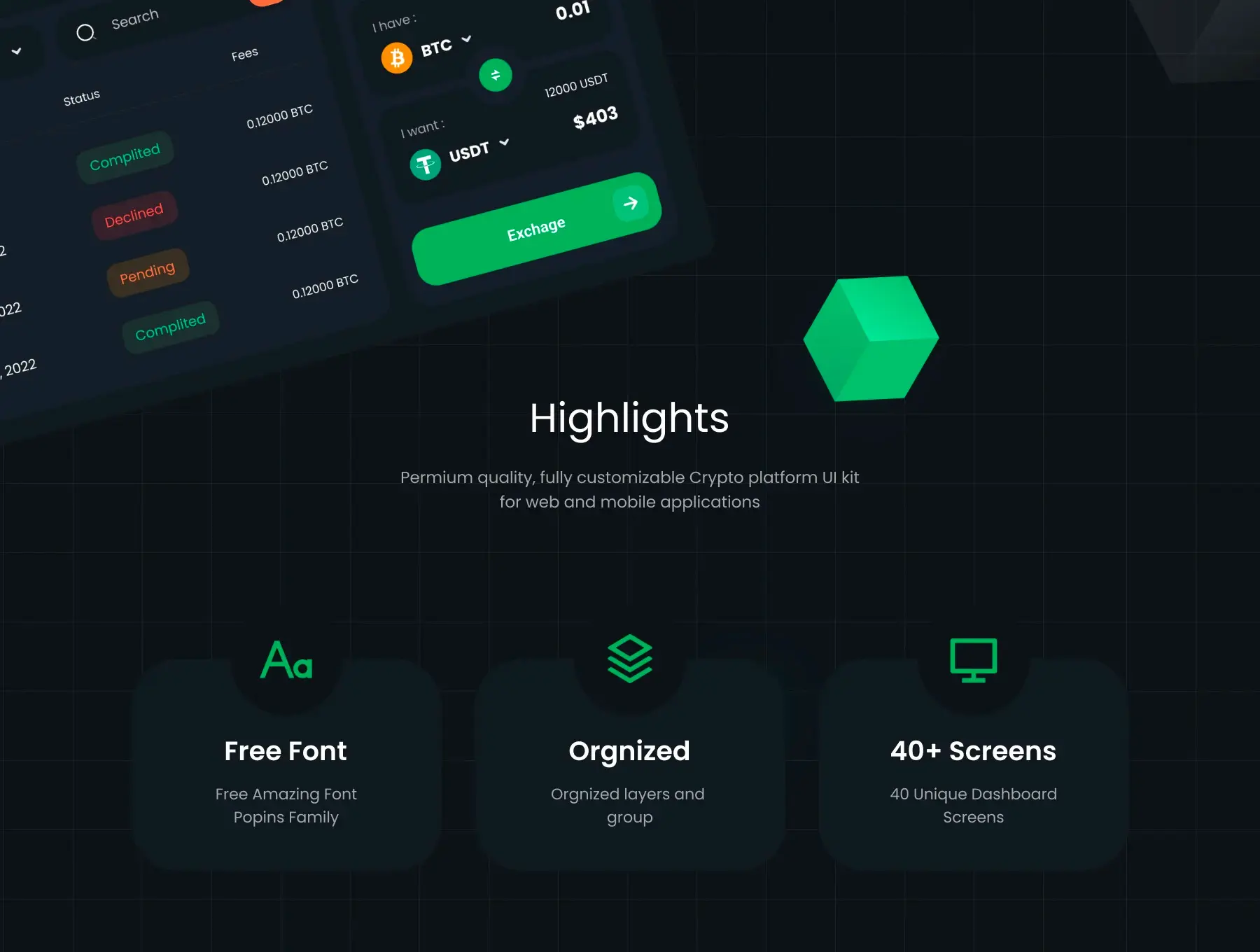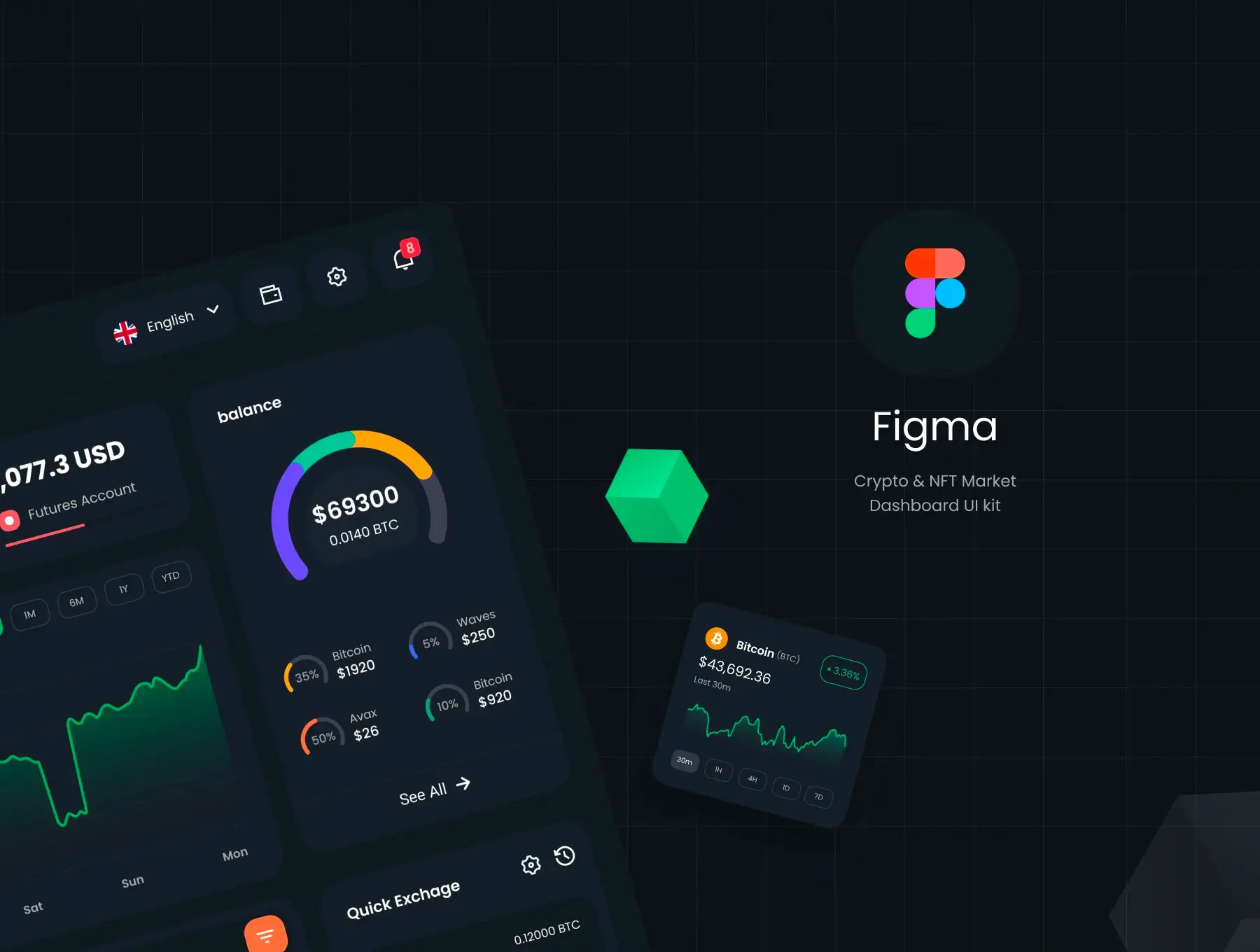 Crypto Whale – Crypto & NFT Dashboard UI Kit 40+屏暗黑NFT加密货币在线交易平台网站这几设计Figma模板素材