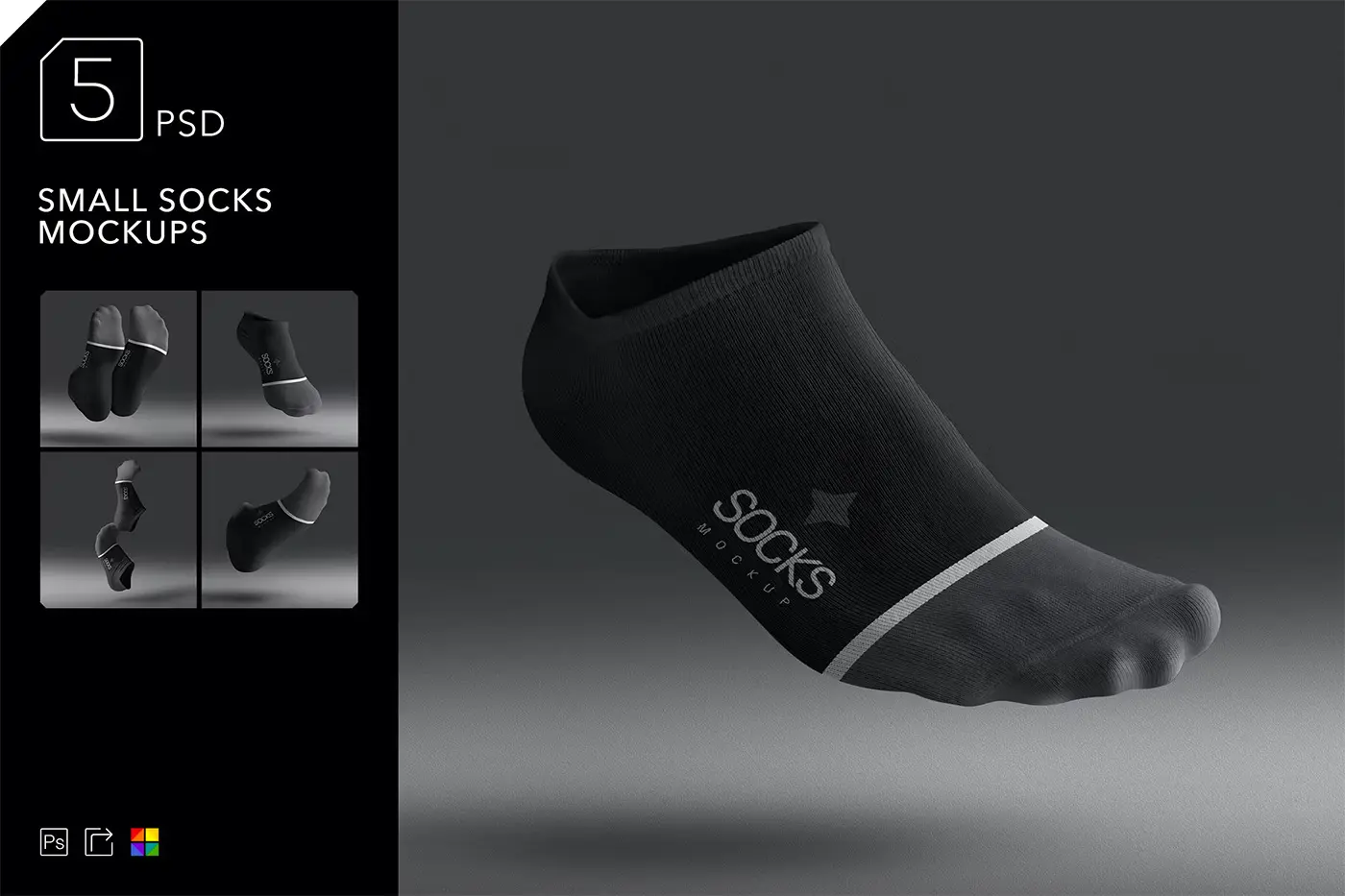Small Socks Mockups 低帮短跟棉布袜子模型logo标识设计贴图ps服饰样机素材模板