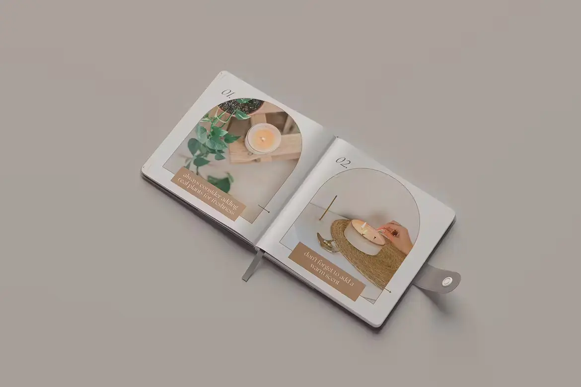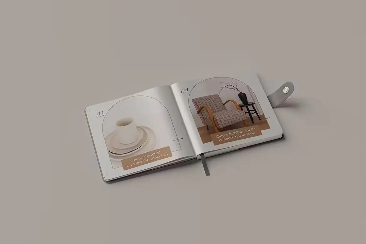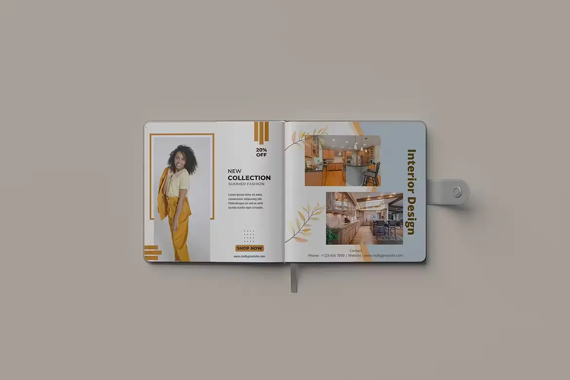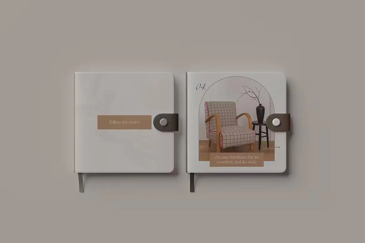Square NoteBook Magazine Mock-Up 5款圆角软面方形搭扣笔记本记事本备忘录模型封面内页展示设计贴图ps文具样机素材模板