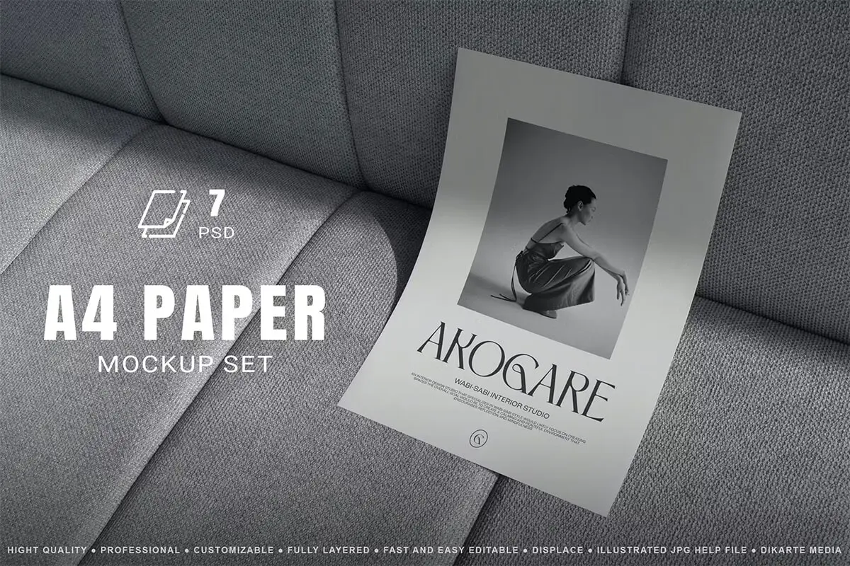 A4 Paper Mockups Set 7款A4单页海报宣传单简历设计作品贴图ps样机素材场景展示效果图
