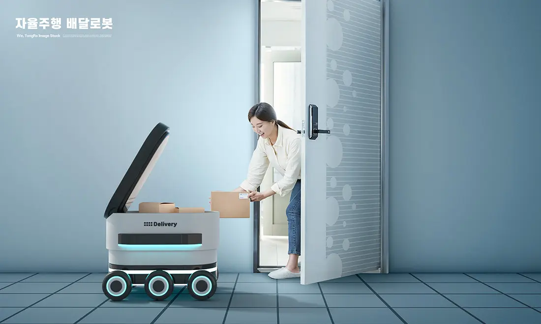 Smart Delivery Poster Template 17款时尚创意智能无人送货快递物流机器人海报招贴设计PSD分层源文件素材