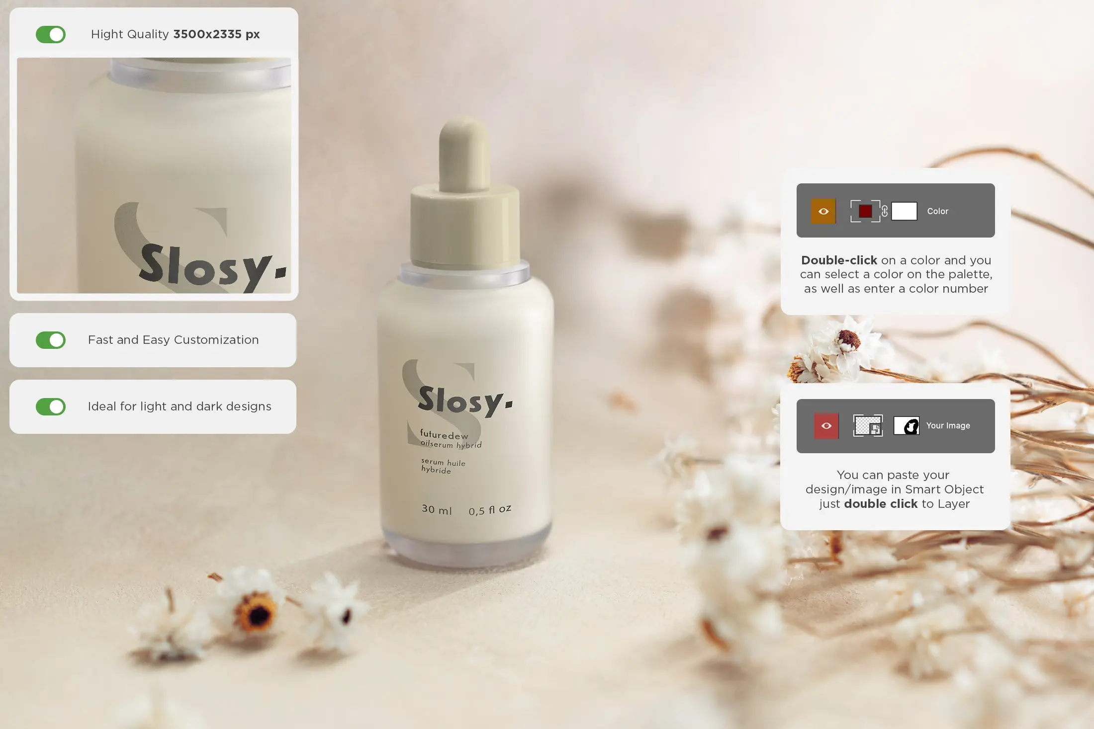 如果您制作化妆品品牌并且需要在瓶子上看到徽标,您可以使用我们的模型,或者您需要向客户展示您的设计,这就是您所需要的。
