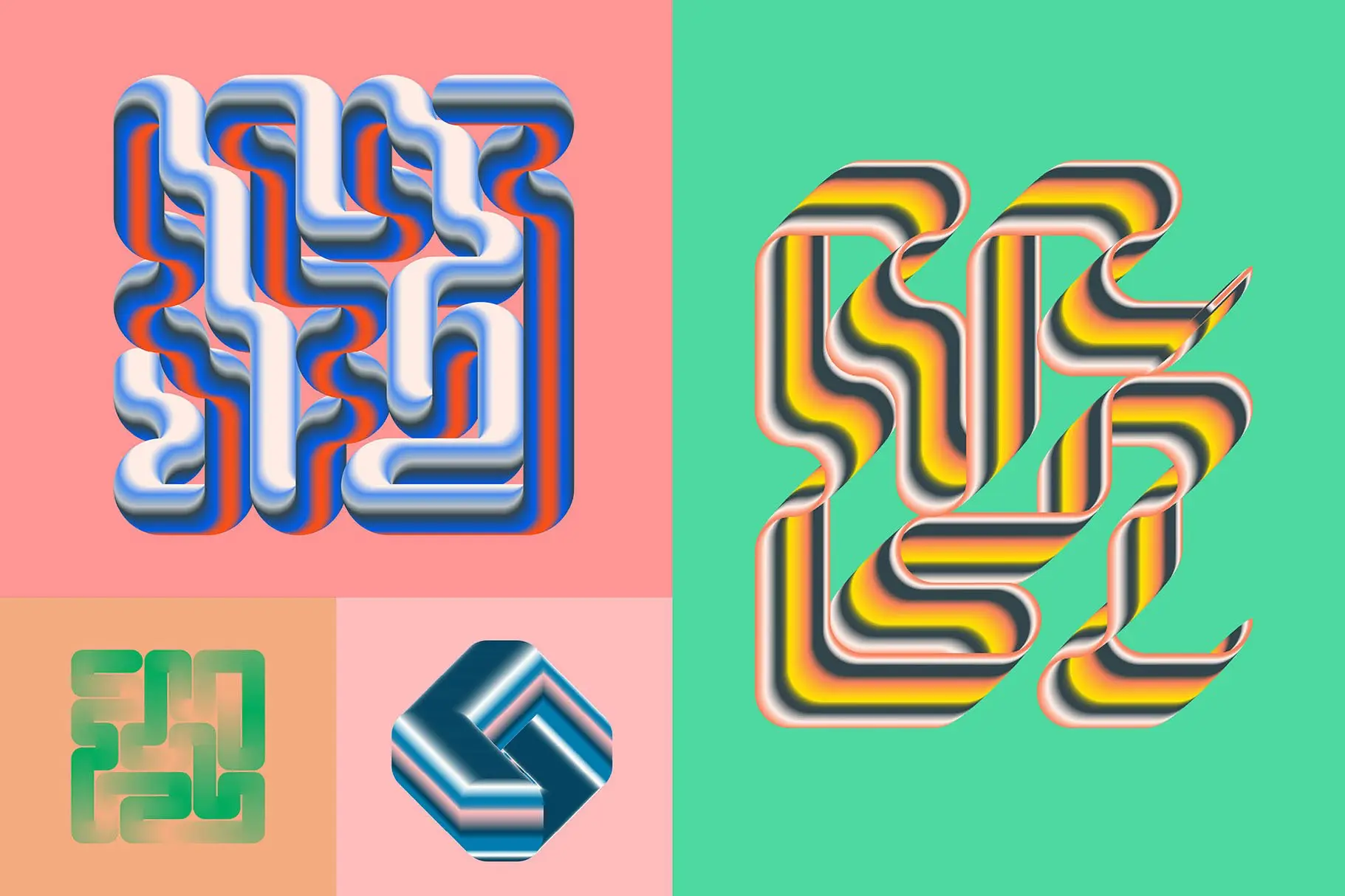 Gradient Blend Noise 3 70款潮流创意时尚抽象迷幻渐变立体几何图形艺术海报设计ai素材