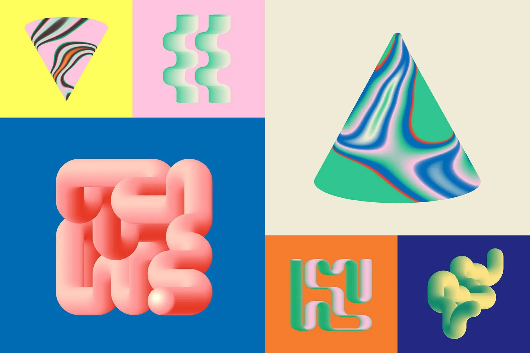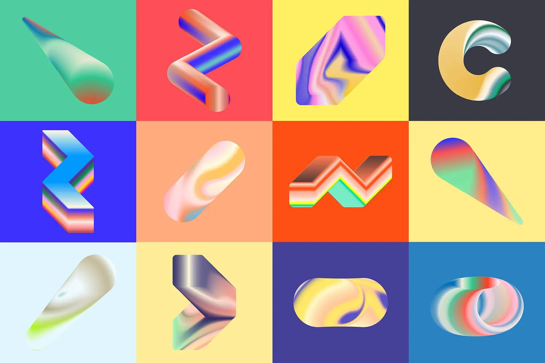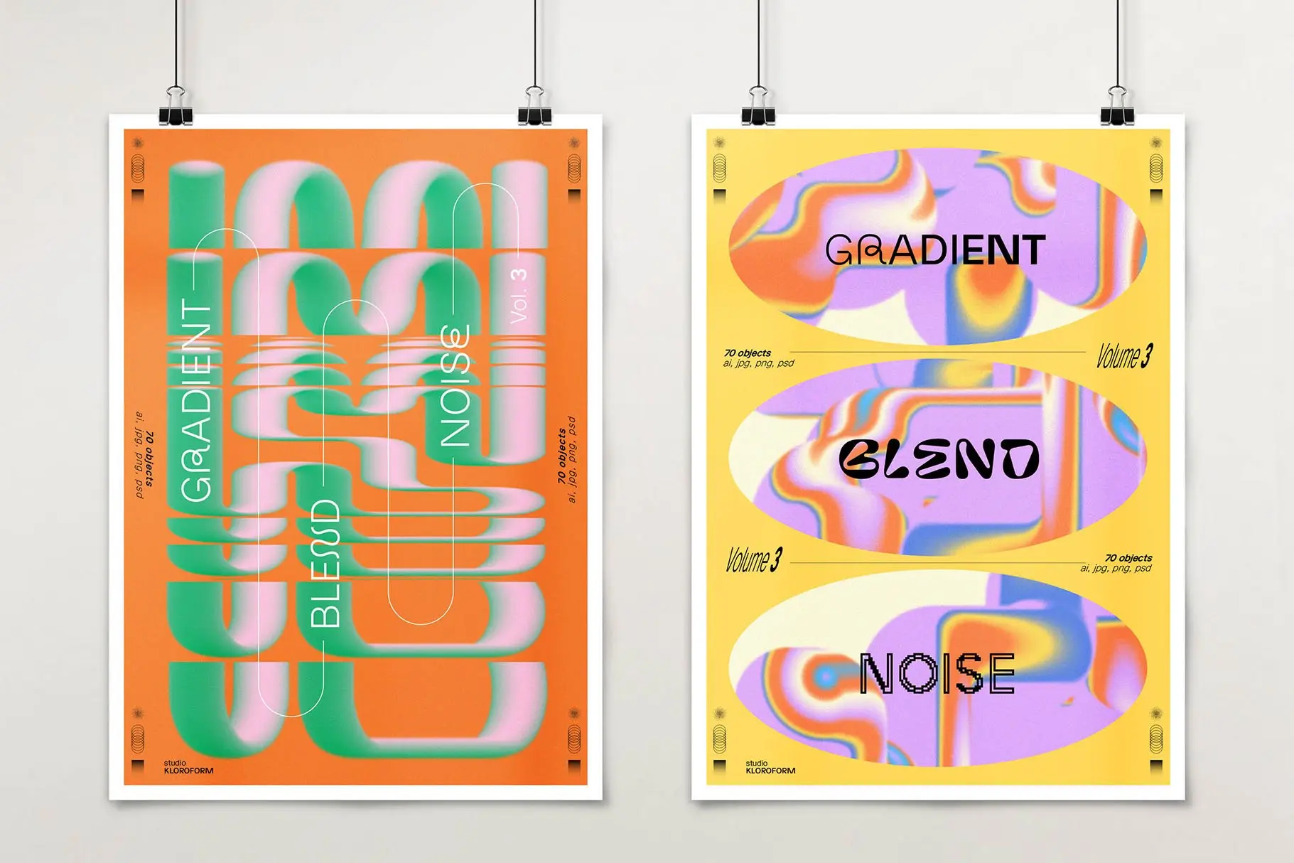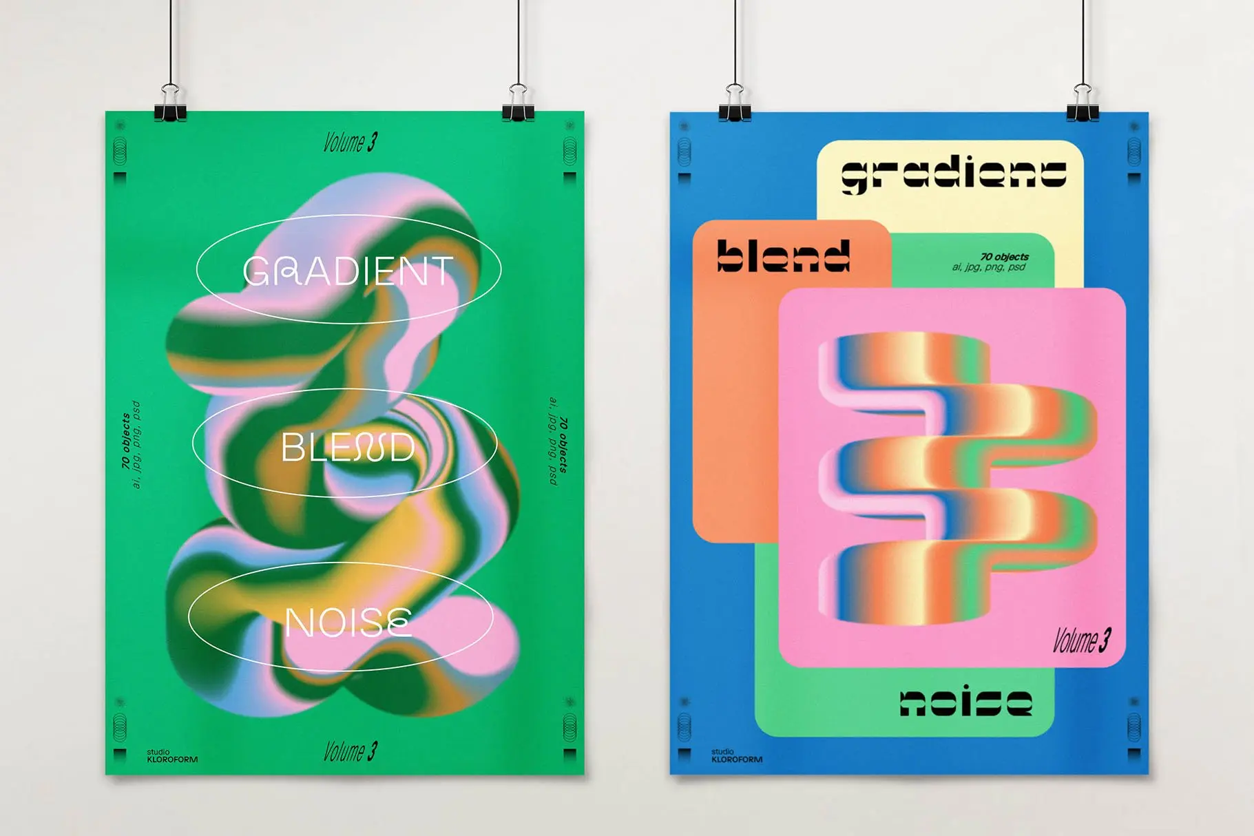 Gradient Blend Noise 3 70款潮流创意时尚抽象迷幻渐变立体几何图形艺术海报设计ai素材