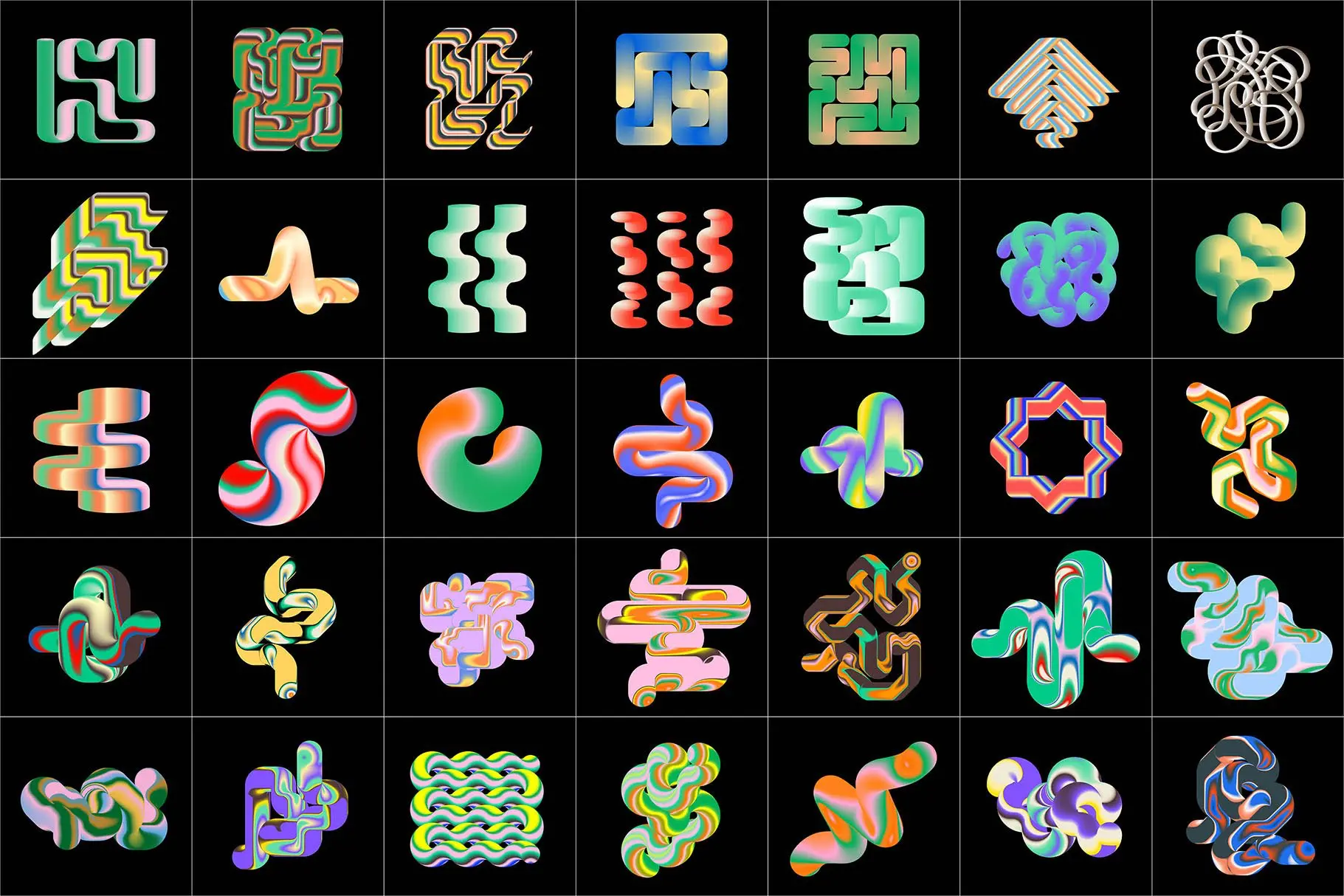 由 70 个古怪、时髦和迷幻的设计元素组成,具有渐变混合效果
