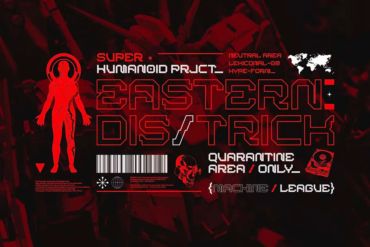 BARKMO-36 Futuristic Mecha Cyberpunk Font 4款BARKMO-36未来工业机械赛博朋克机能潮牌logo海报标题英文字体