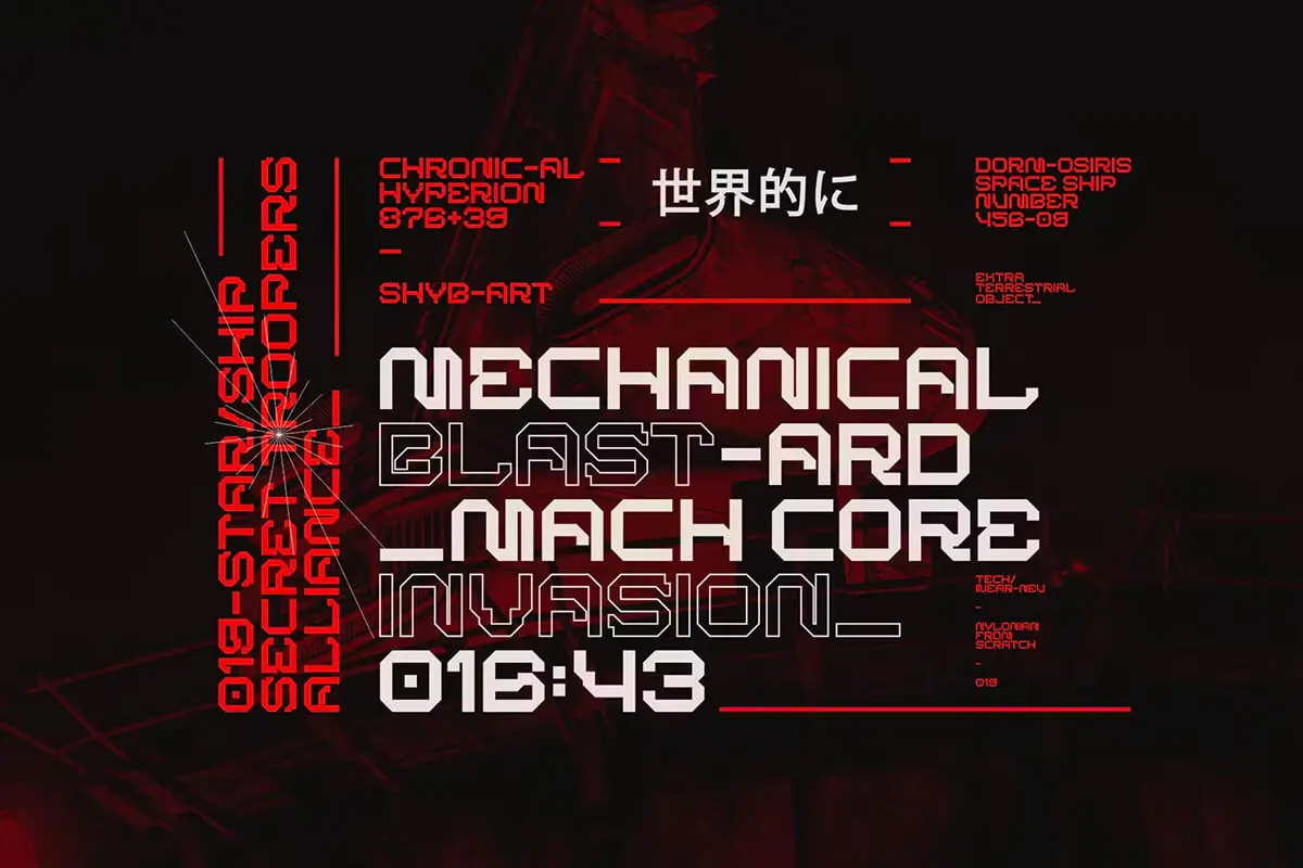 BARKMO-36 Futuristic Mecha Cyberpunk Font 4款BARKMO-36未来工业机械赛博朋克机能潮牌logo海报标题英文字体