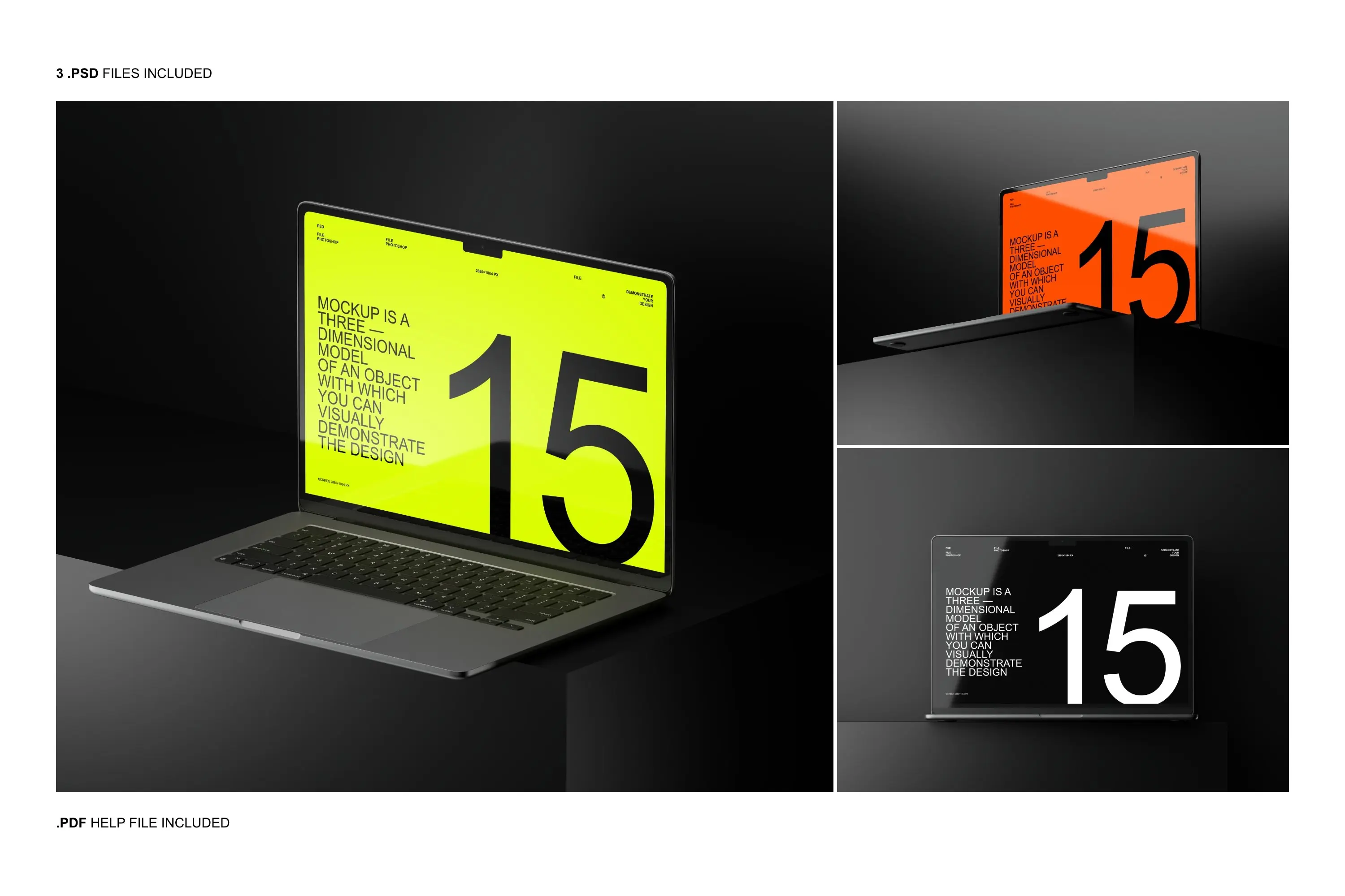 MacBook Air Mockup Set 高级工业黑化风苹果笔记本MacBook Air屏幕演示样机PSD模板合集