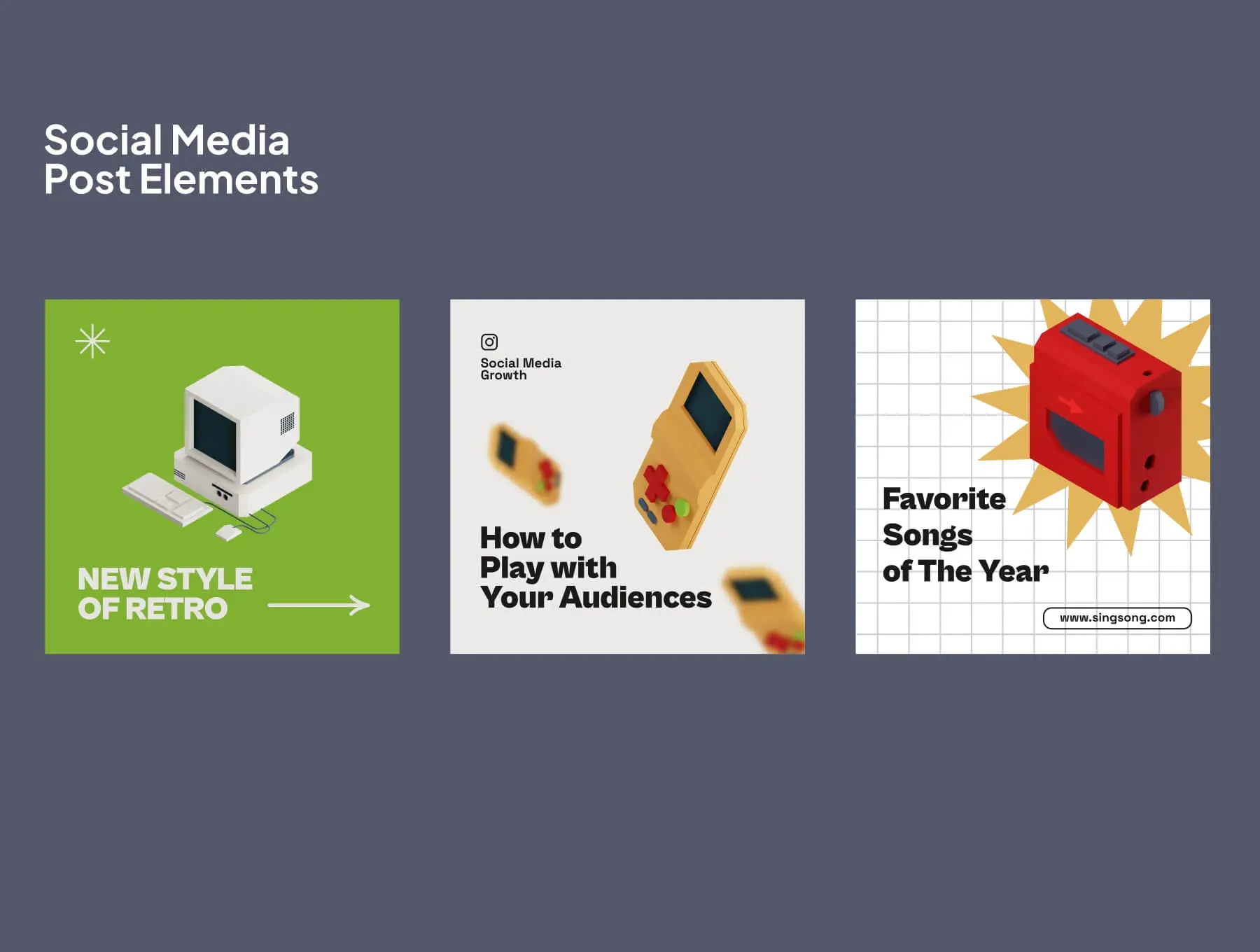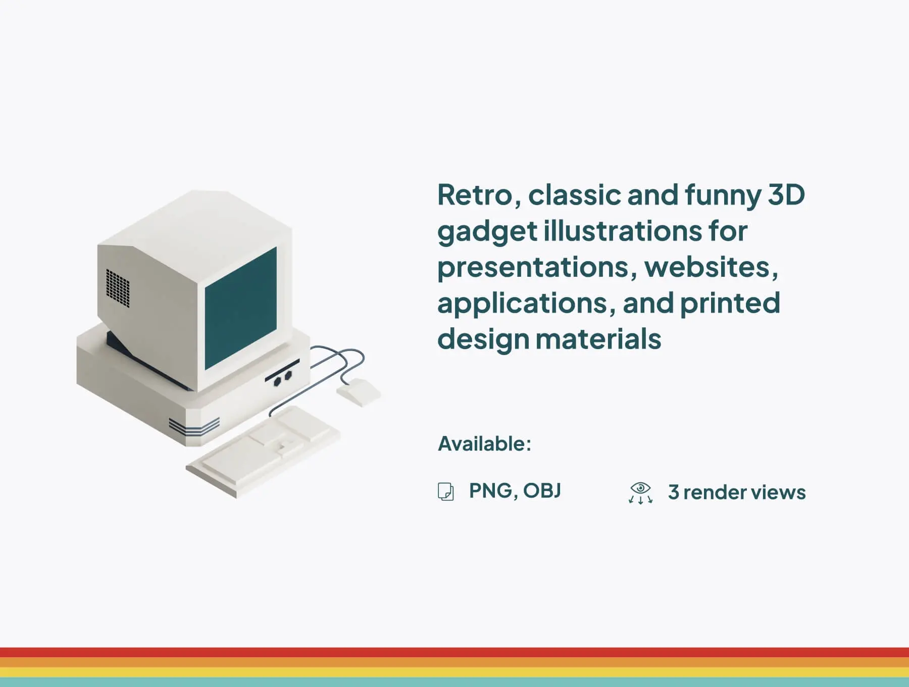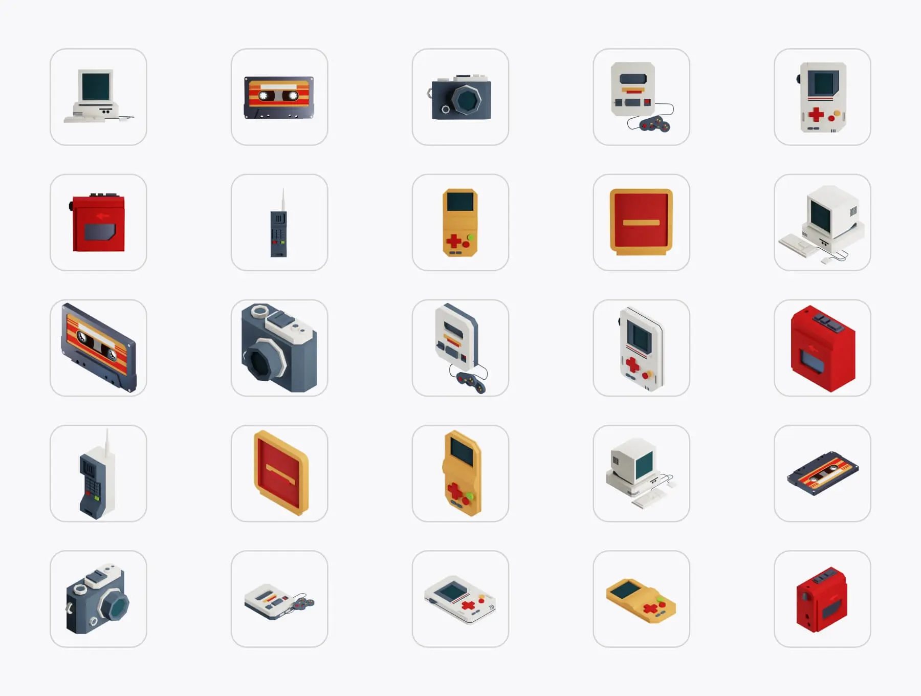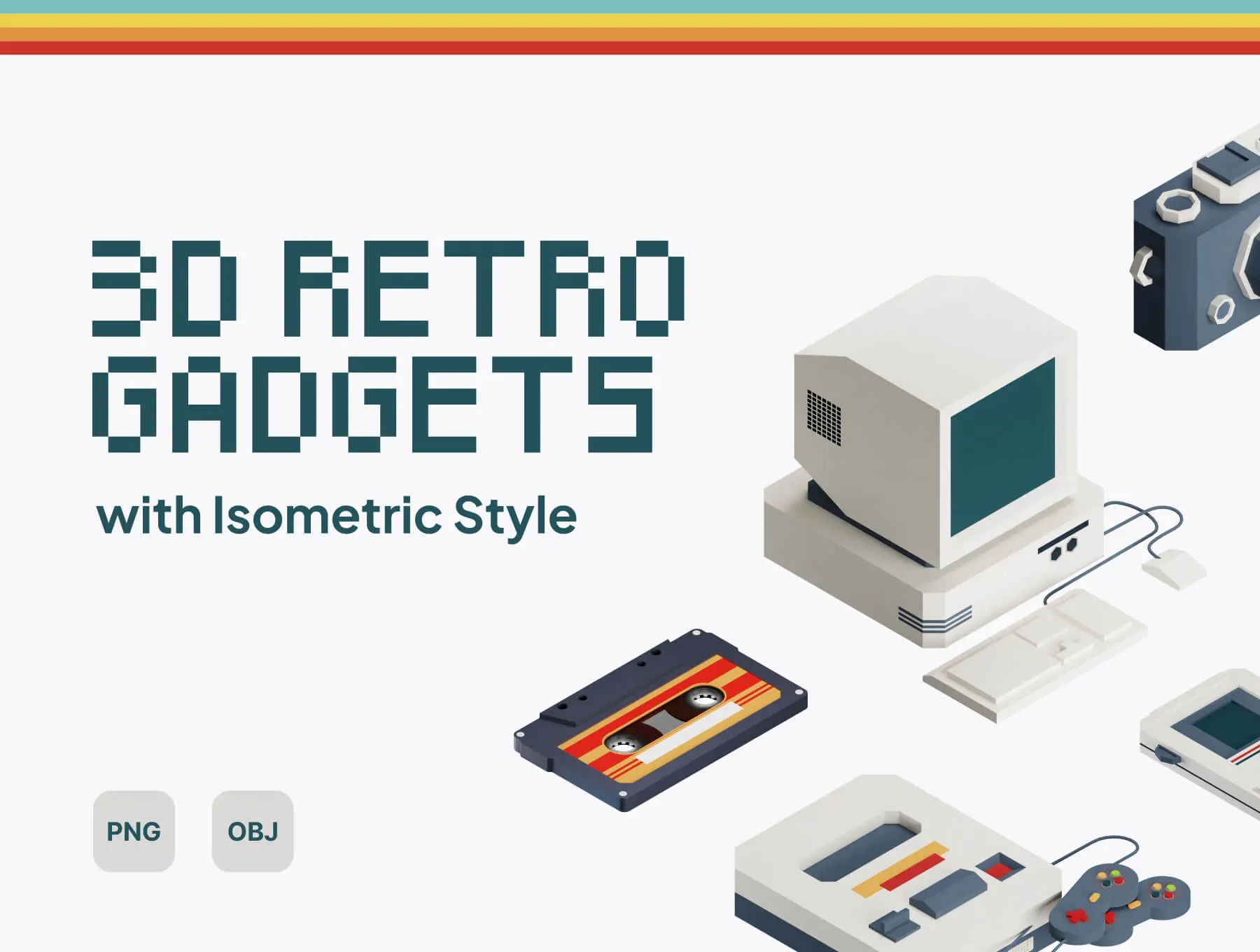 3D Retro Gadgets 老式怀旧游戏机电话收音机复古电子产品3D插画webp免抠图片素材