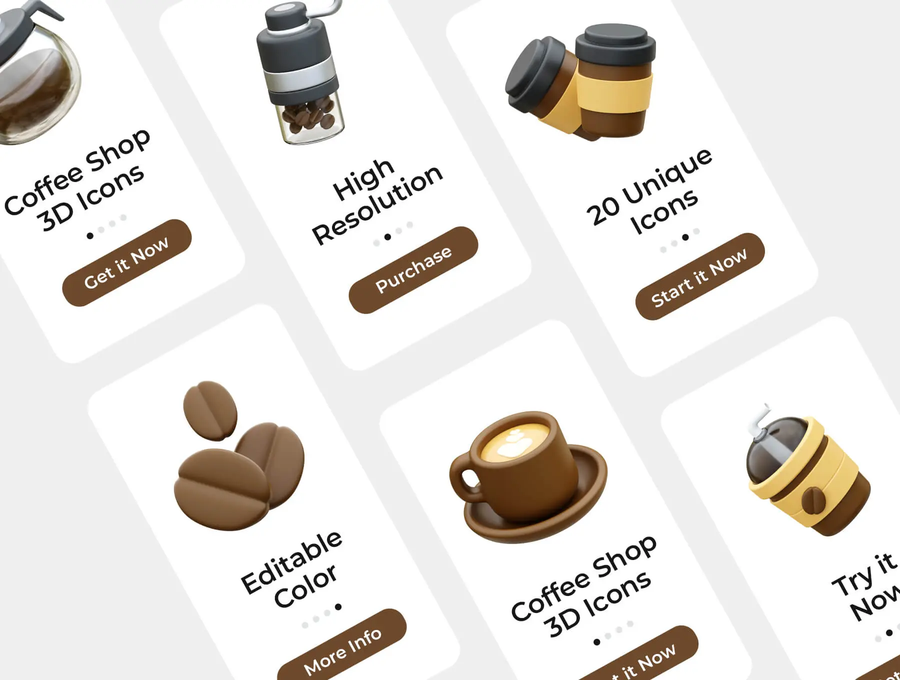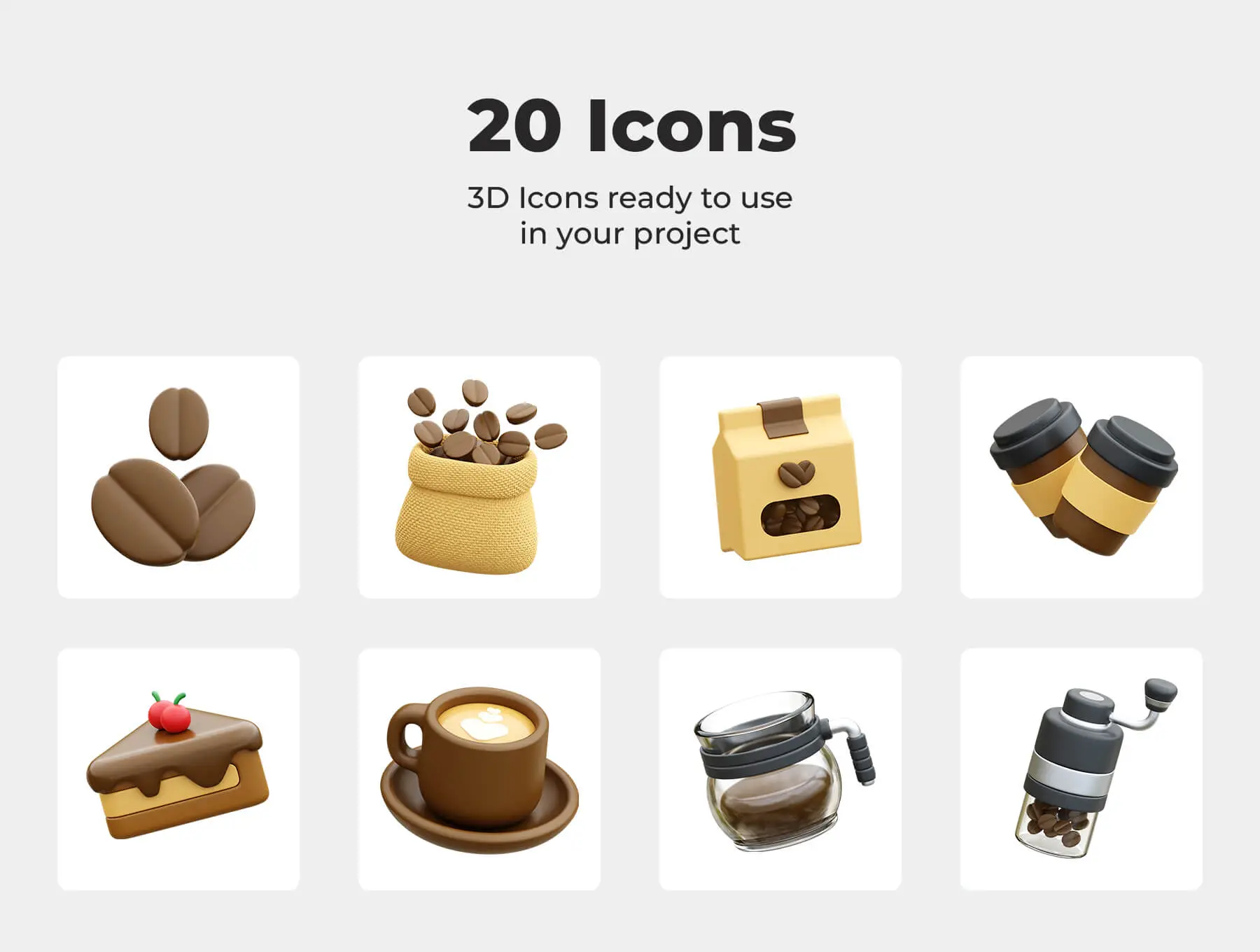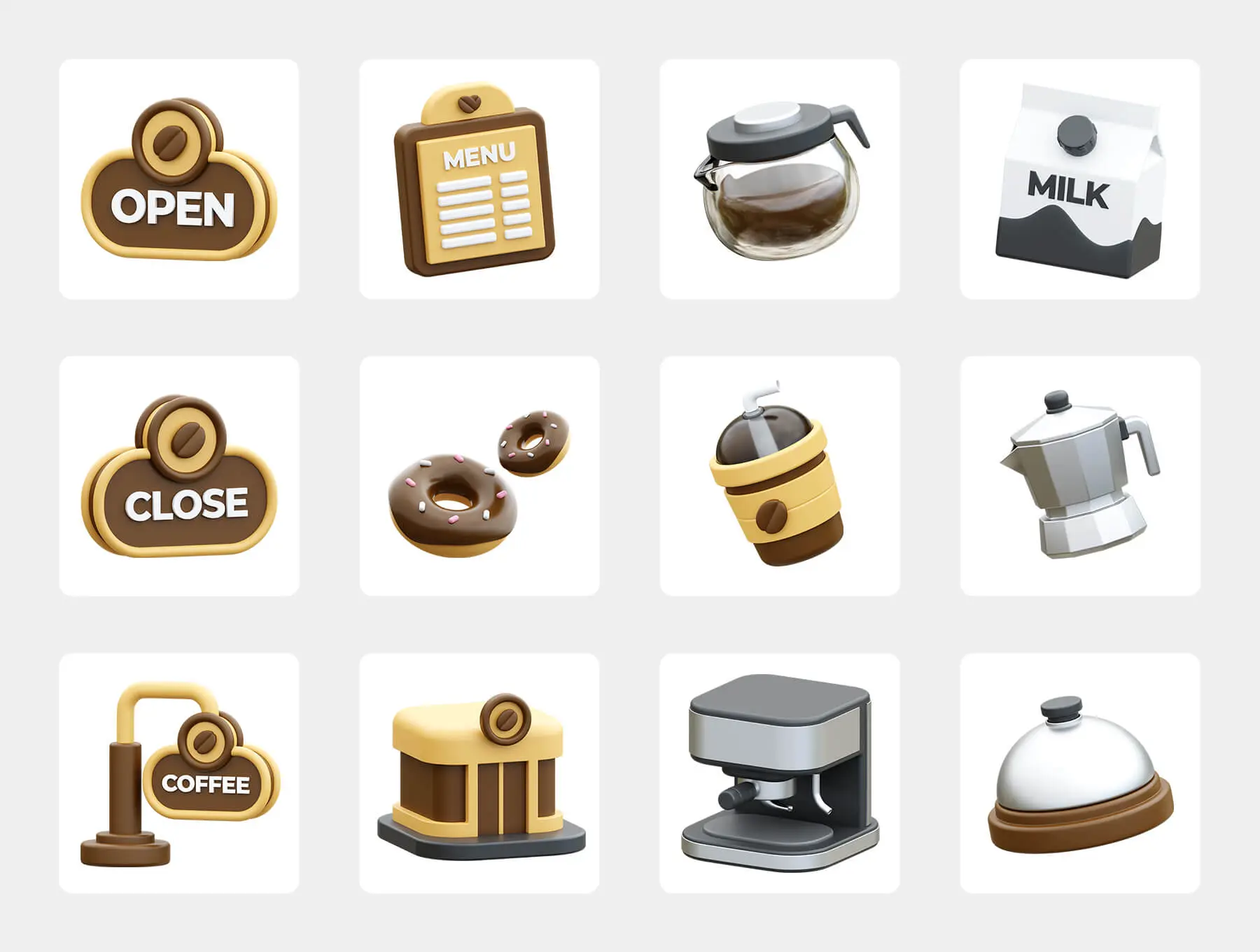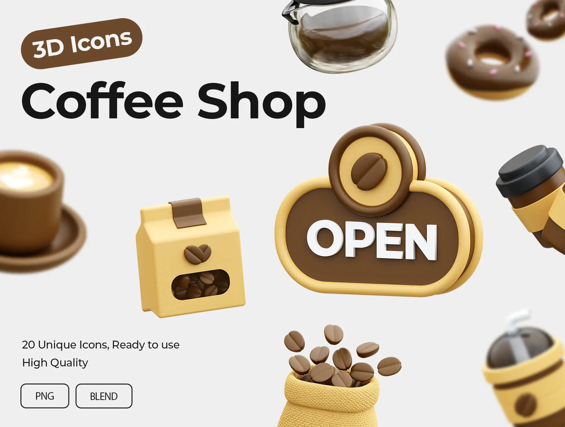 Coffee Shop 3D Icon 20款咖啡专卖店营销展示3D图标icon设计素材webp免抠图片
