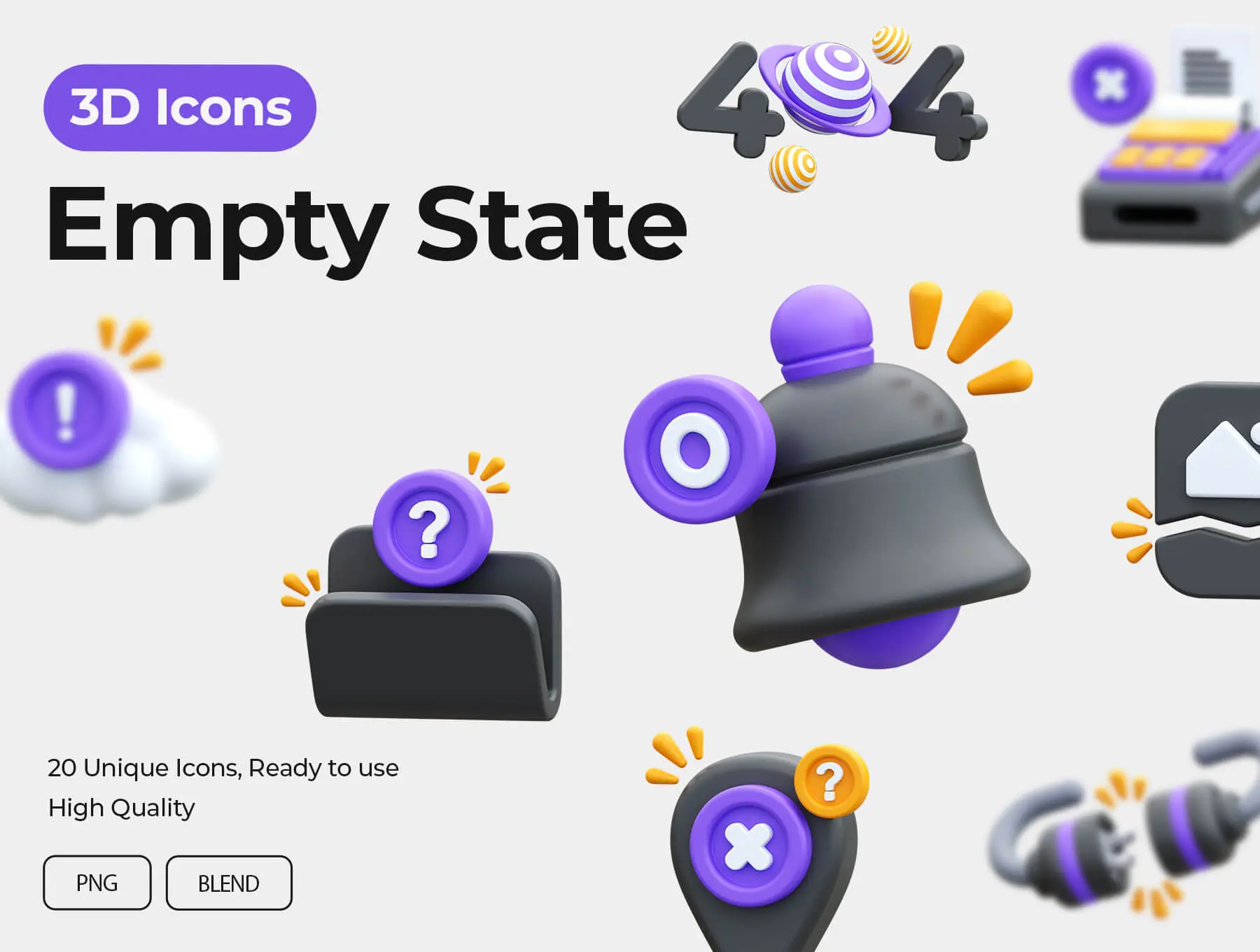 Empty State 3D Icons 20款有趣的网页手机404空状态占位插图插画设计素材webp免抠图片