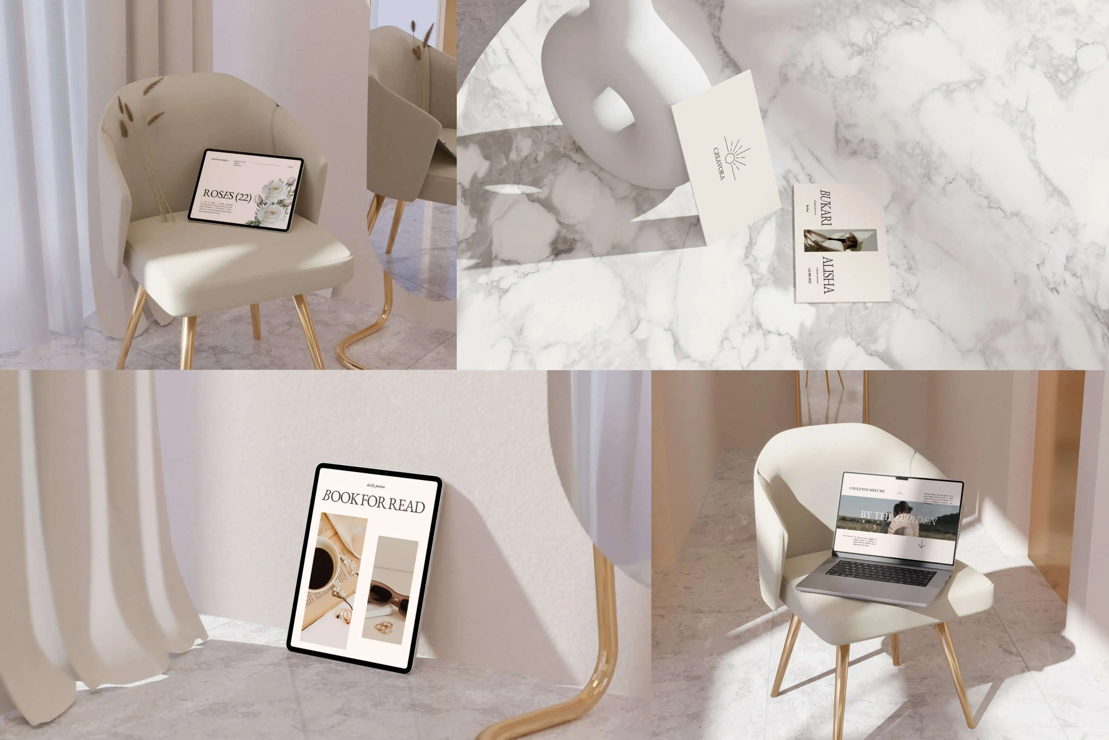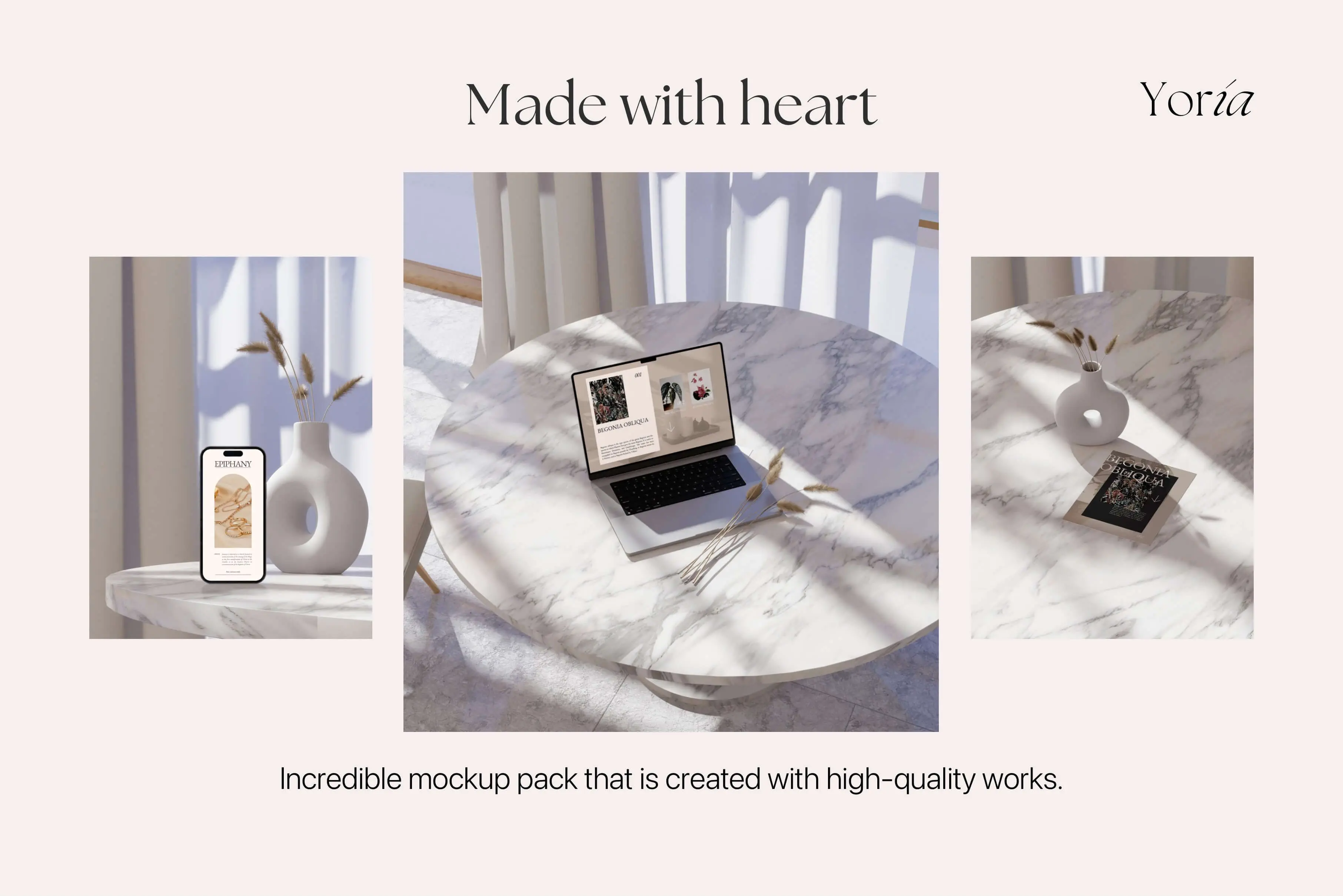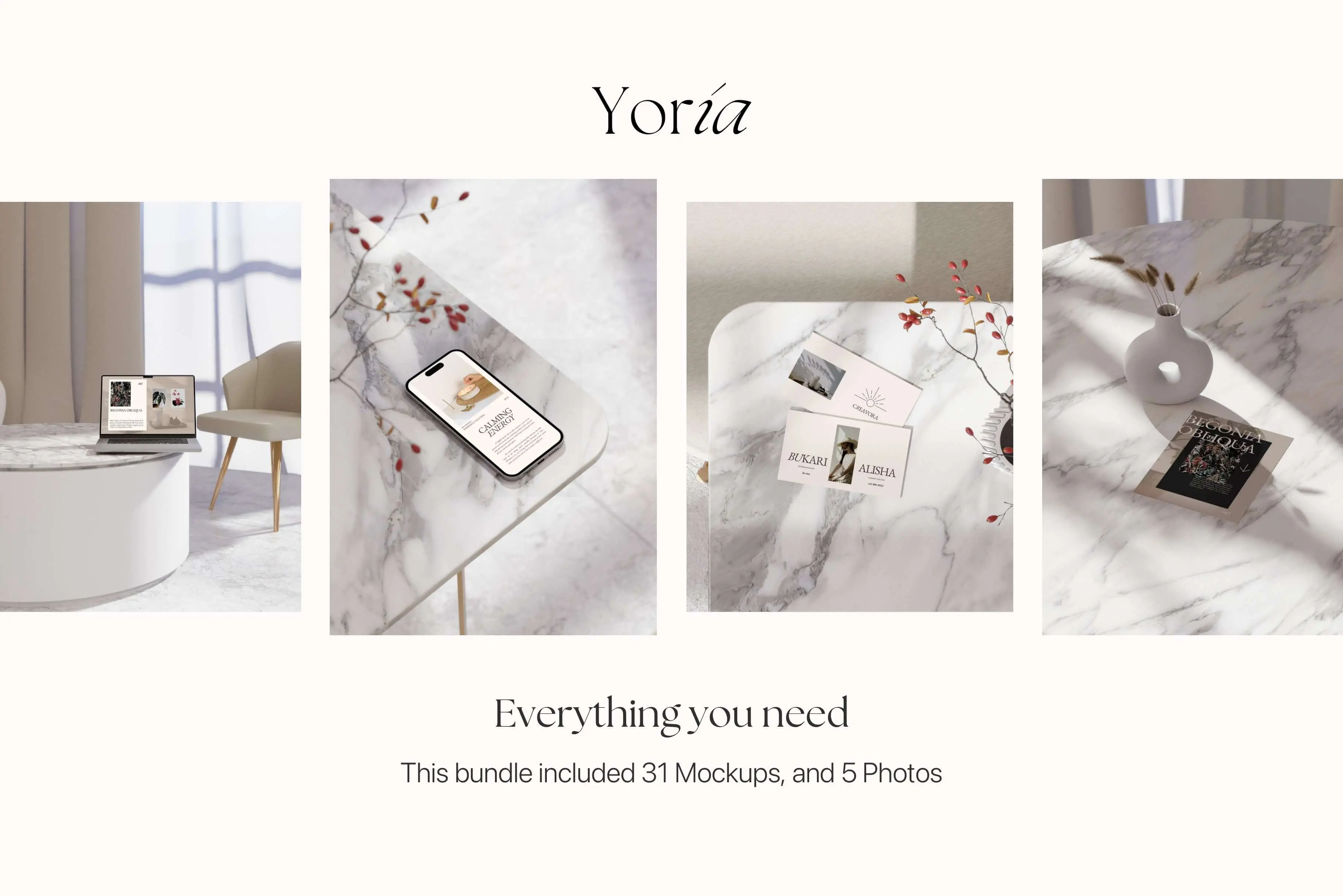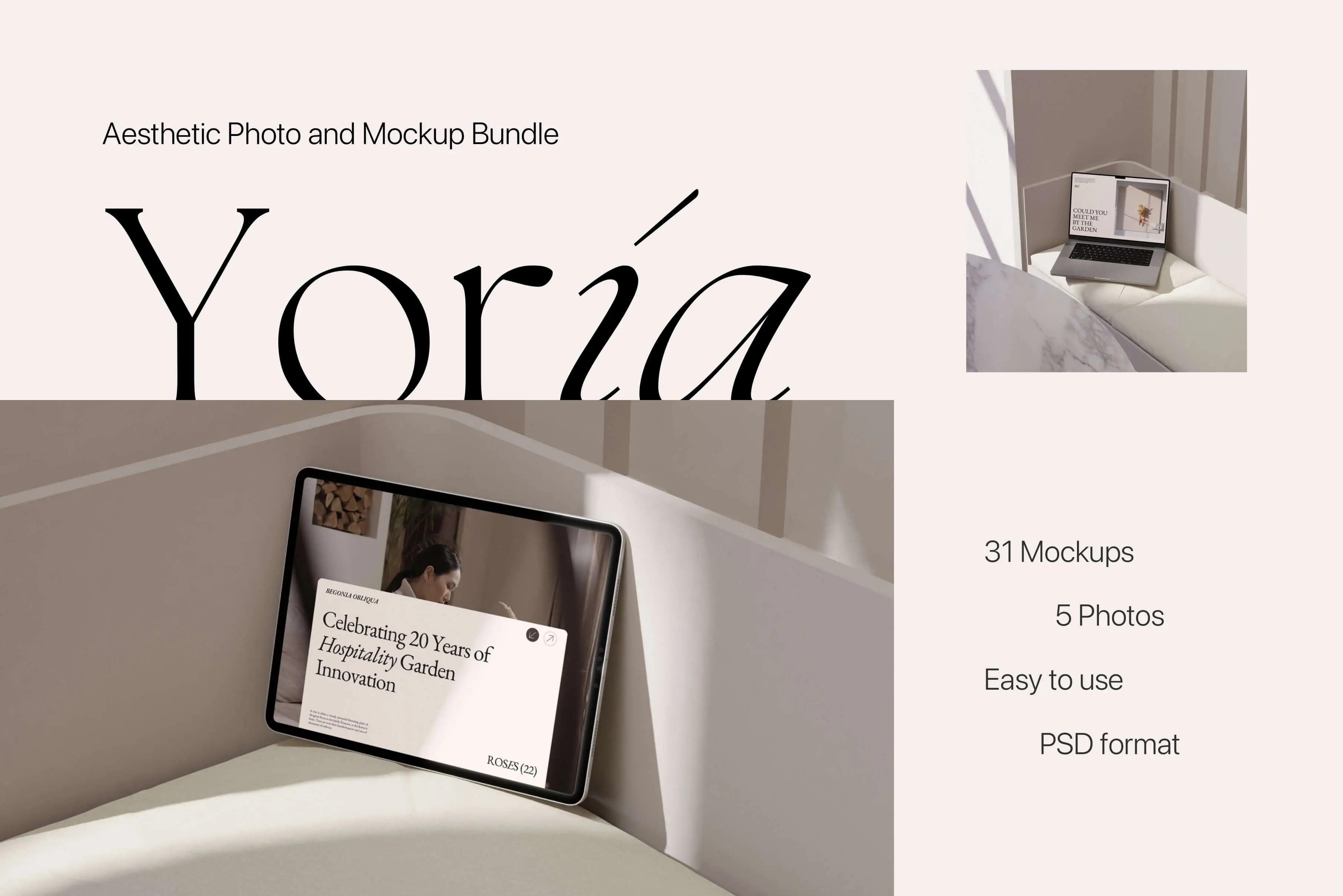 Yoria – Aesthetic Mockup Bundle 31款波西米亚风室内场景苹果MacBook笔记本iPad电脑iPhone 14屏幕演示贴图PSD样机模板