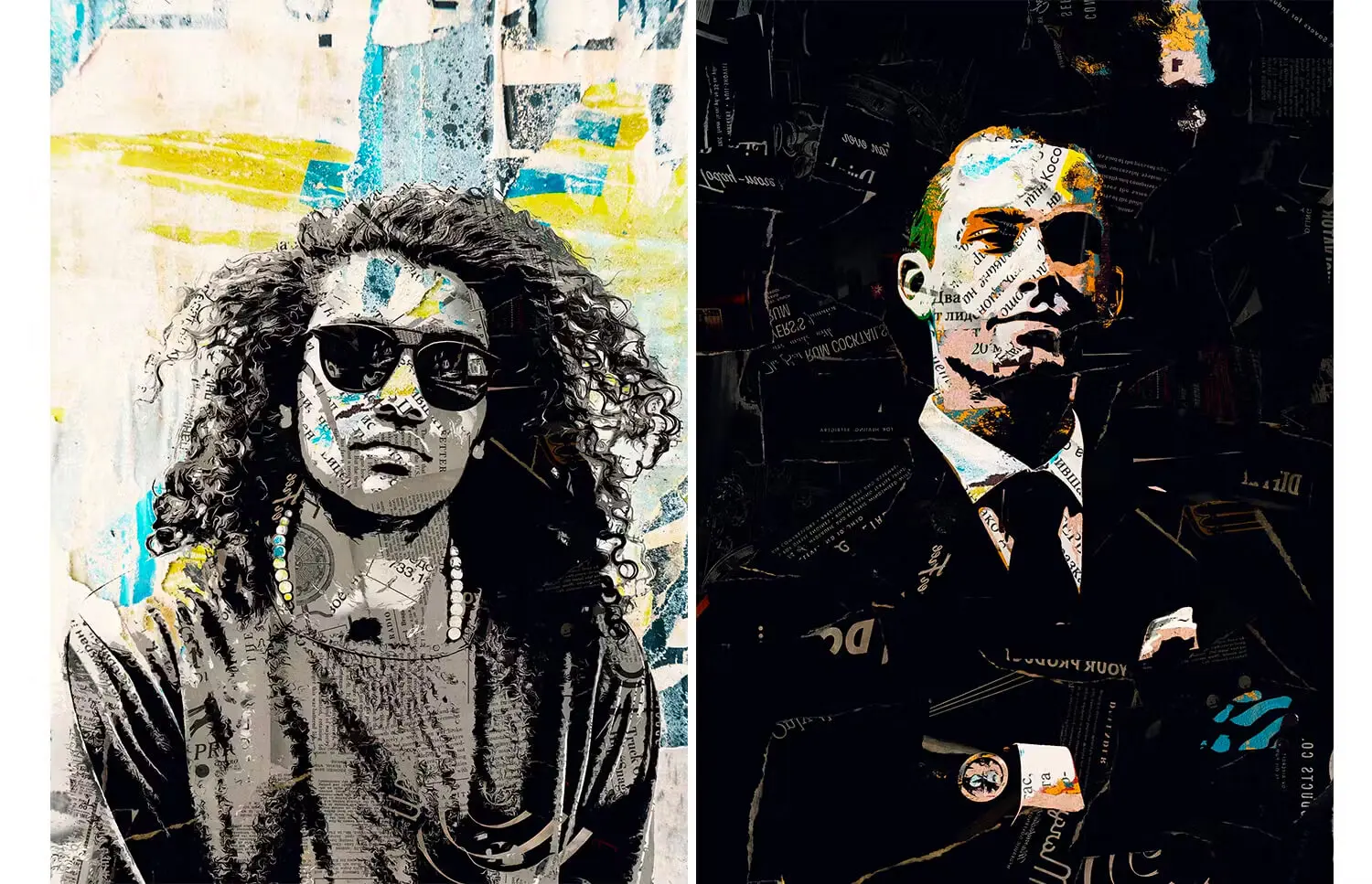 Paper Collage Art Effect 复古创意纸张肌理撕裂拼贴艺术PSD特效样机