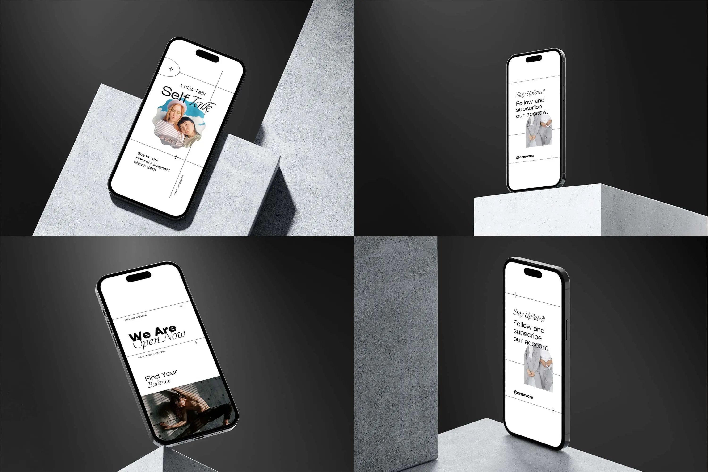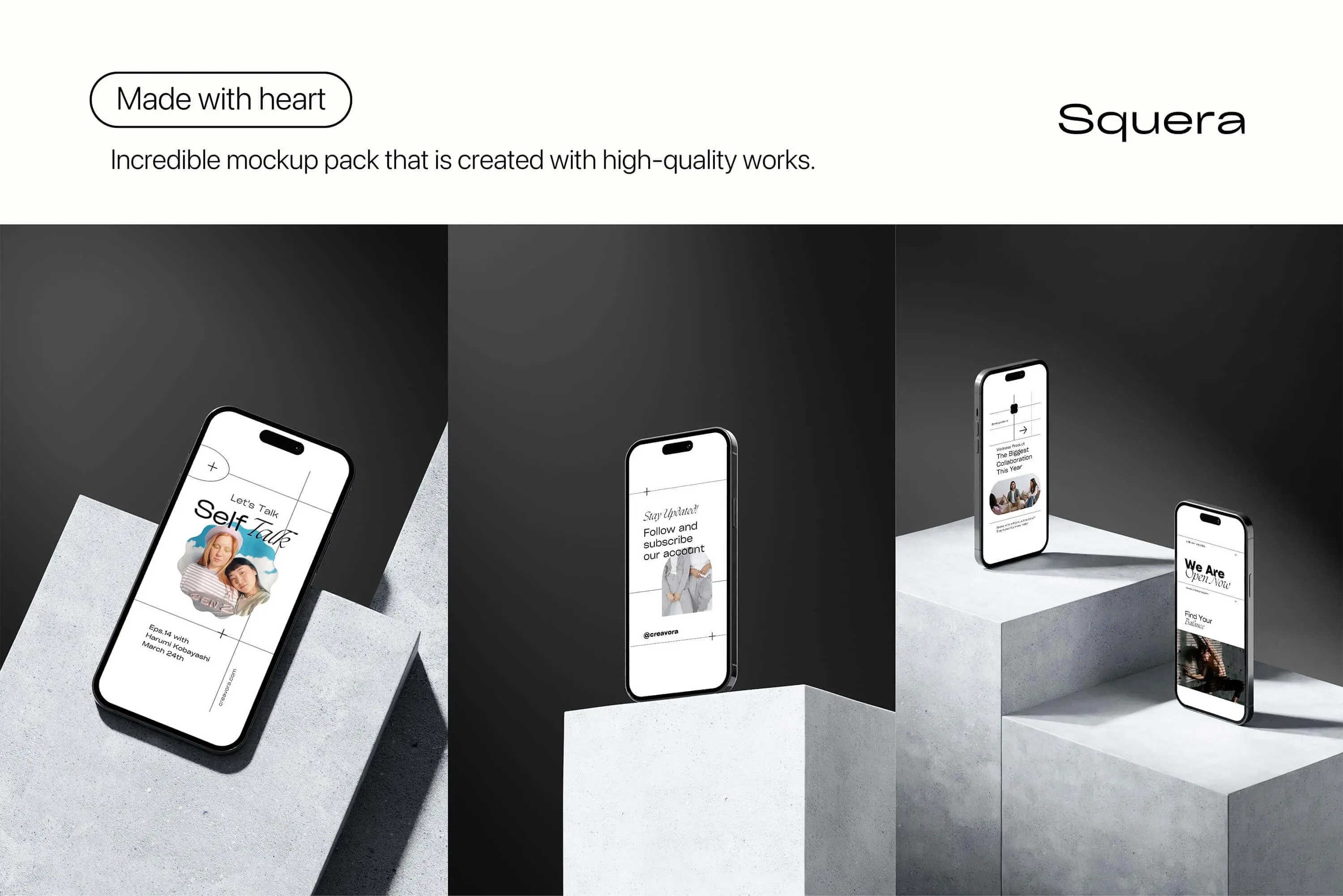 Squera – Minimal iPhone Mockup 5款时尚APP界面设计苹果iPhone 14 Pro屏幕演示PS展示贴图样机模板素材