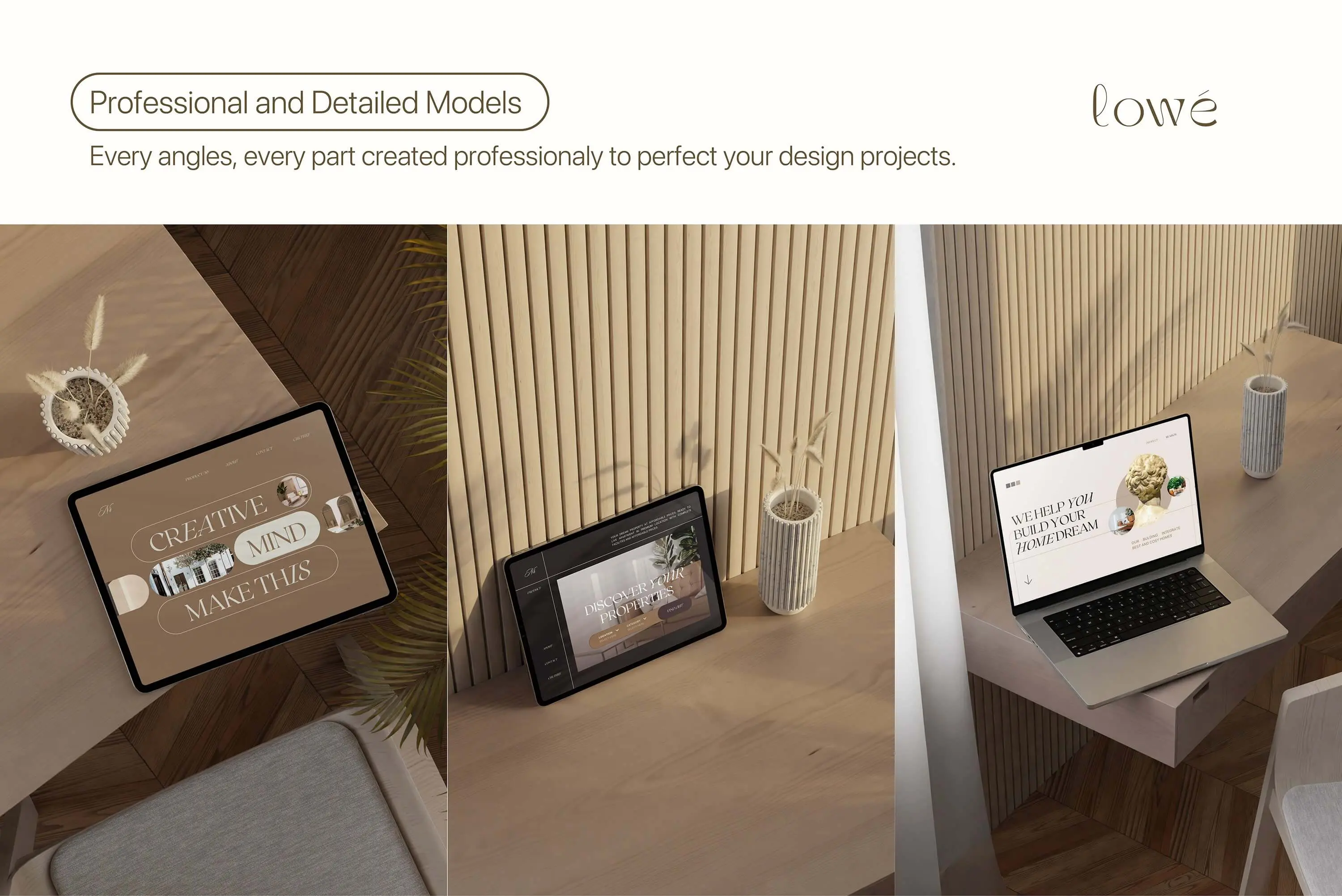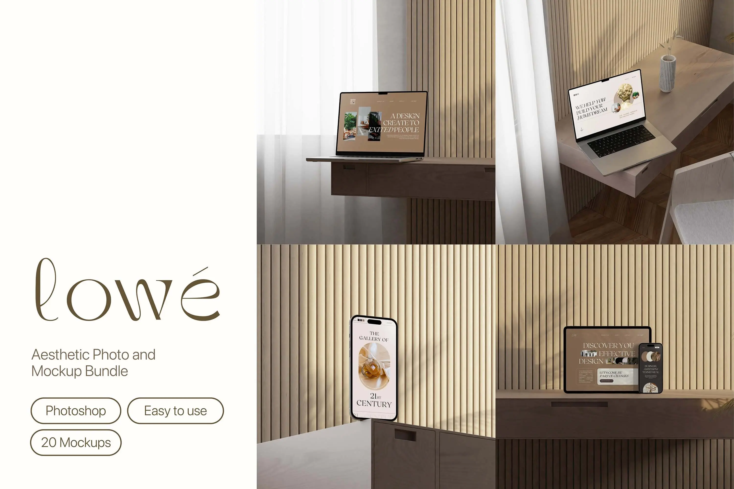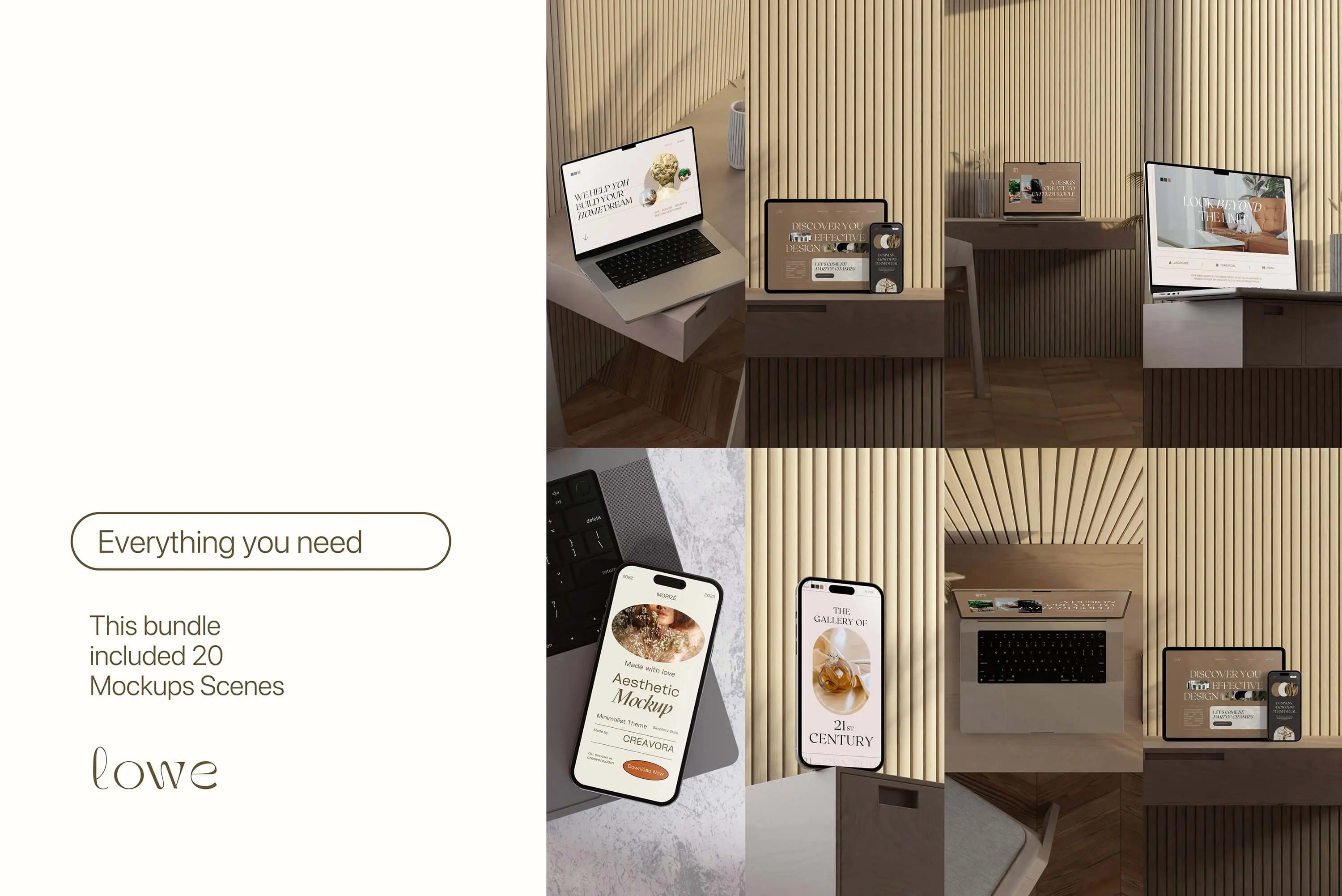 Lowe – Minimal Mockup Bundle 20款优雅北欧风室内场景苹果MacBook电脑iPad平板iPhone 14手机屏幕演示PSD样机模板