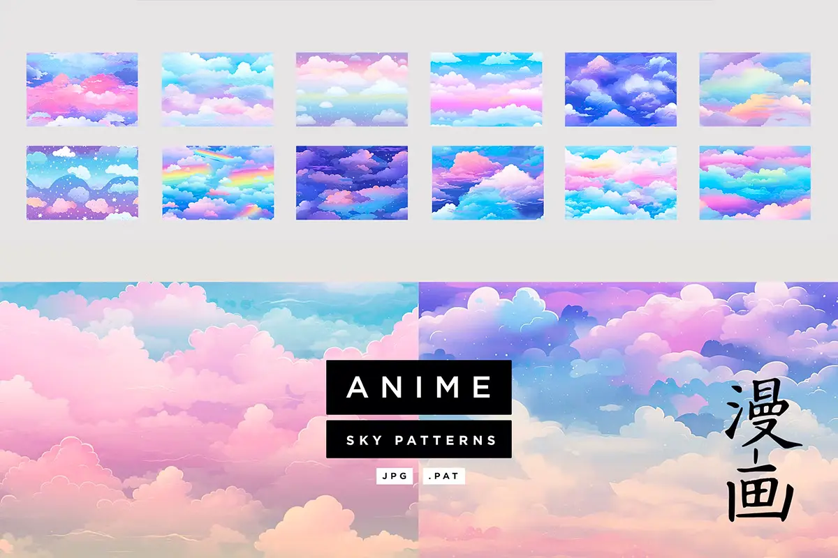 Anime Sky Patterns 15P卡通动漫天空云层云朵梦幻彩云祥云背景图案图片国外设计素材