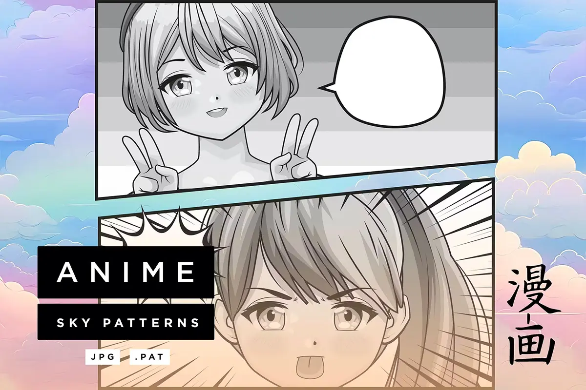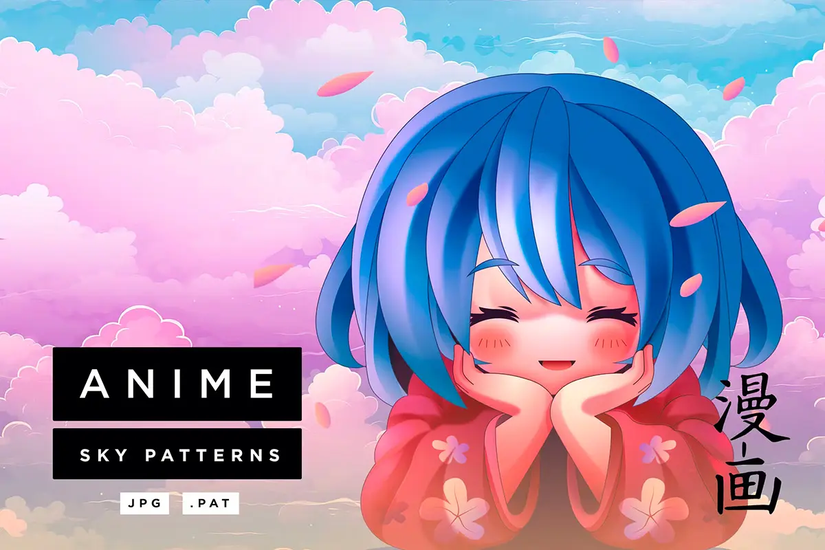 Anime Sky Patterns 15P卡通动漫天空云层云朵梦幻彩云祥云背景图案图片国外设计素材