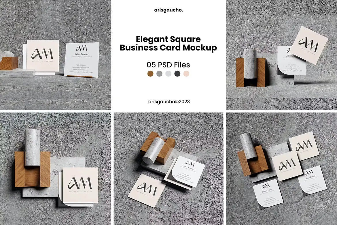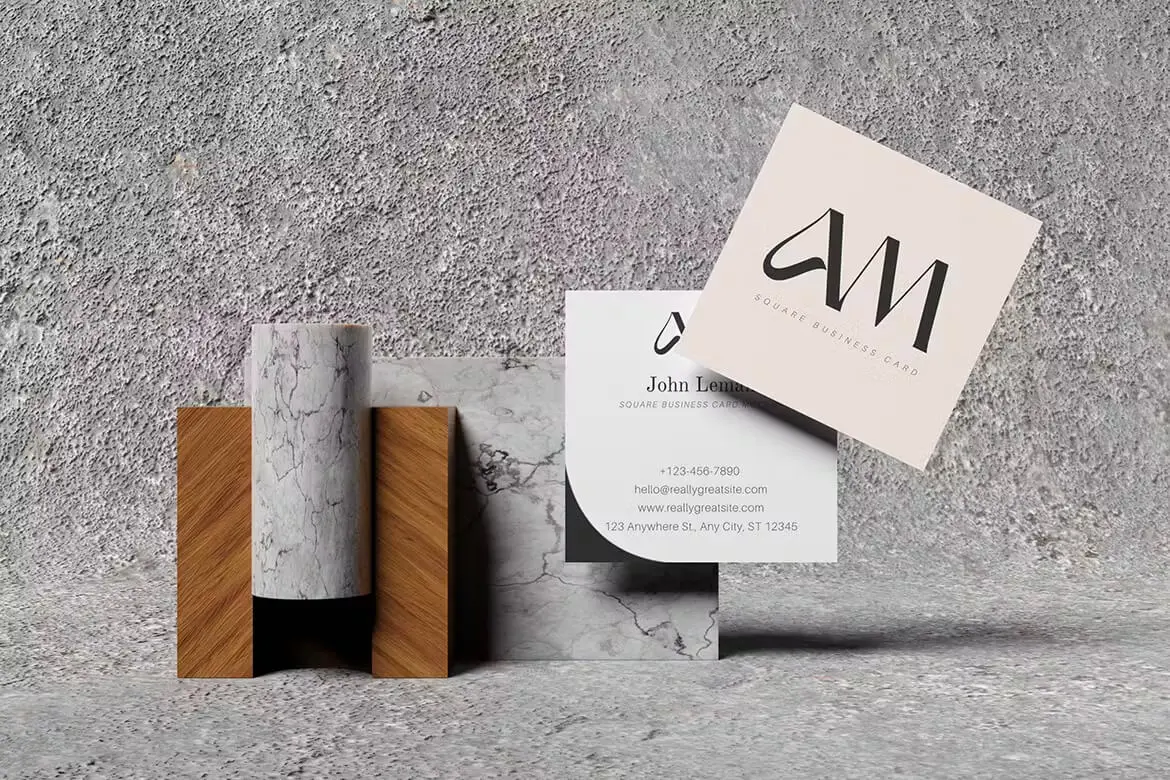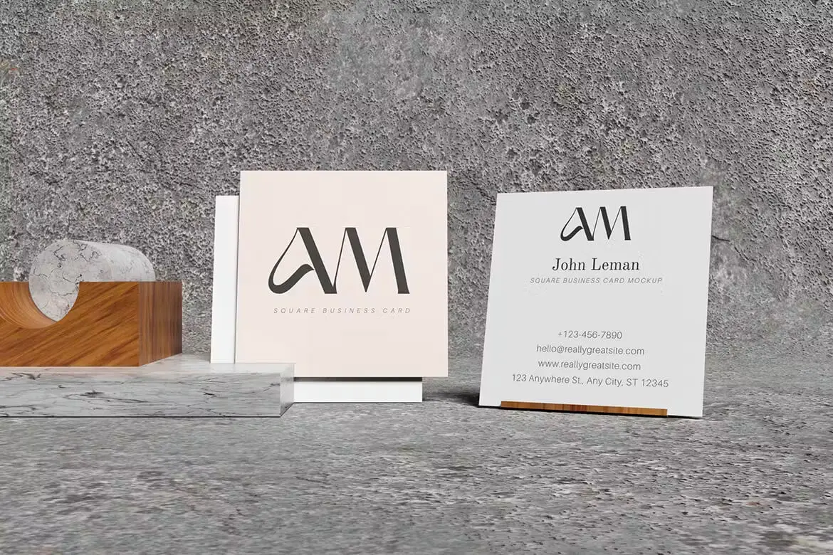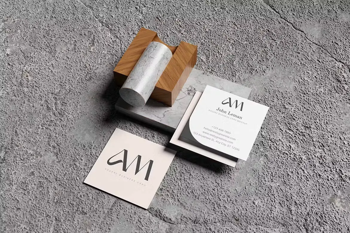 Elegant Square Business Card Mockup 优雅方形纸质名片模型设计贴图ps卡片样机素材模板