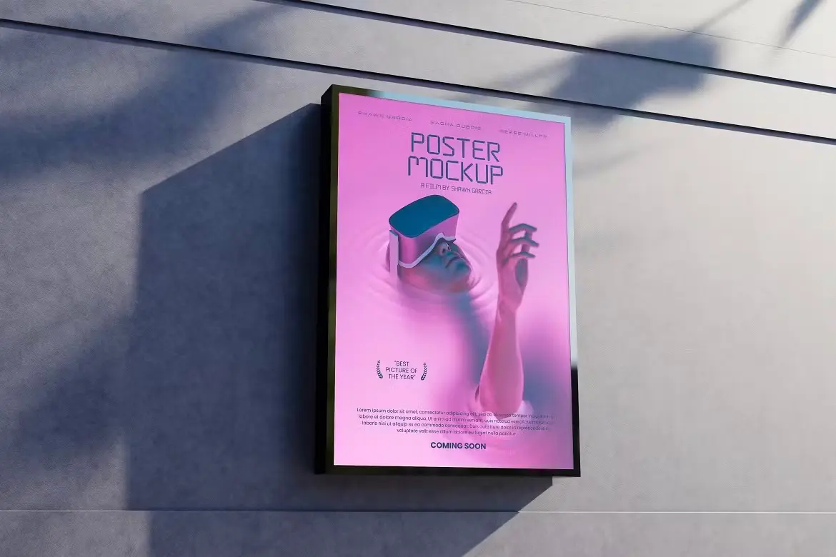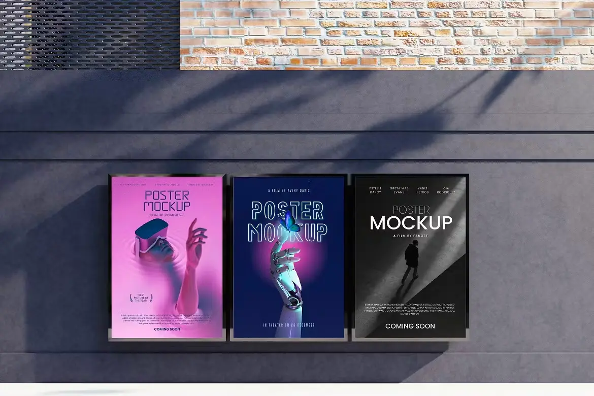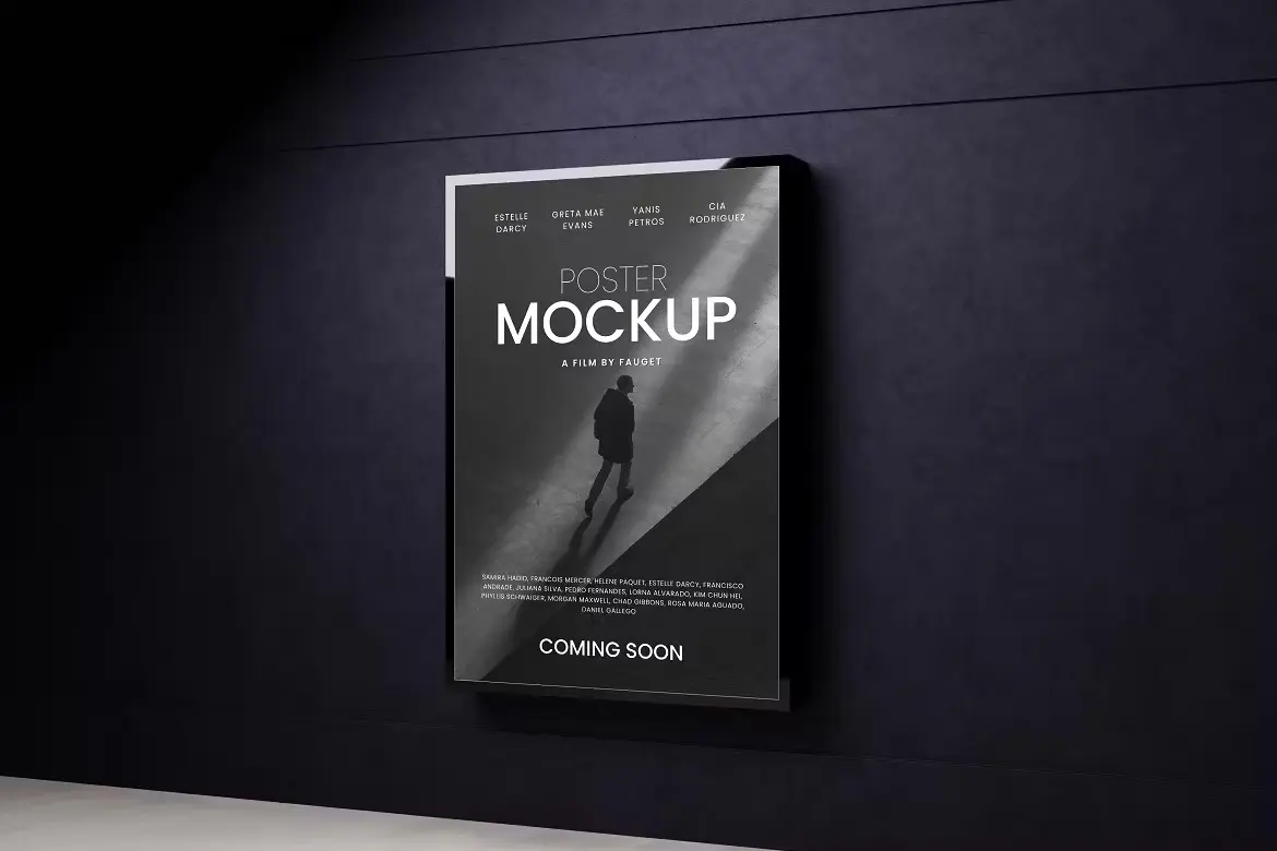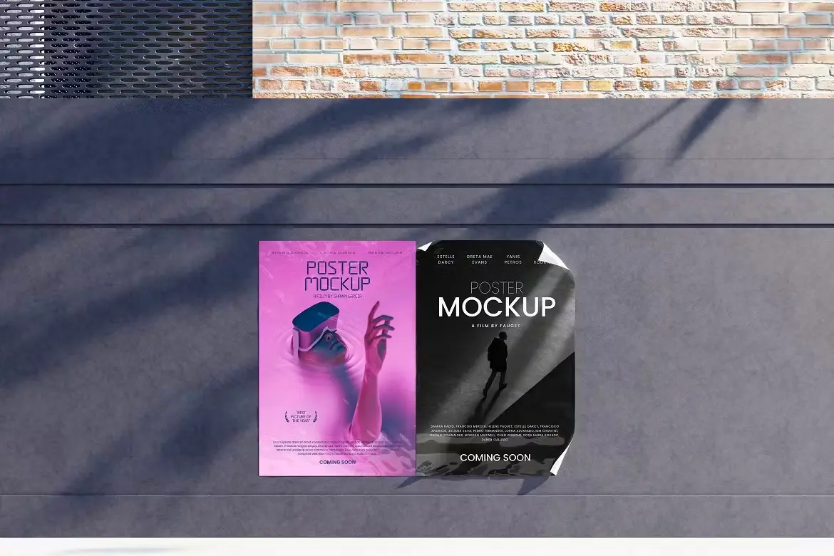 Film Poster Mockup 7款工业风极简户外招贴海报设计作品贴图ps样机素材展示效果图