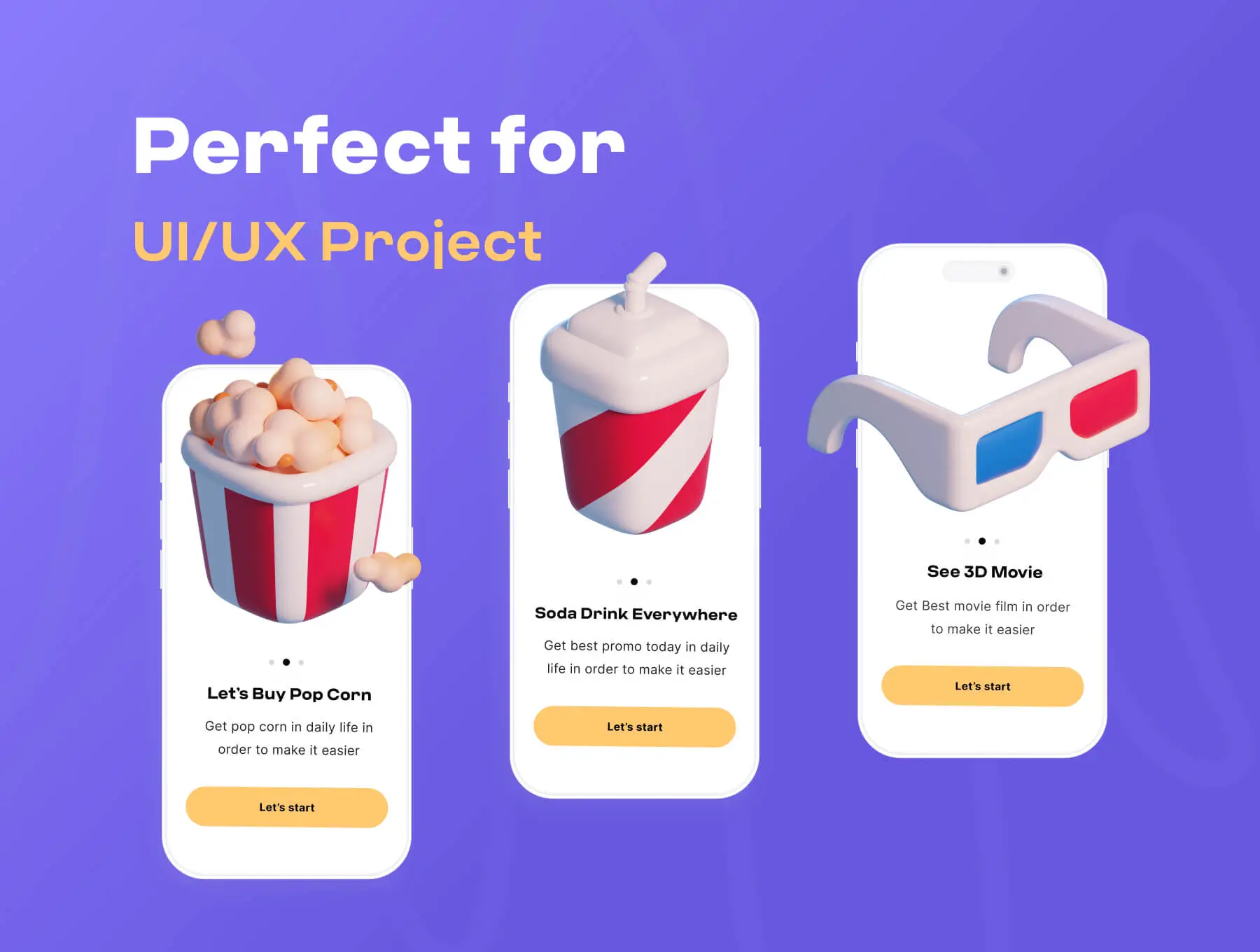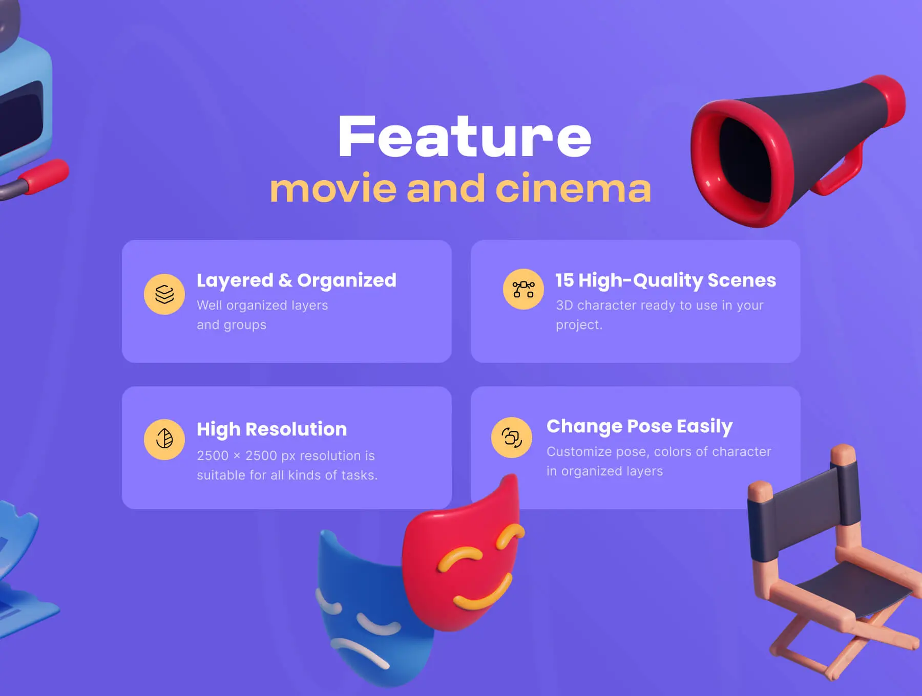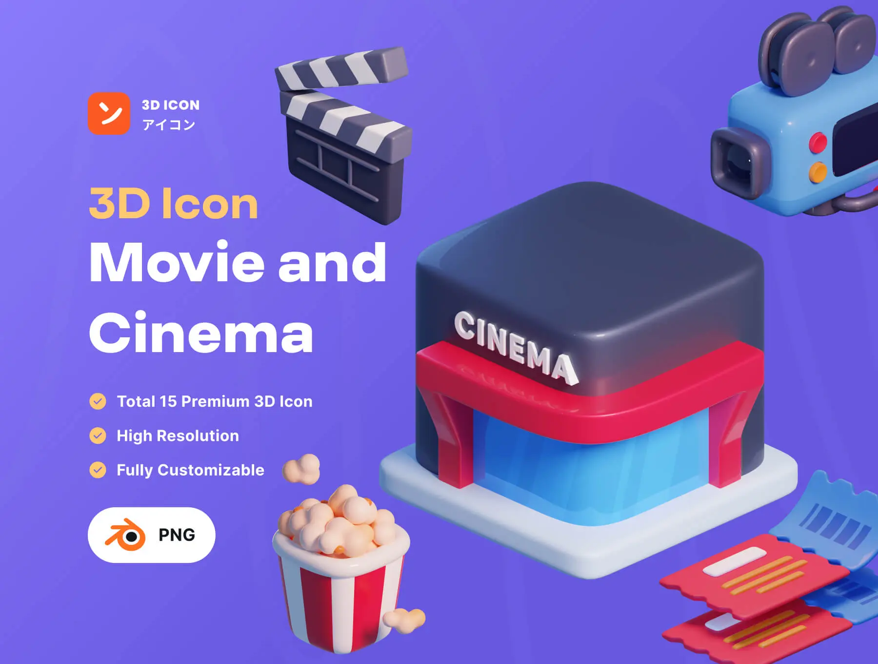 Movie & Cinema 3D icon Pack 15款趣味卡通3D立体电影院剧院观影演出插图插画webp免抠图片素材