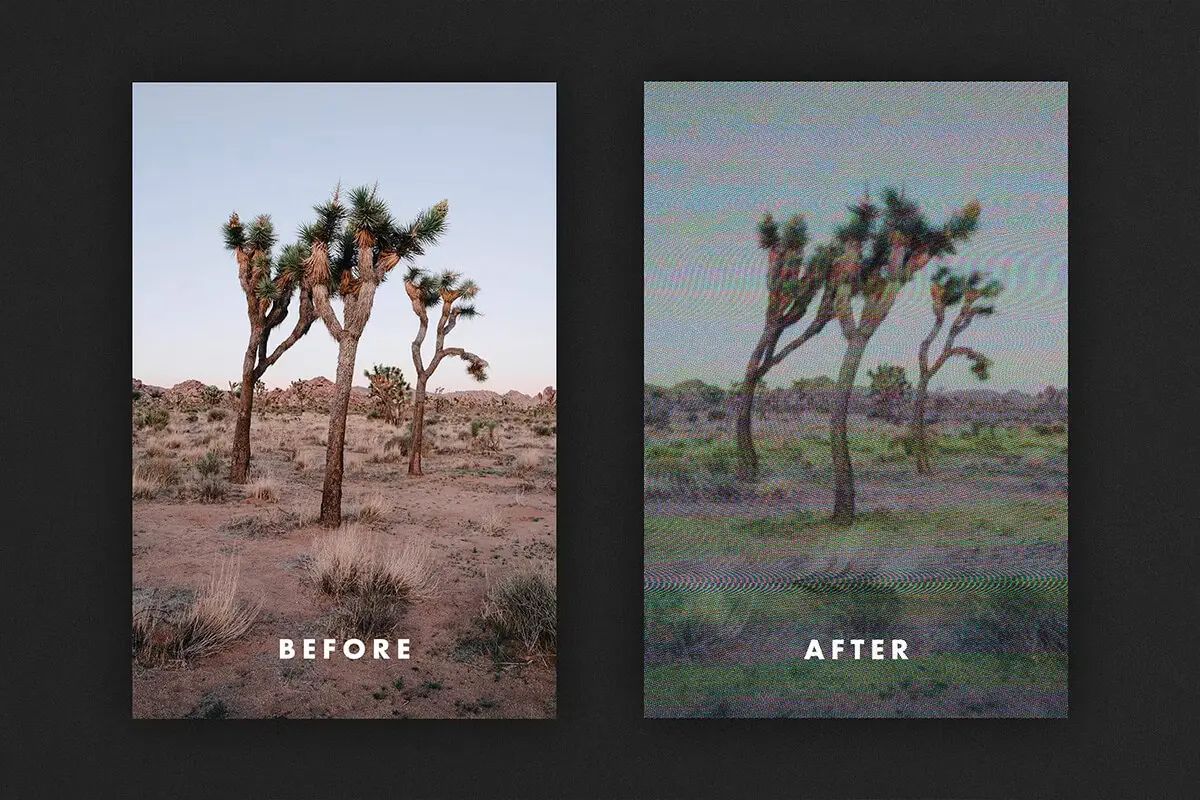 Screen Flicker Photo Effect 监视器影像故障毛刺噪音预制效果ps特效样机素材模板