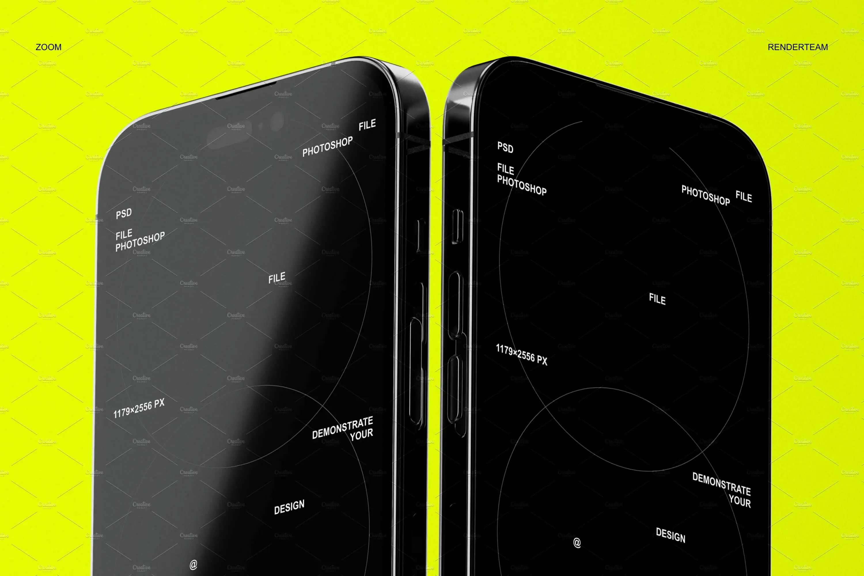 iPhone 14 Pro Mockup 4款极简iPhone14手机App应用ui界面设计作品展示ps样机素材效果图