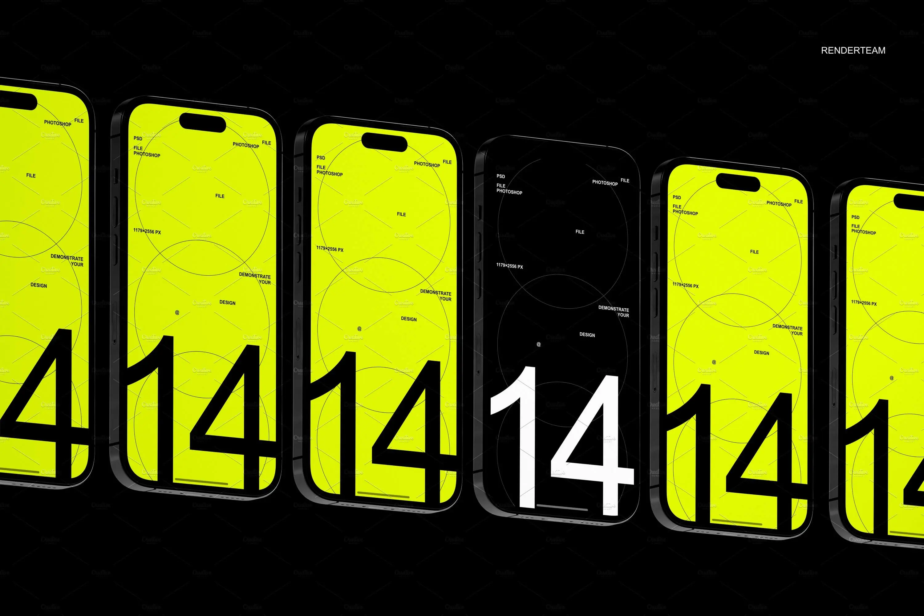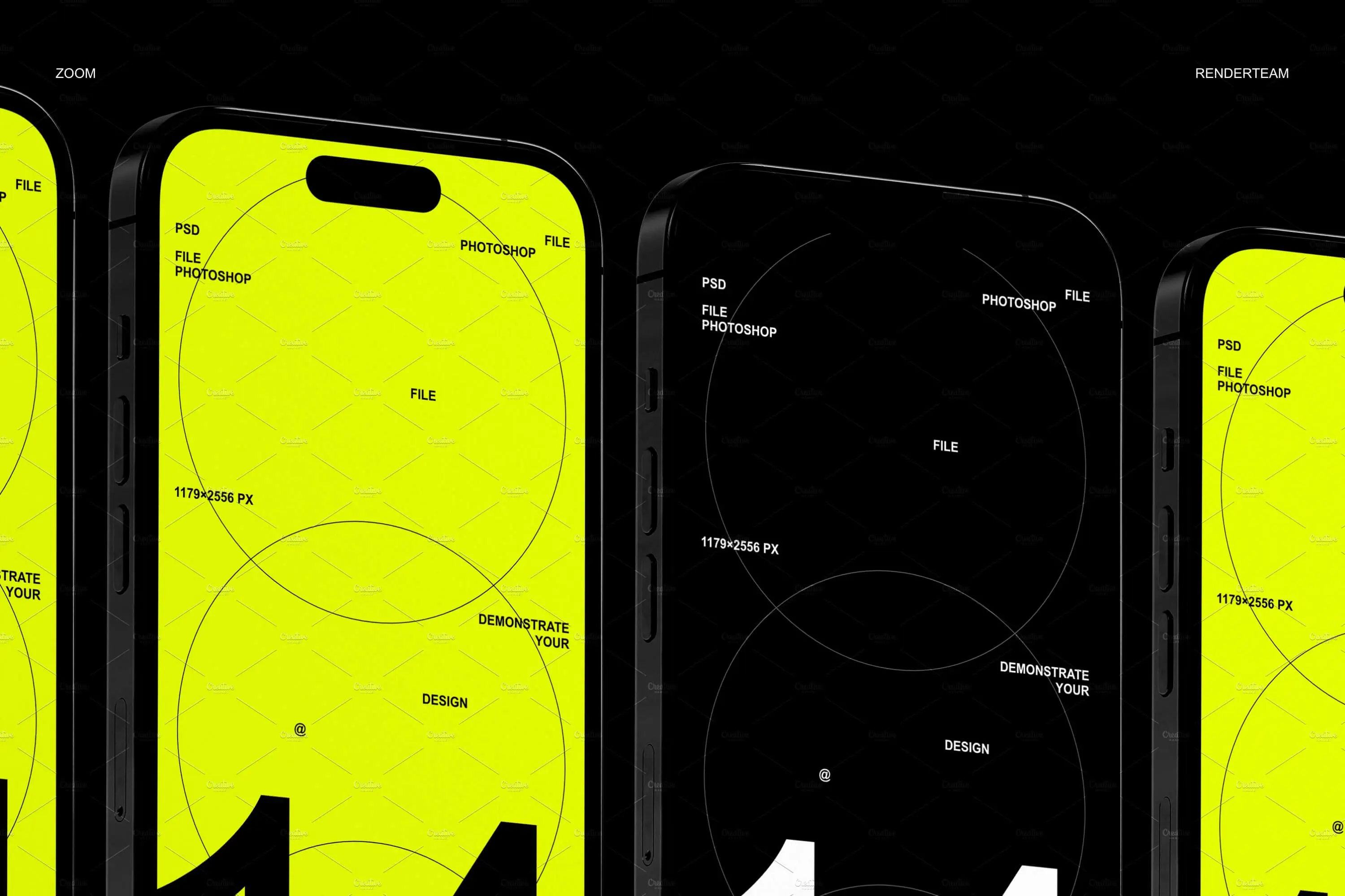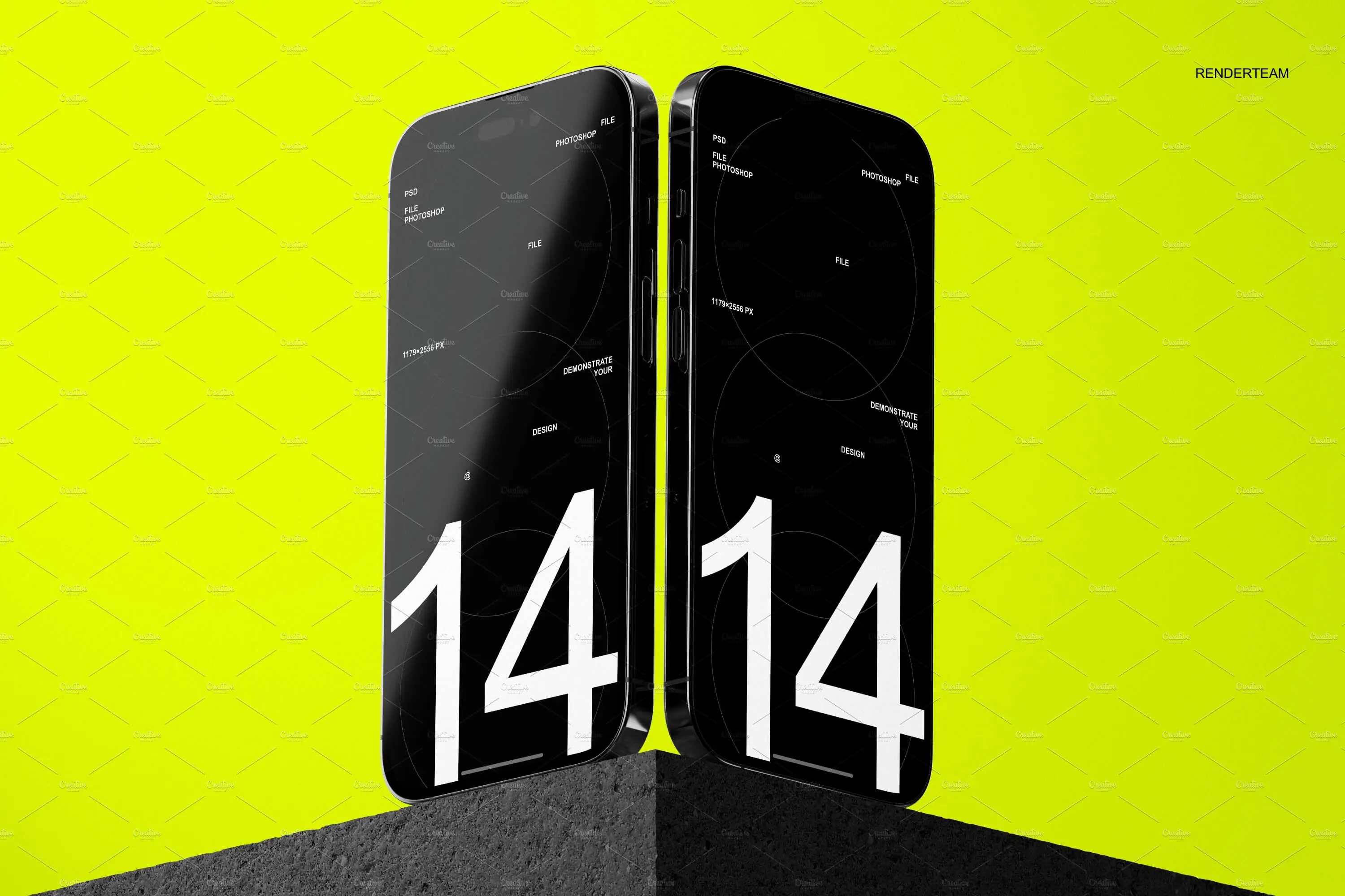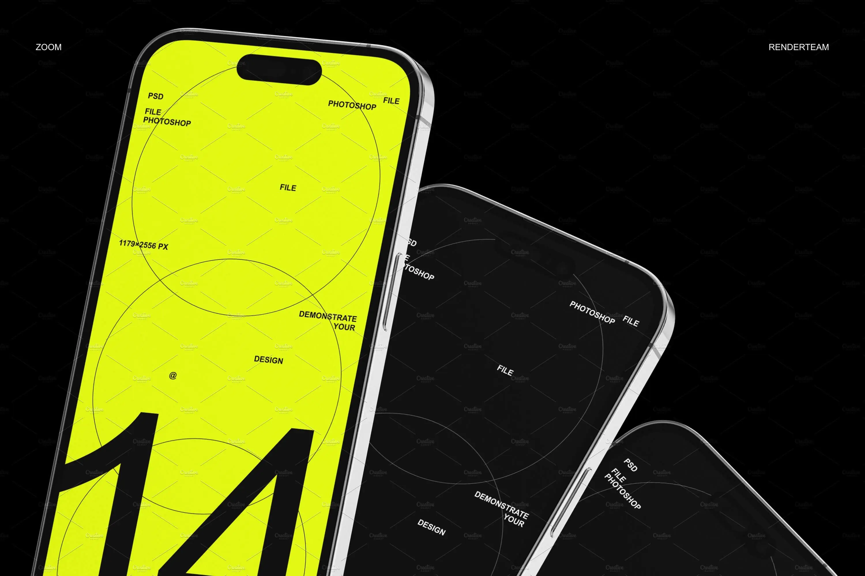 iPhone 14 Pro Mockup 4款极简iPhone14手机App应用ui界面设计作品展示ps样机素材效果图