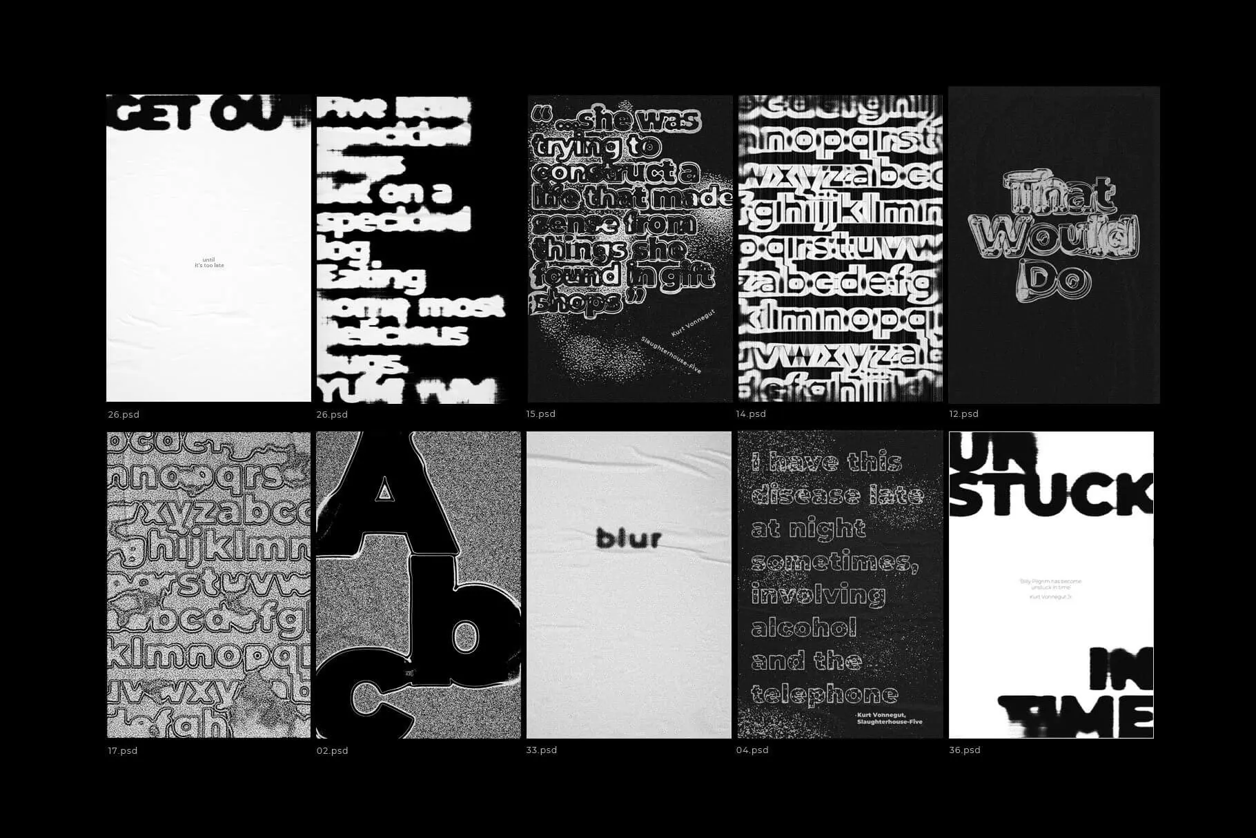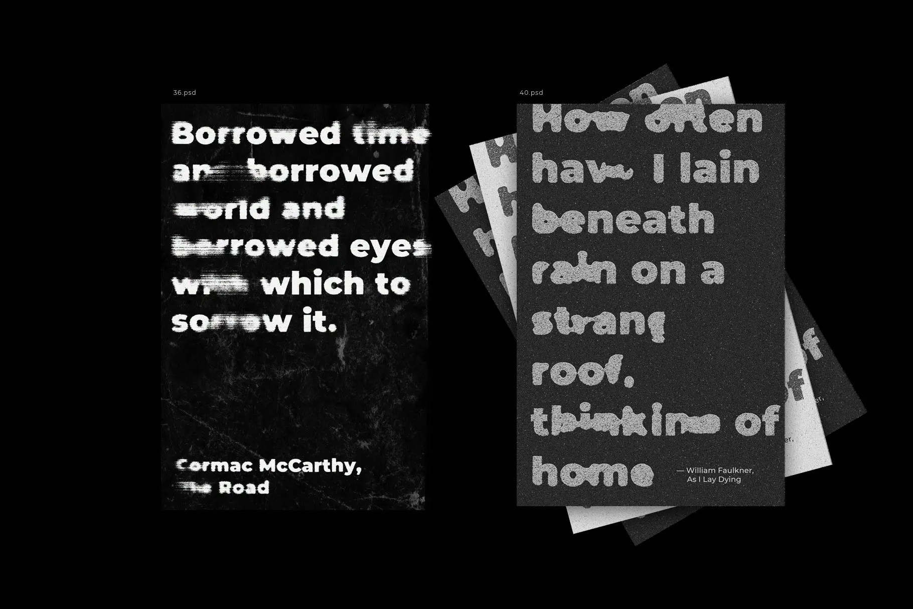 40 Photoshop Text Effects Vol.2 40款潮流艺术扎染水墨迷幻模糊故障风复古做旧融化特效字体ps样机
