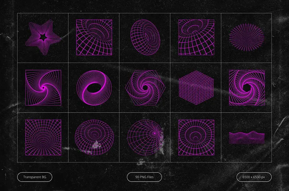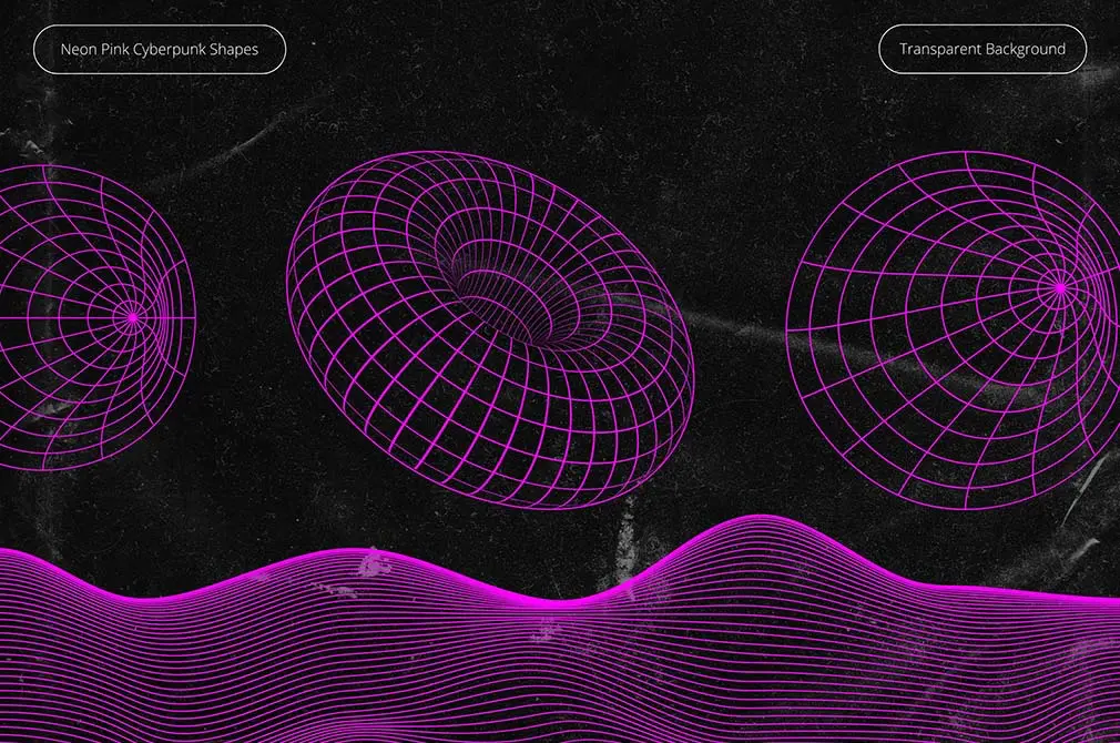 Neon Pink Cyberpunk Shapes 90款潮流未来科幻Y2K赛博朋克抽象艺术几何图形webp免抠图片素材