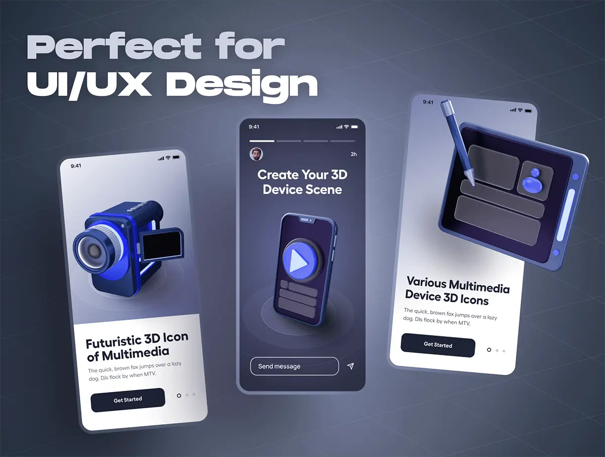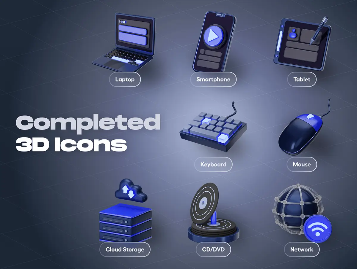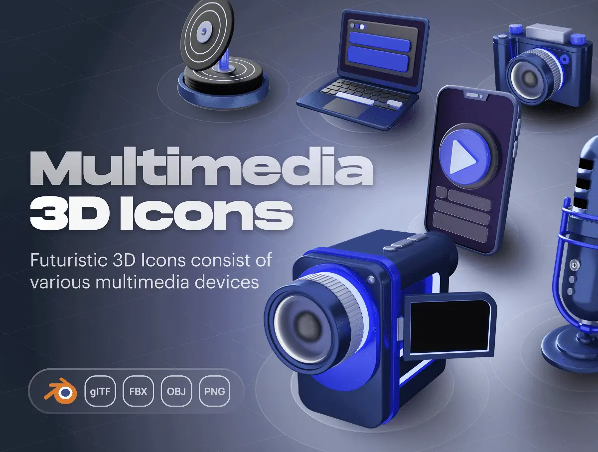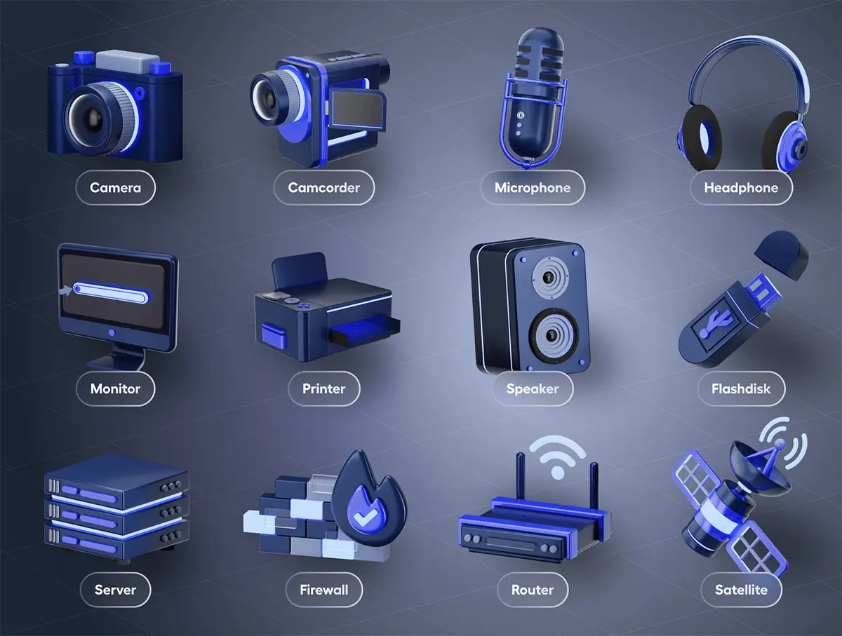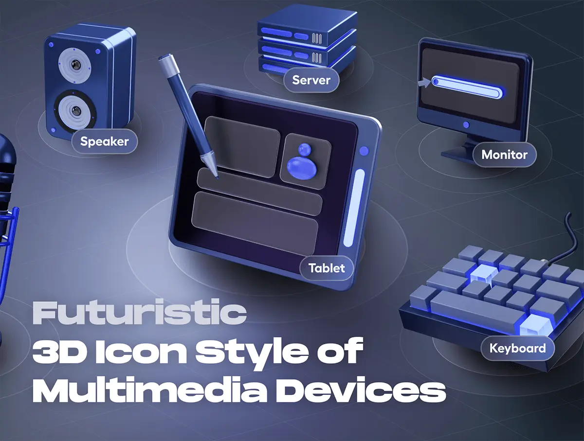 Devicely – Multimedia & Device 3D Icon Set 20款3D立体多媒体科技数码影音网络设备icon图标webp免抠图片素材