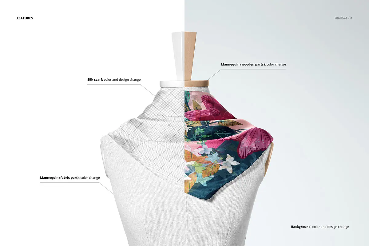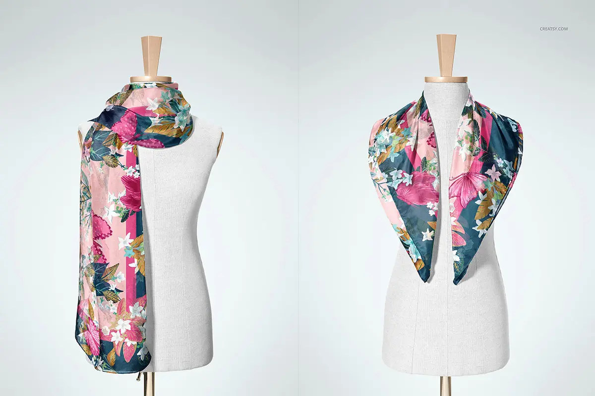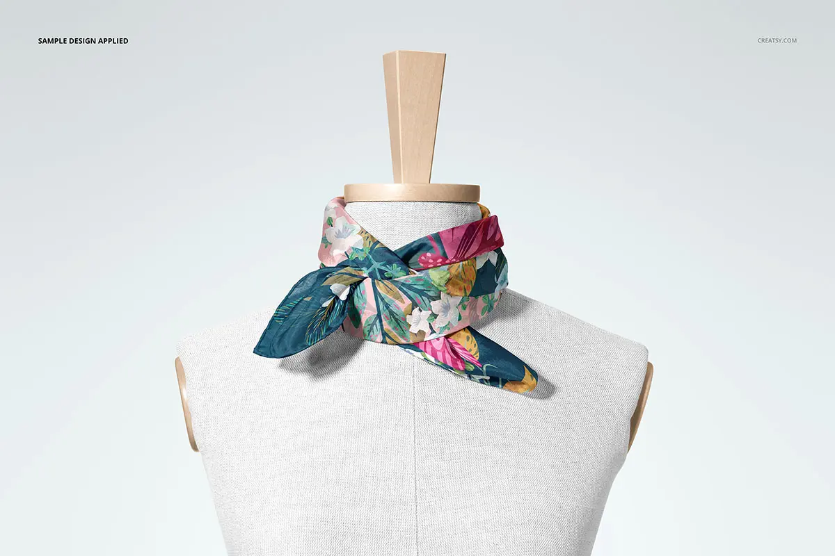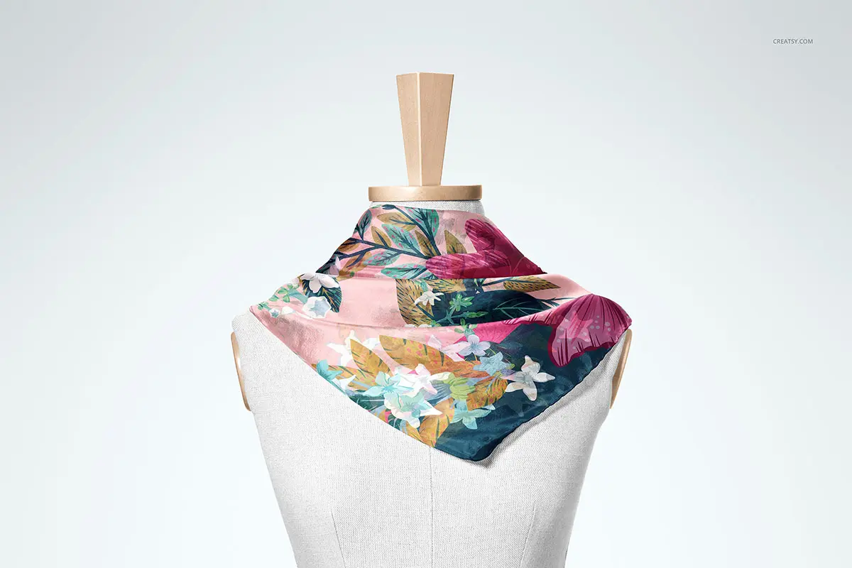 Habotai Silk Scarf Mannequin Mockup 4款丝绸真丝围巾小方巾丝巾披肩图案贴图ps样机素材展示效果图