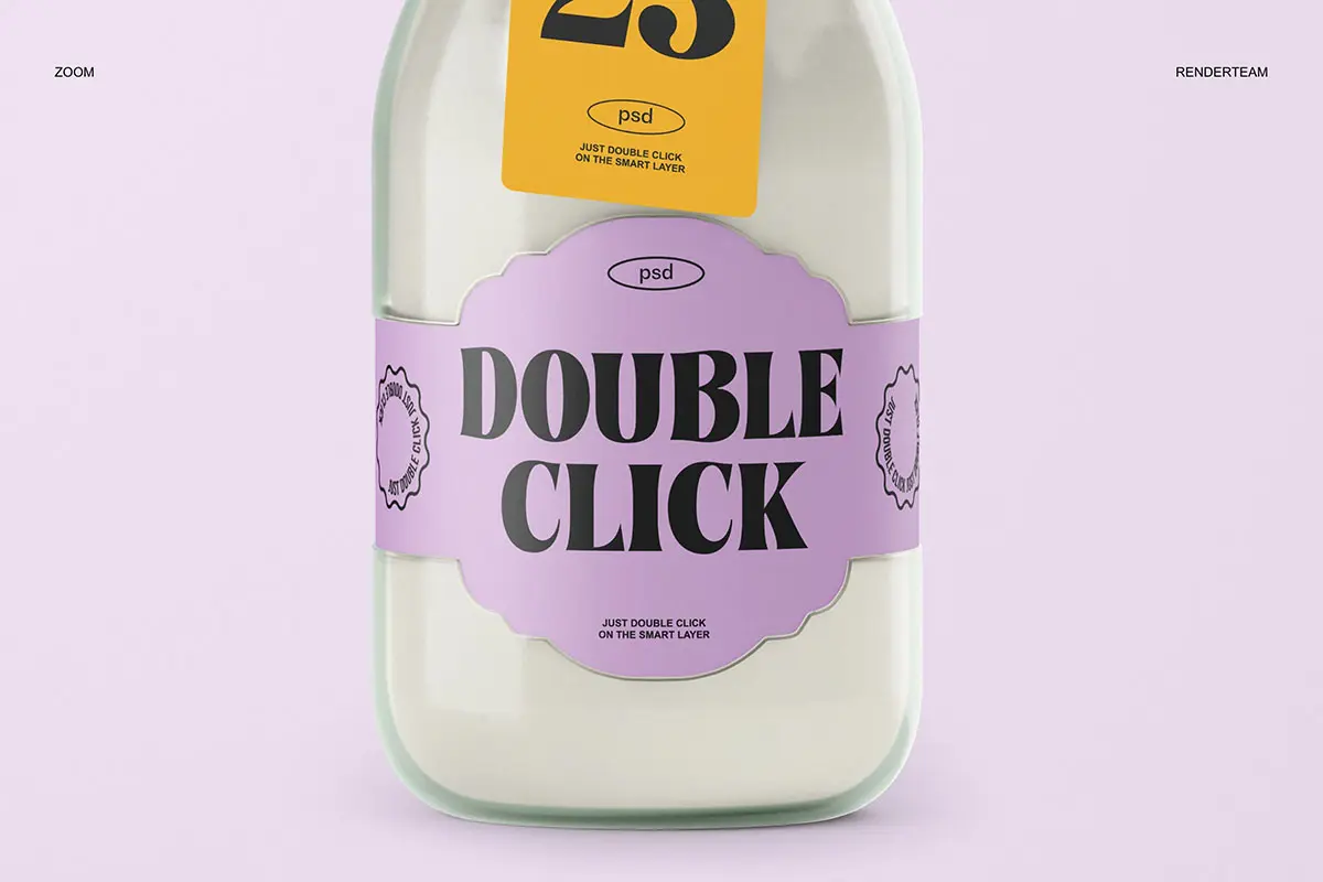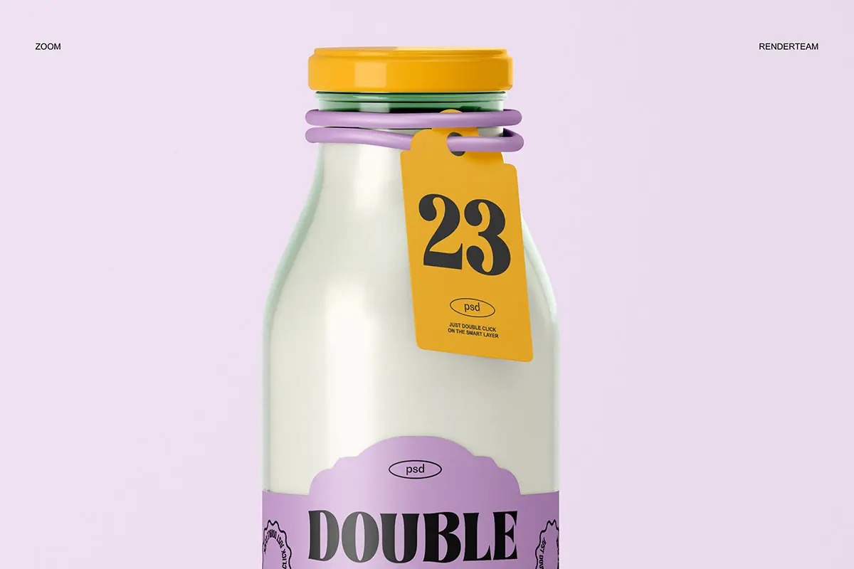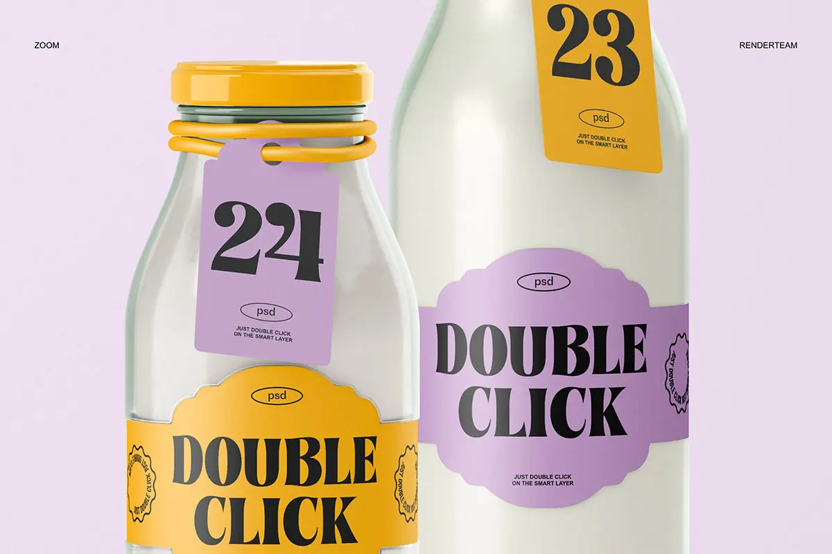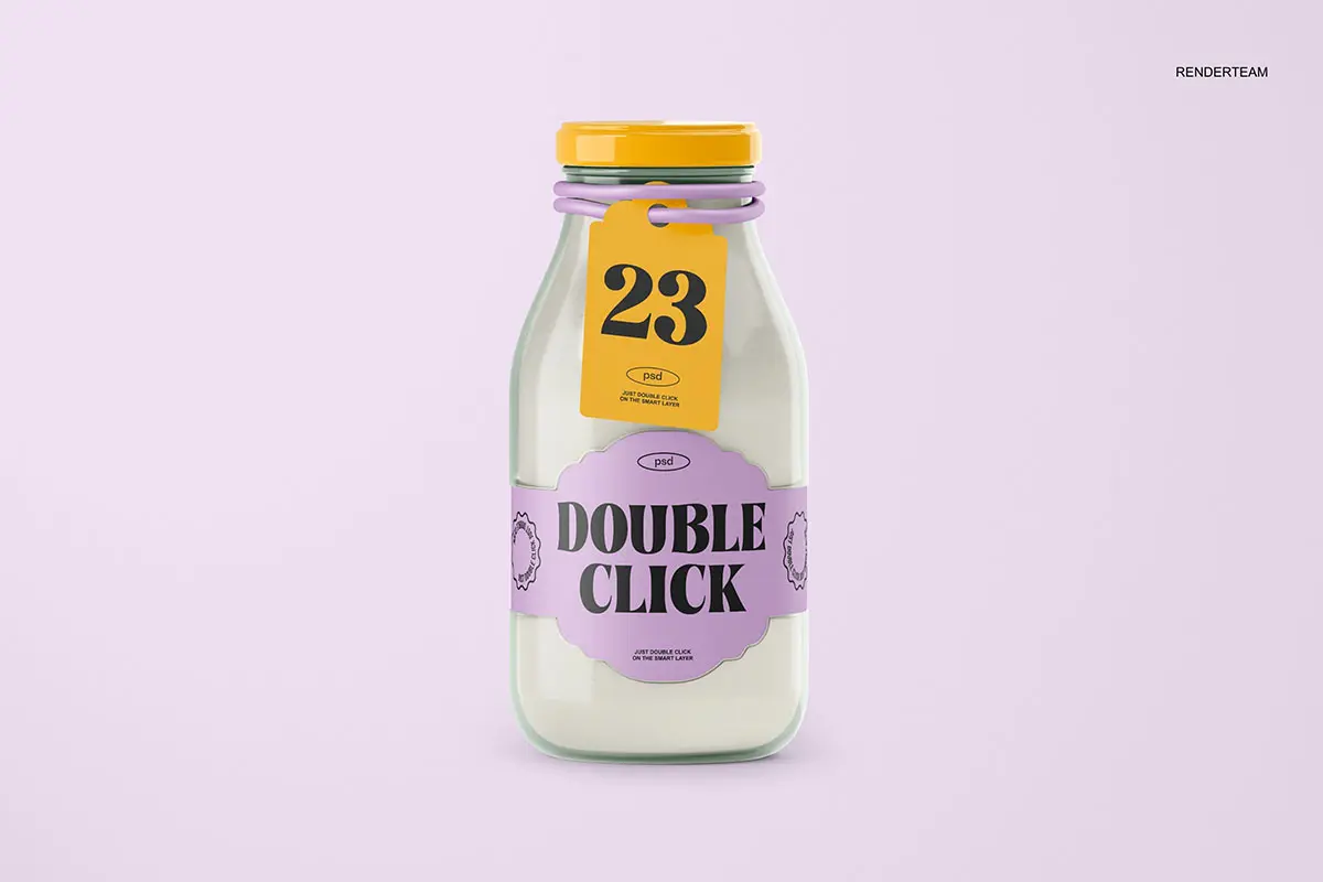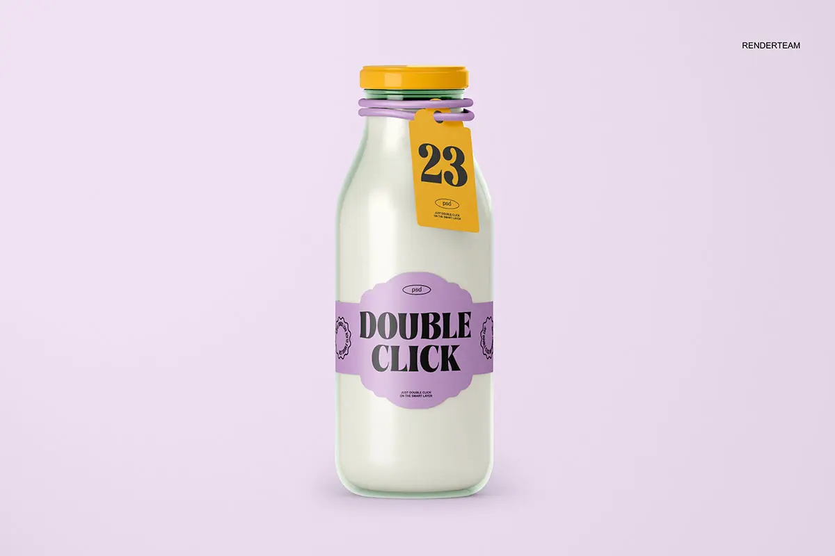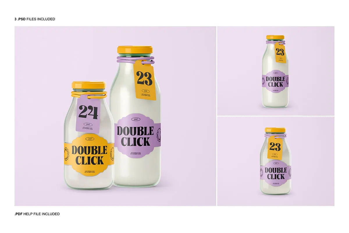 Glass Bottle Mockup 3款玻璃瓶牛奶饮料瓶子产品包装设计贴图ps样机素材展示效果图