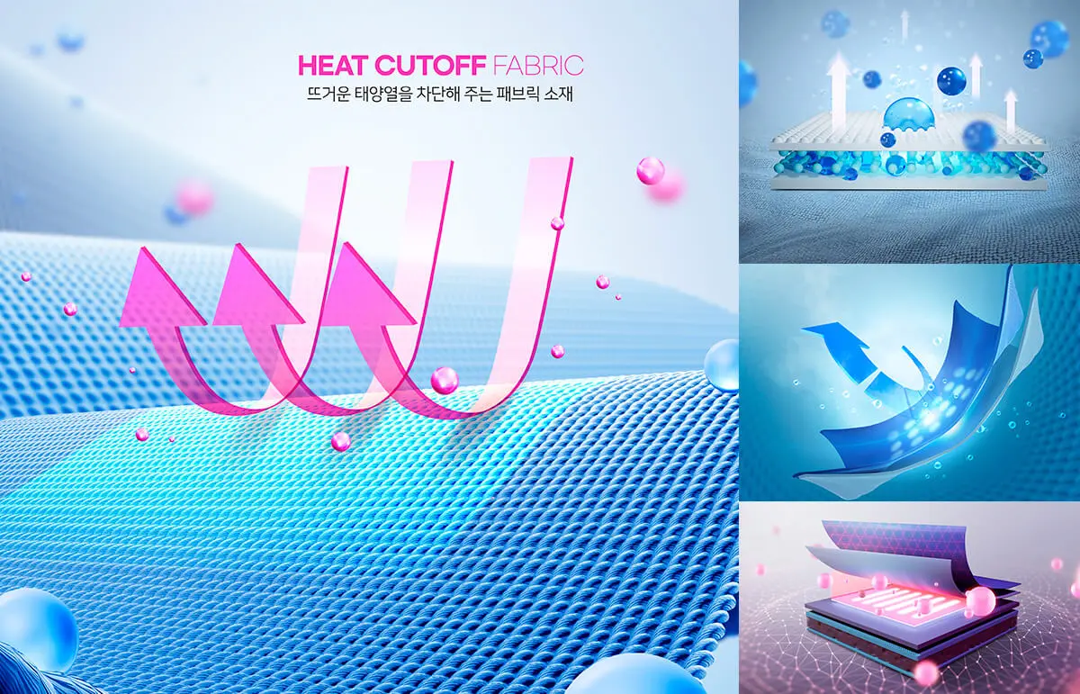 HEAT CUTOFF FABRIC 13款功能性面料展示讲解示意图广告海报PSD分层设计源文件