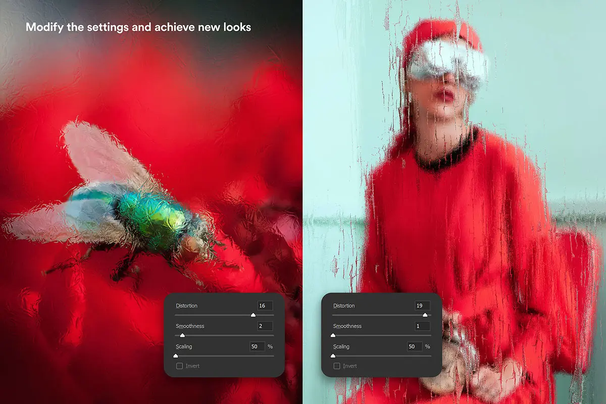 Hyper Glass Vol.02 by Hyperpix 潮流复古划痕雨滴磨砂波浪玻璃效果照片处理特效ps动作模板素材