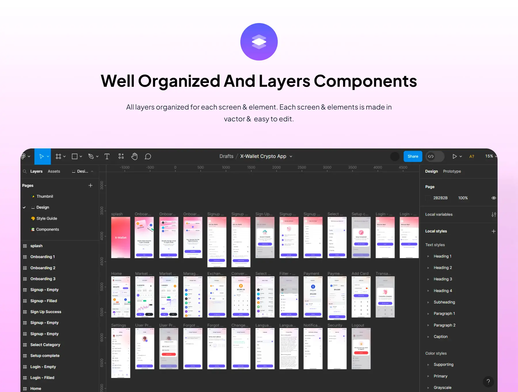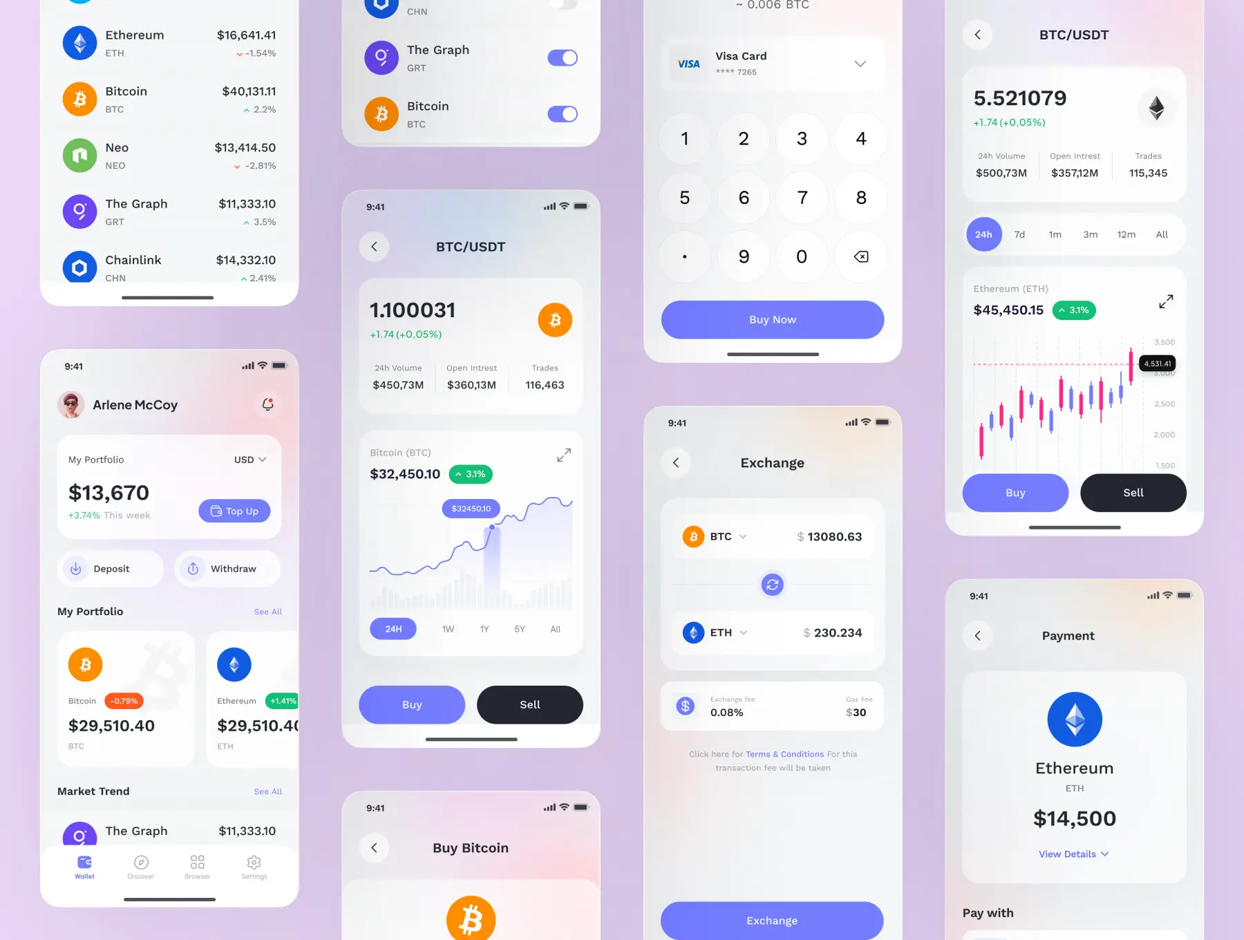 X-Wallet Crypto Wallet Premium UI Kits App 35屏时尚加密货币电子钱包APP应用软件界面设计Figma模板素材