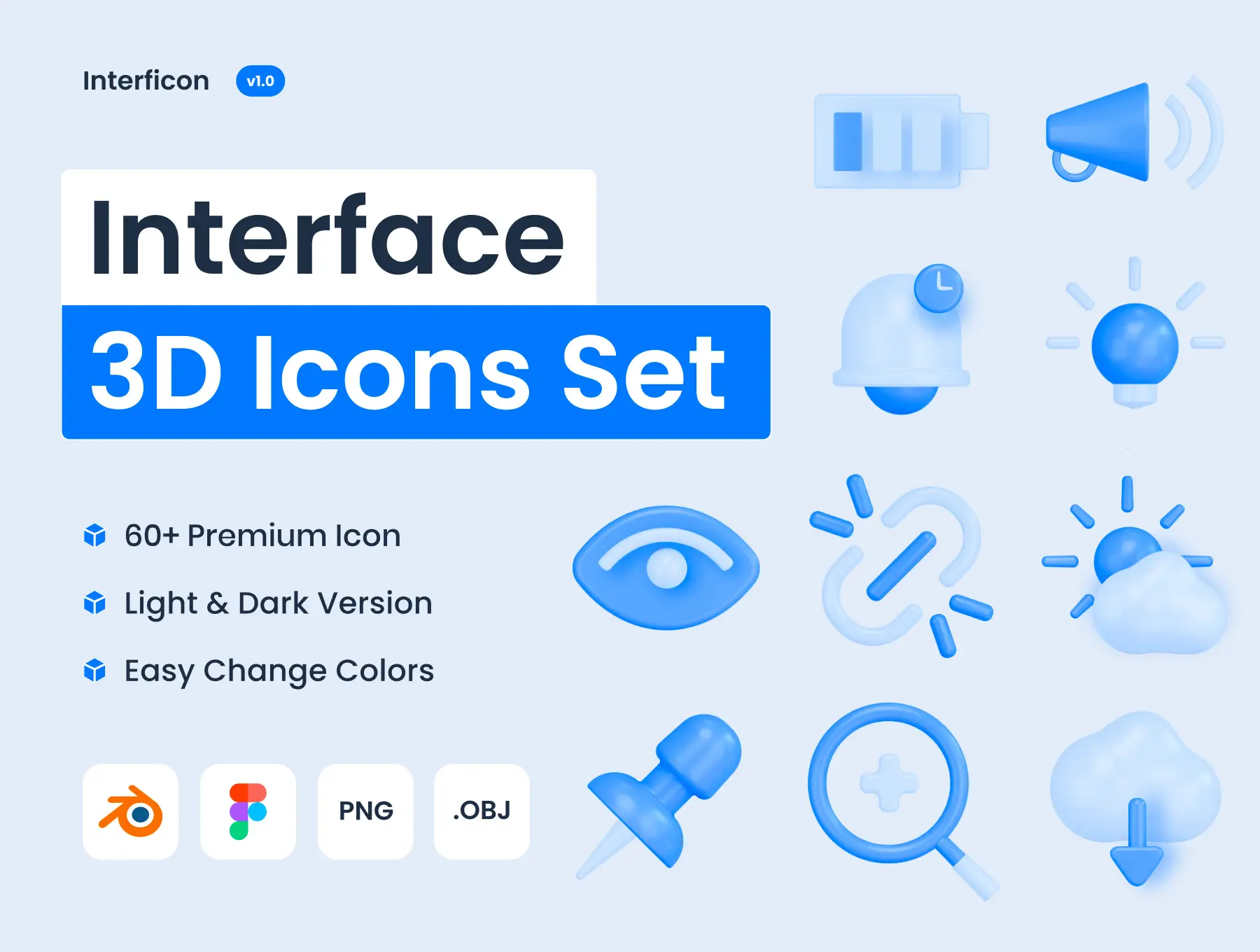 Interficon – 3D Interface Icons 设计师常用的3D用户界面高清icon小图标合集