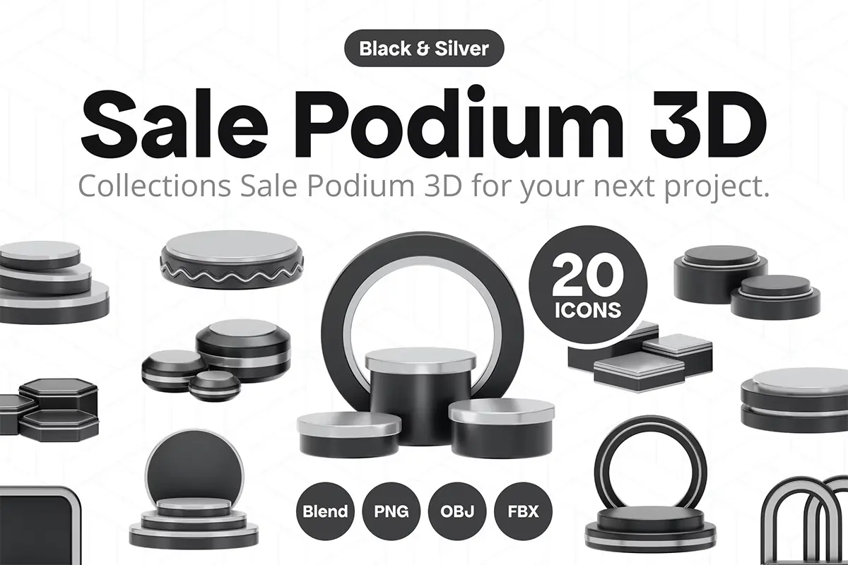 Sale Black Stage Podium 3D 20款黑色营销展台舞台讲台3D插图插画图片webp免抠图设计素材