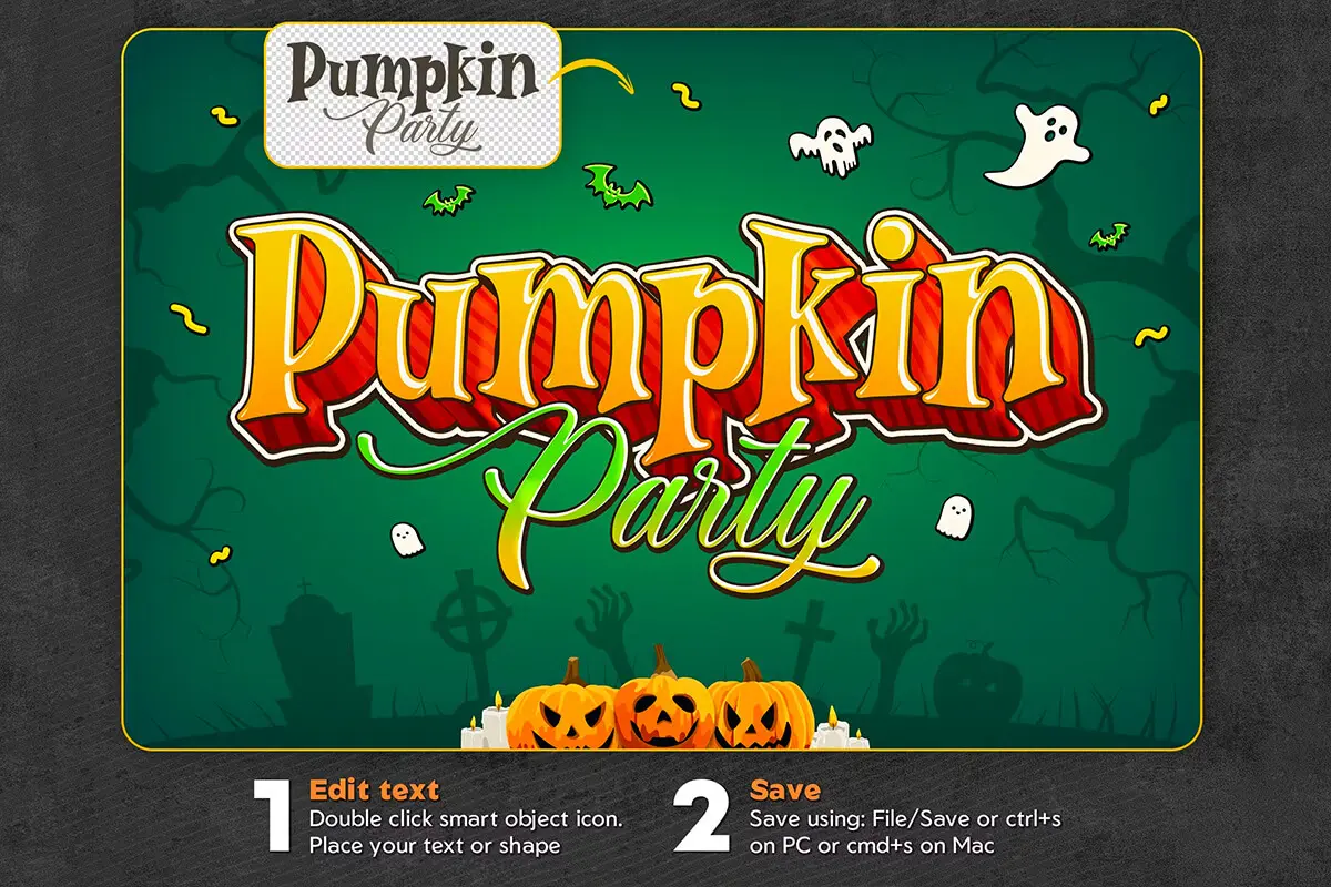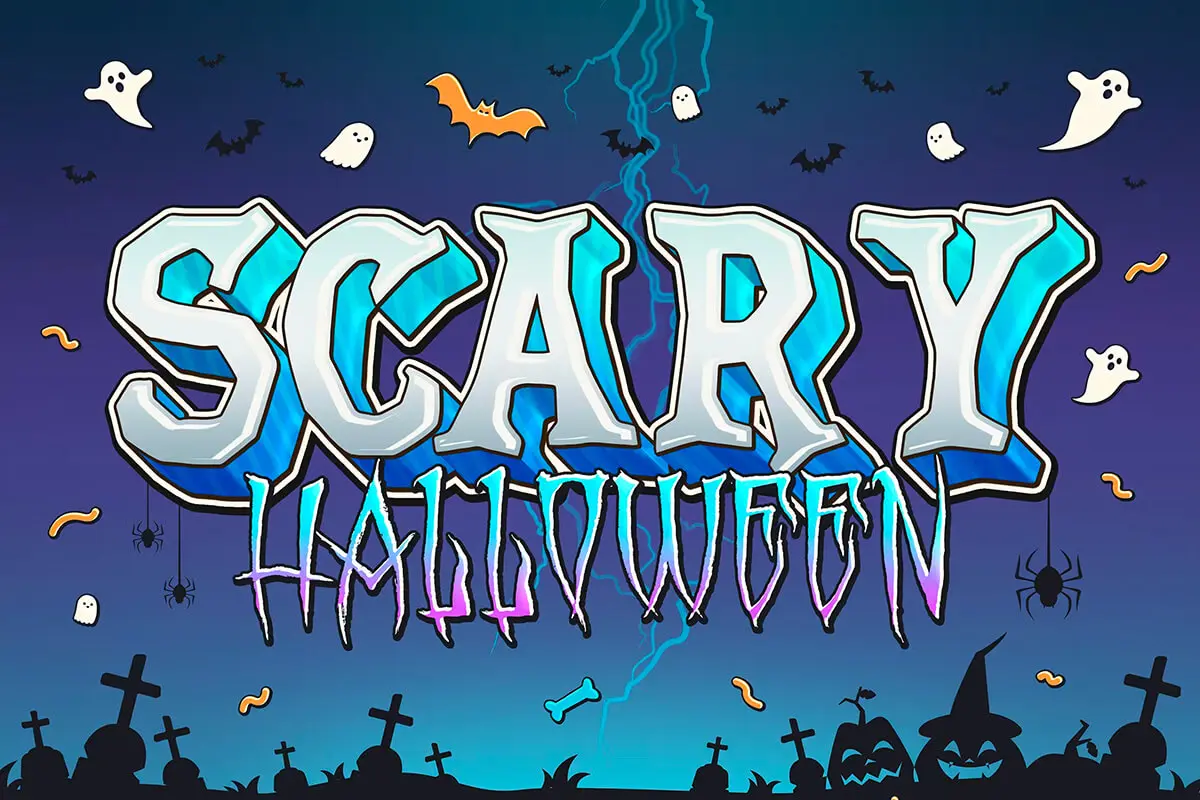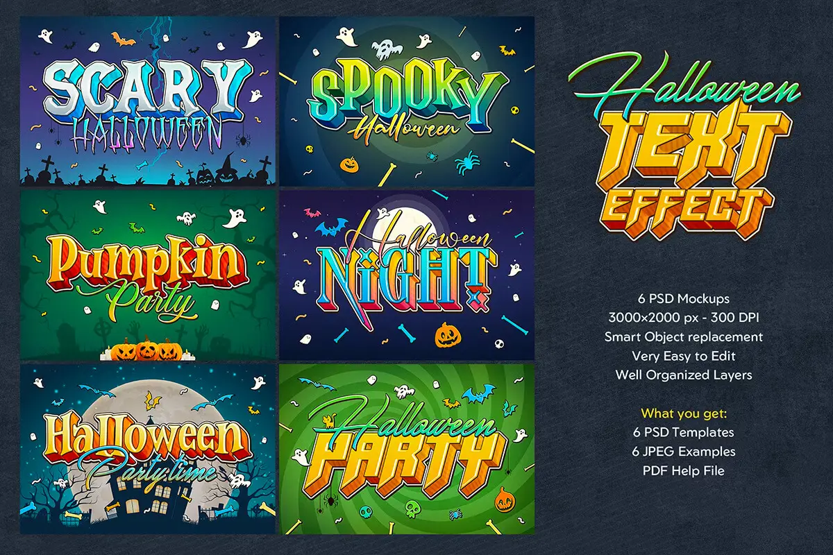 Halloween Text Effects 6款万圣节派对装饰元素slogan文本标题pop字体特效ps样机素材分层模板