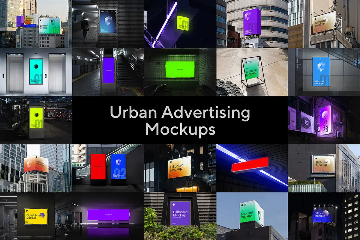 Urban Advertising Mockups 36款街拍地铁站台灯箱广告牌横幅海报设计作品ps样机展示效果图