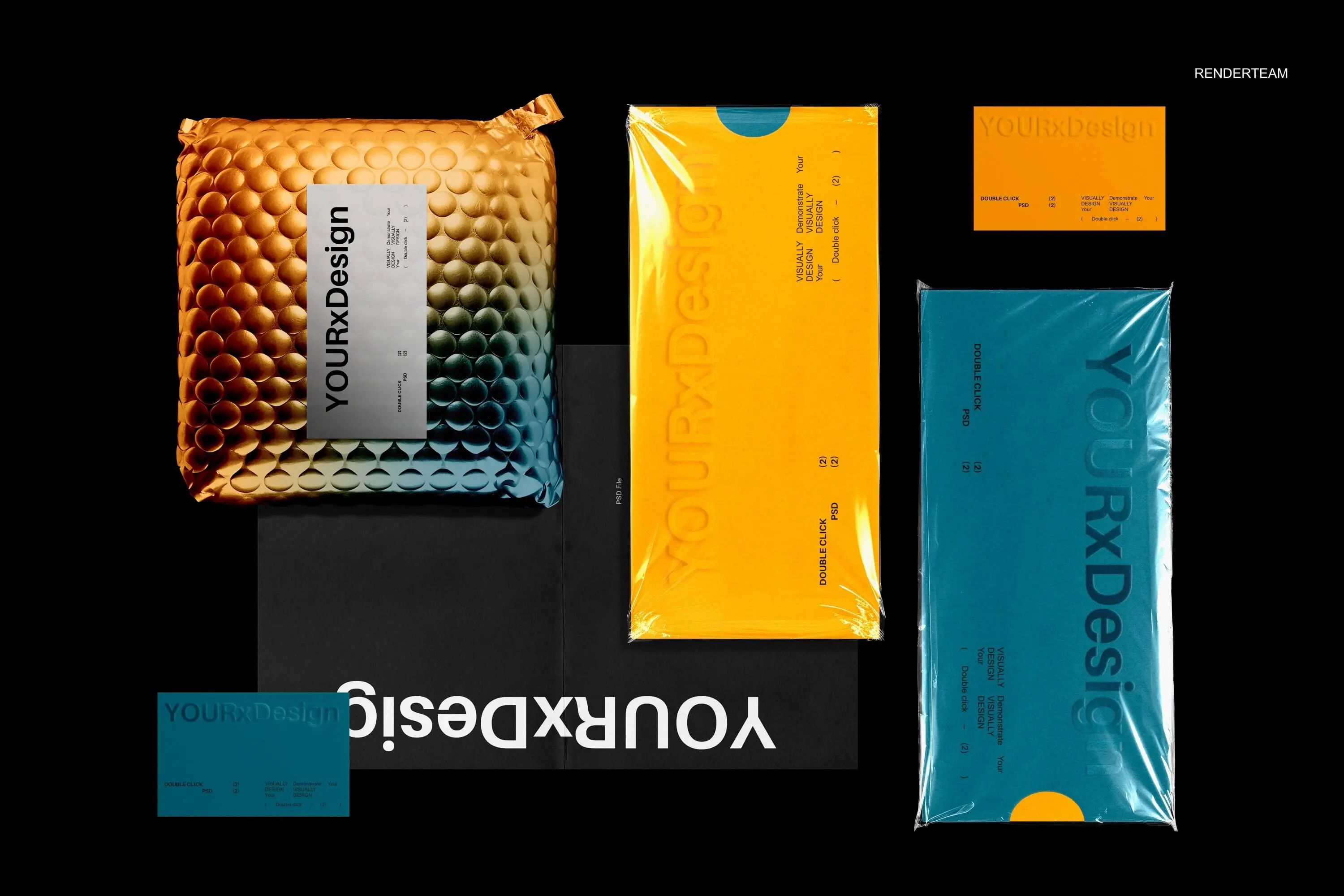 Brand Identity Mockup Set 文件夹信纸名片包装袋文具品牌VI应用设计ps样机素材展示效果图
