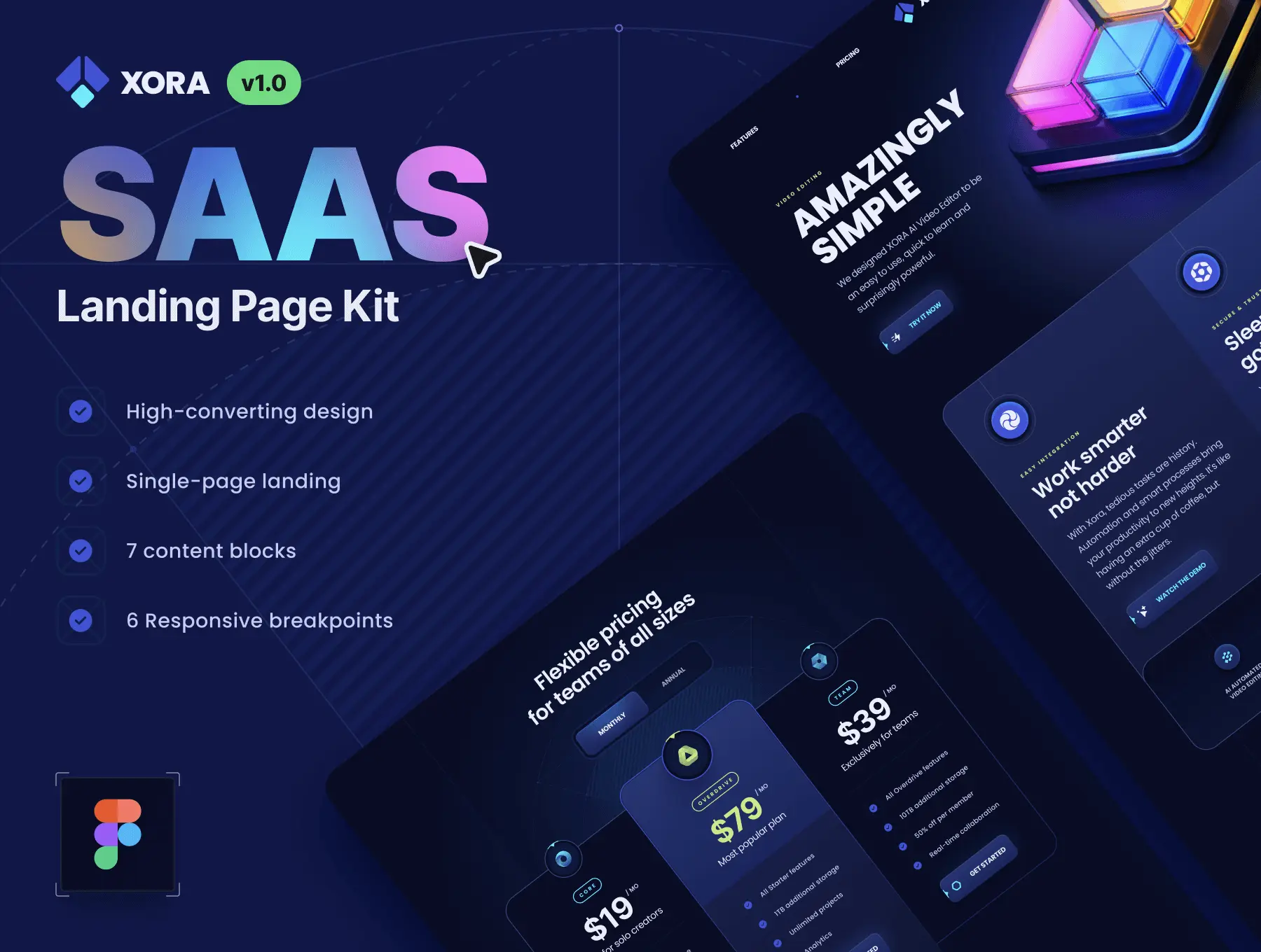 XORA – SaaS Landing Page Kit 科技时尚全套专业SAAS软件服务网站界面UI套件Figma网页设计模板