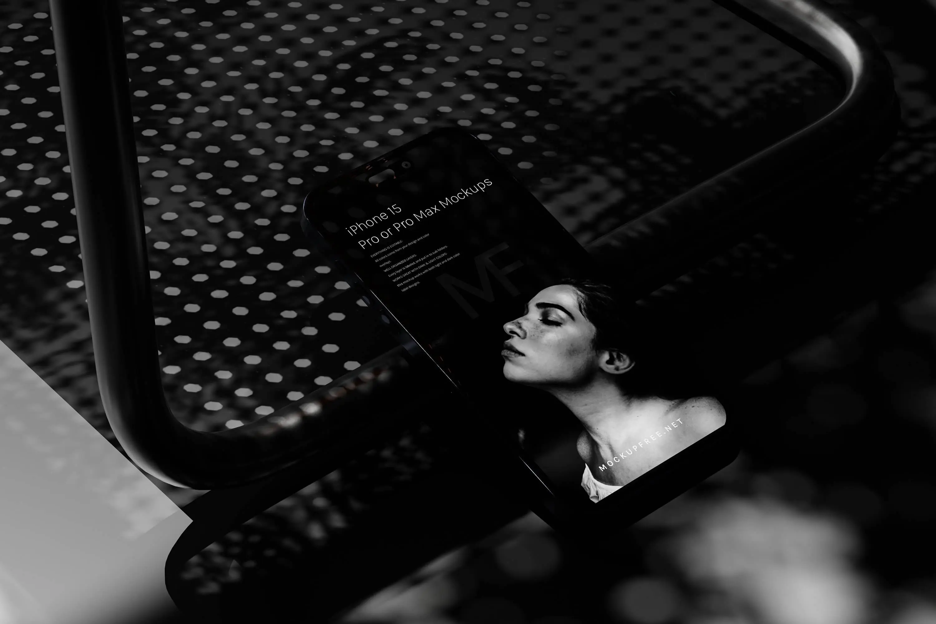 iPhone 15 Dark Moody Mockups 10款工业黑化风苹果手机iPhone 15UI界面设计作品集展示贴图PSD样机模板免费下载