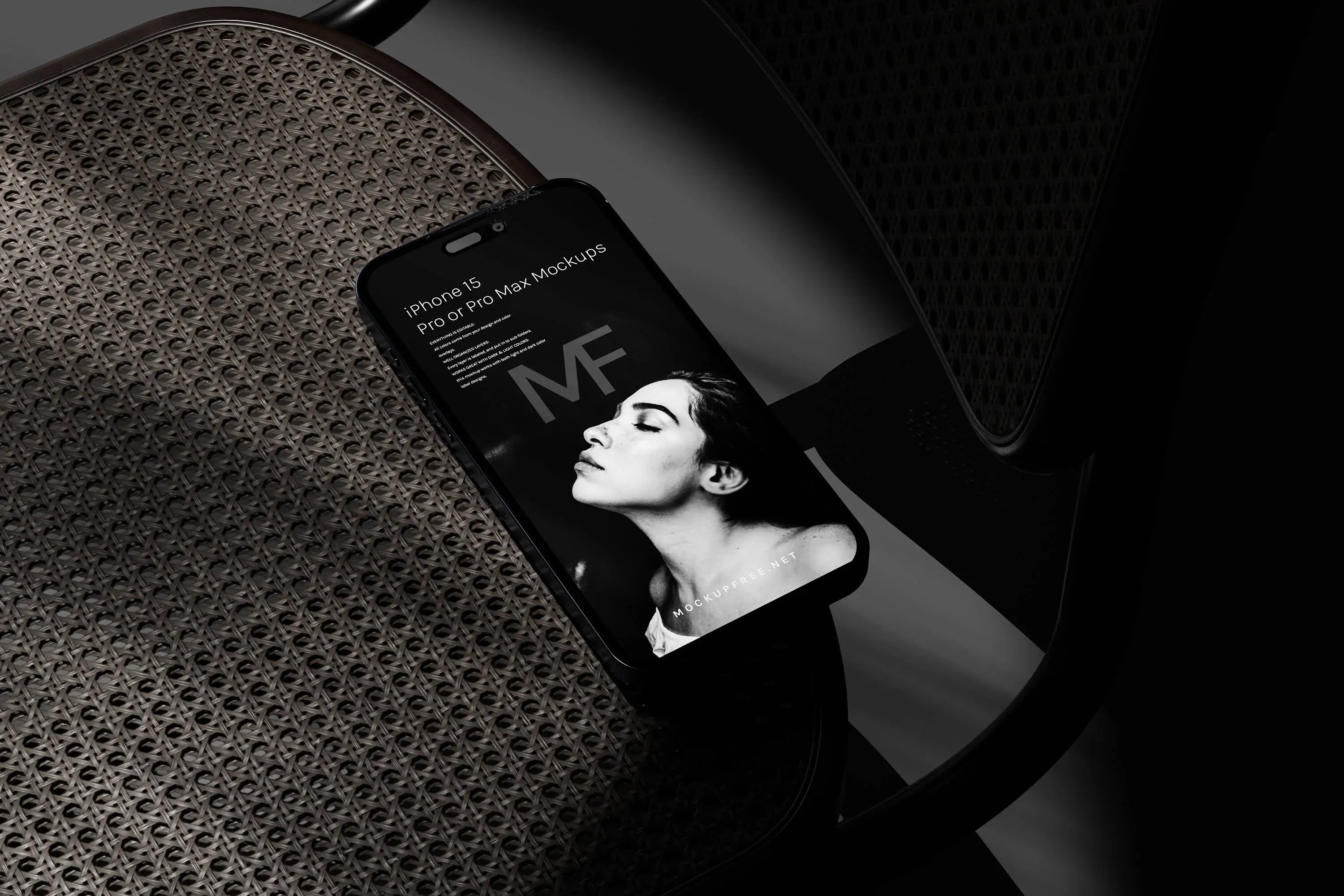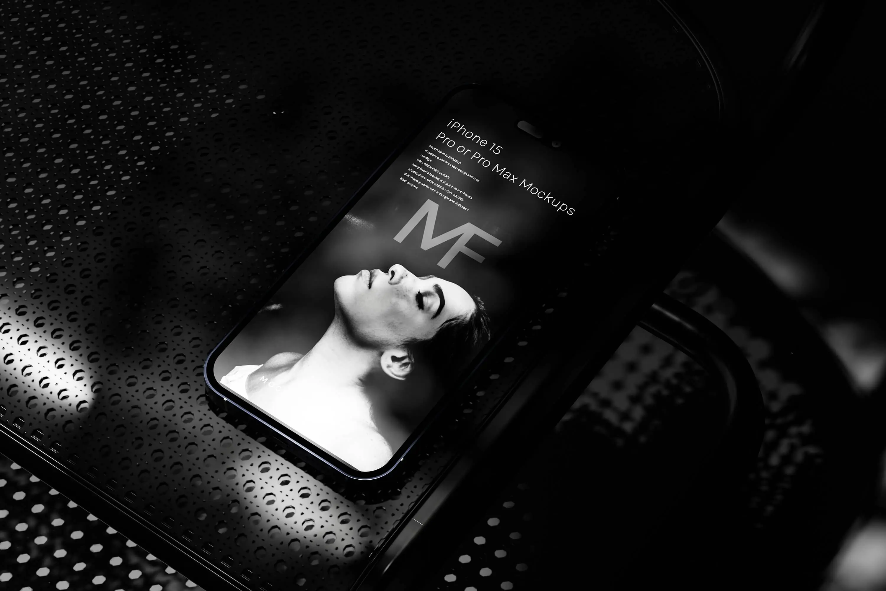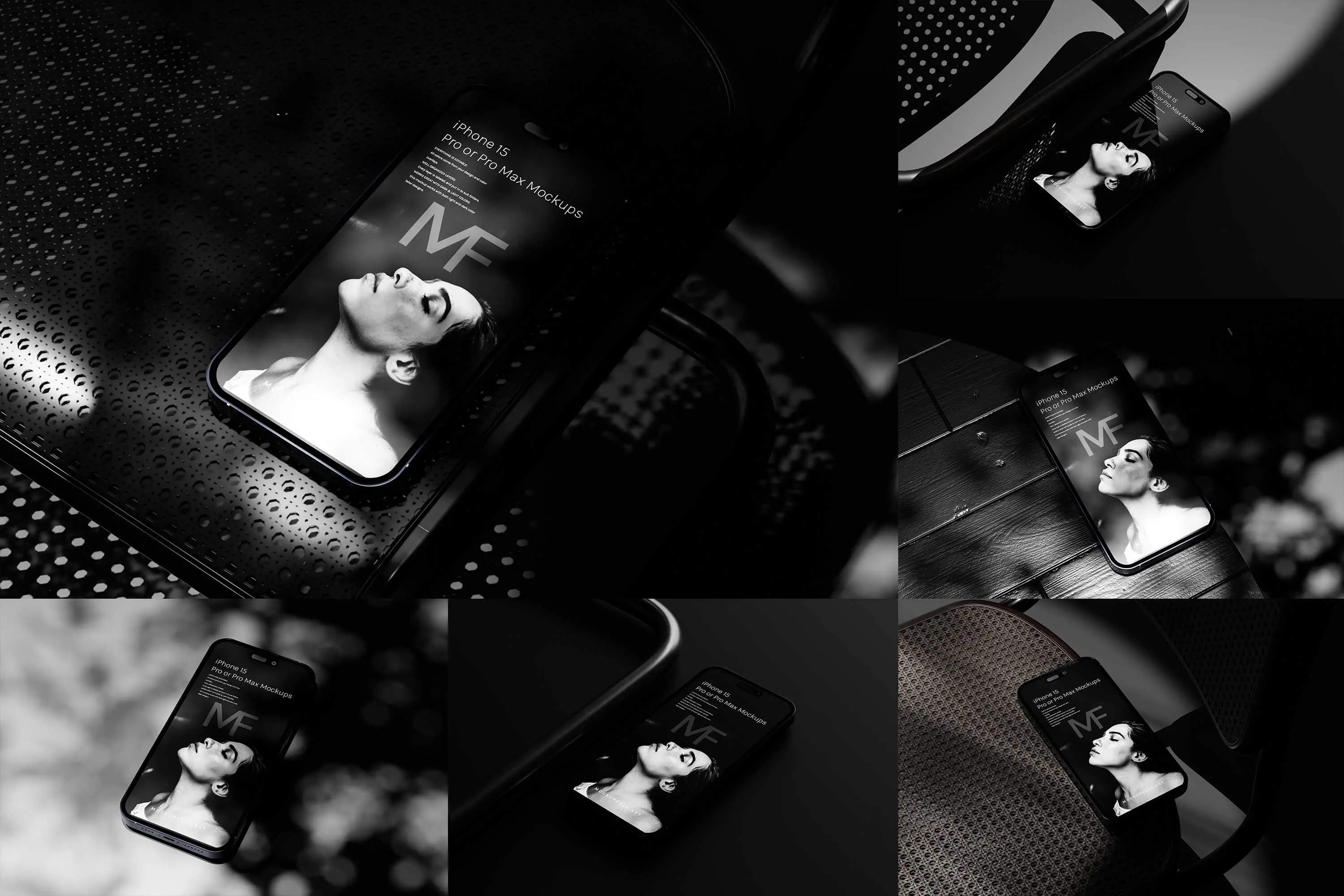 iPhone 15 Dark Moody Mockups 10款工业黑化风苹果手机iPhone 15UI界面设计作品集展示贴图PSD样机模板免费下载