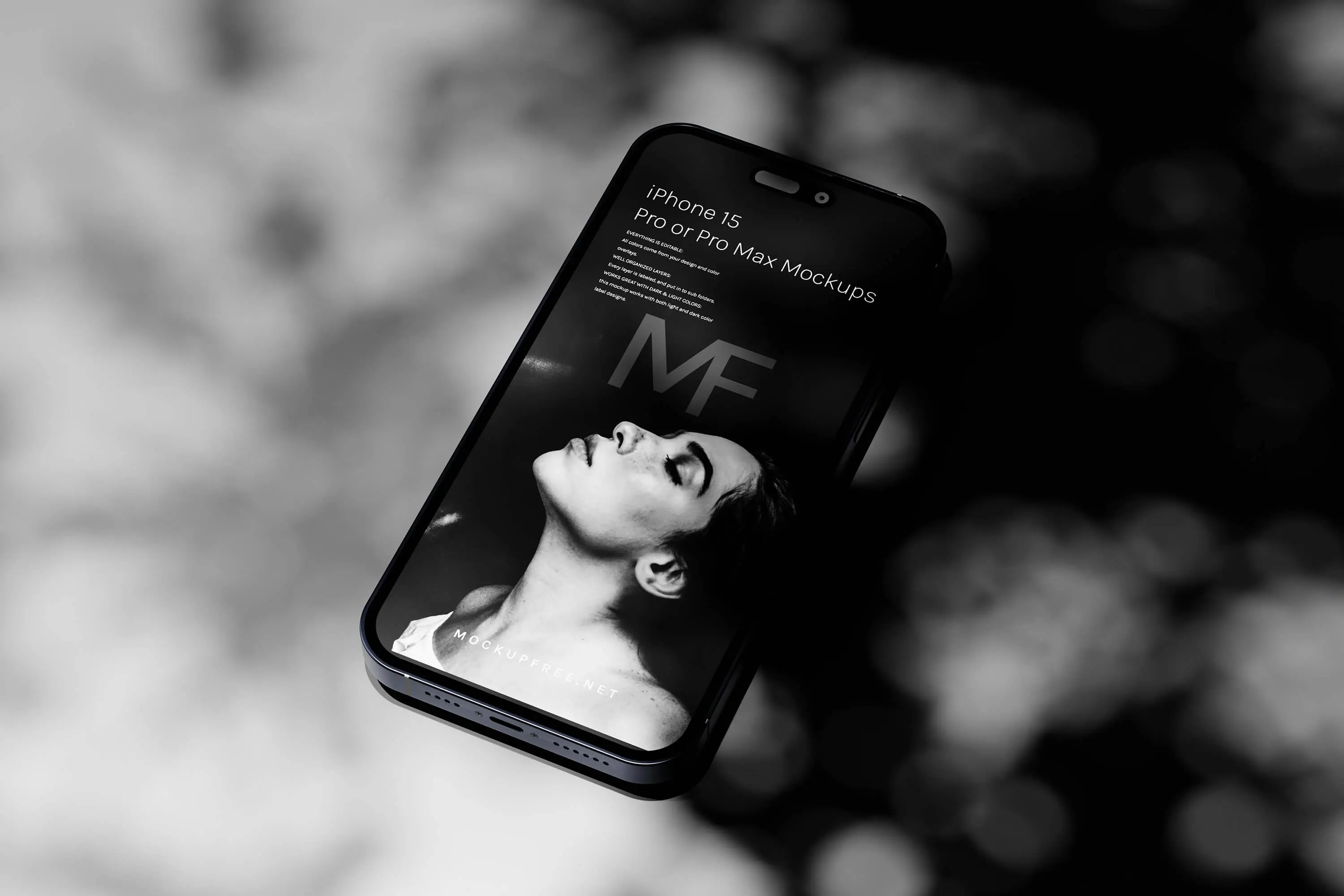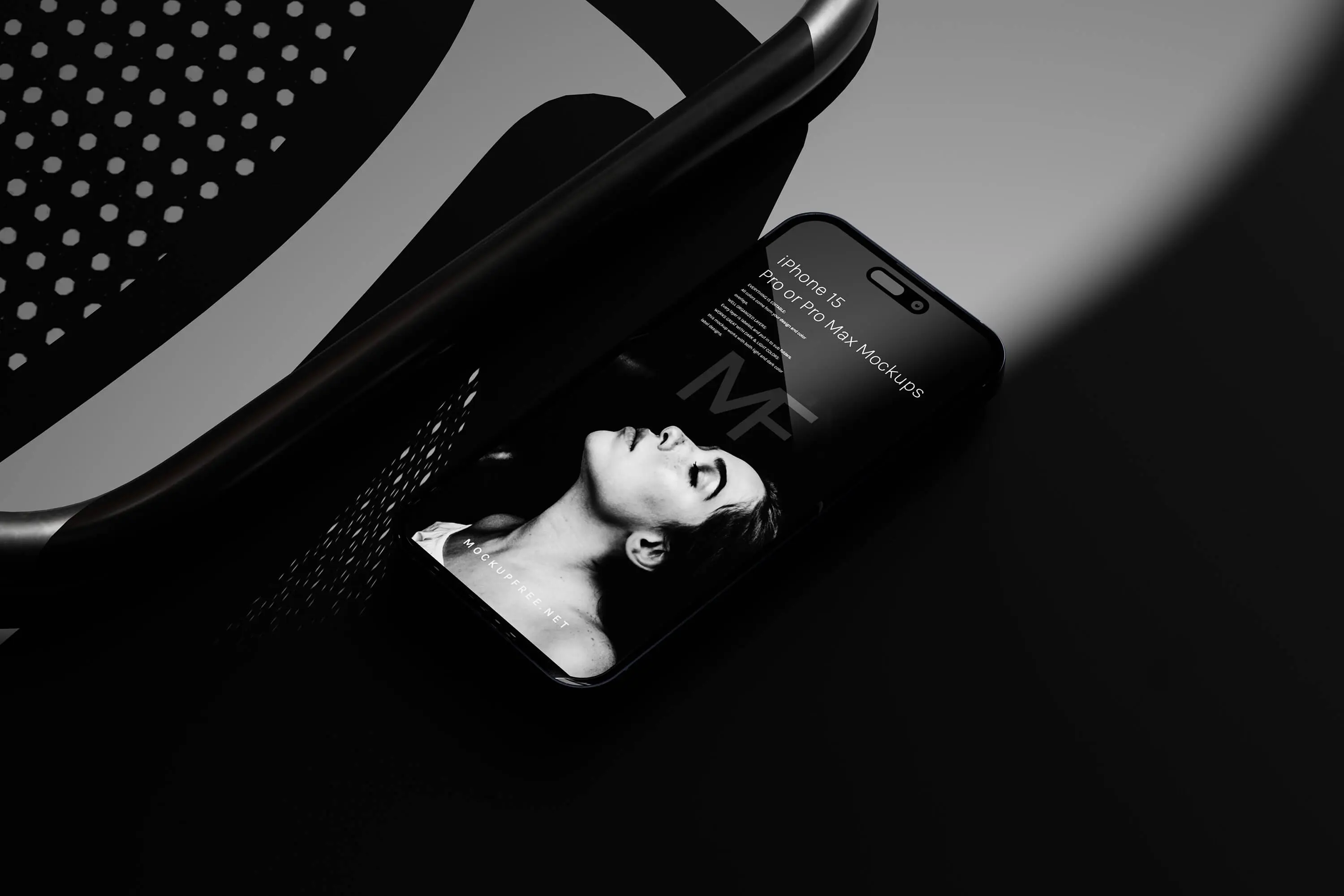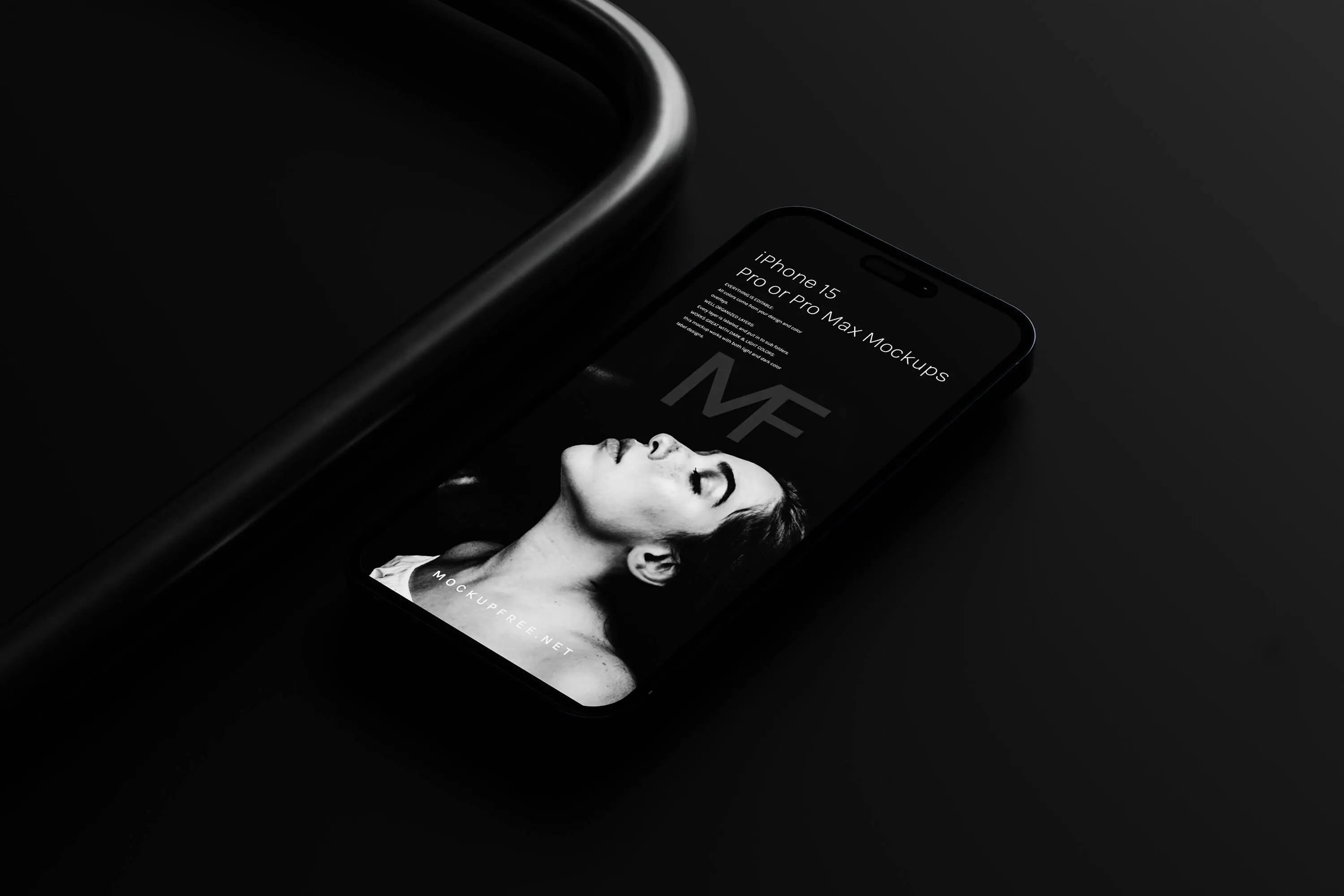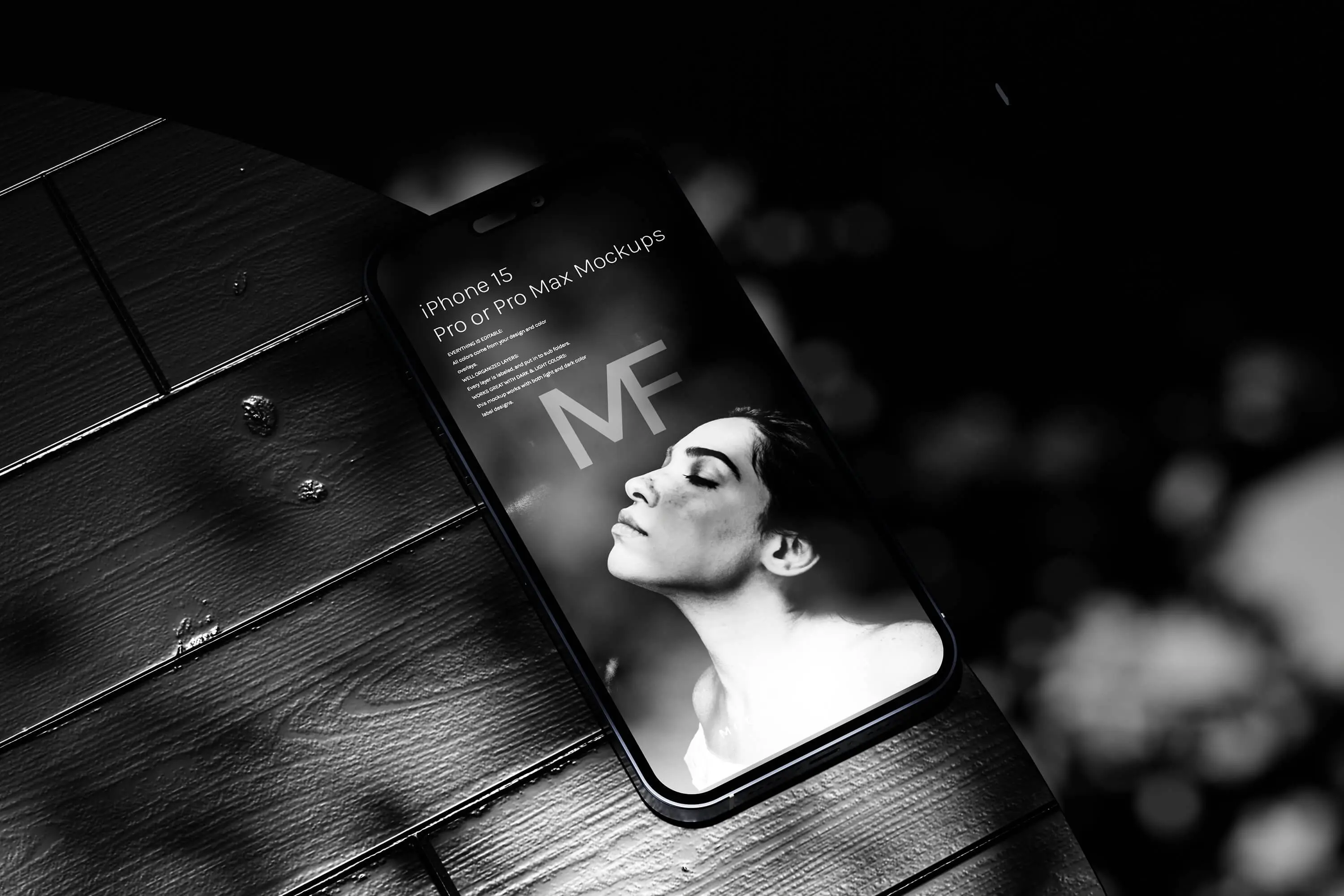 iPhone 15 Dark Moody Mockups 10款工业黑化风苹果手机iPhone 15UI界面设计作品集展示贴图PSD样机模板免费下载