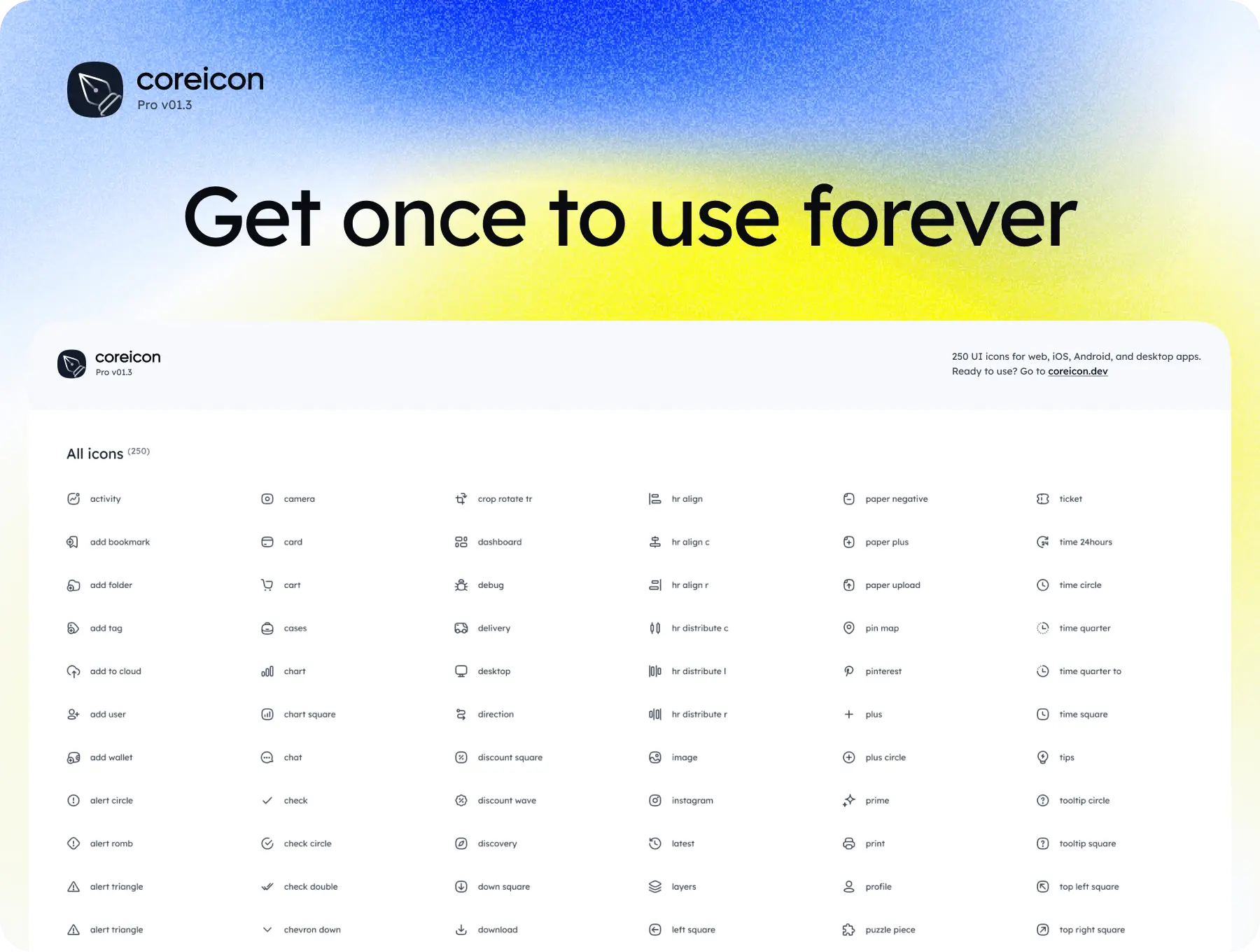 Coreicon v01.3 250款通用简约网页app网站ui小程序icon线性图标设计素材源文件