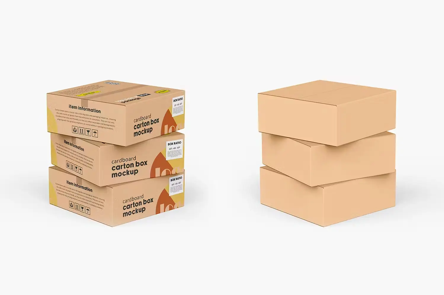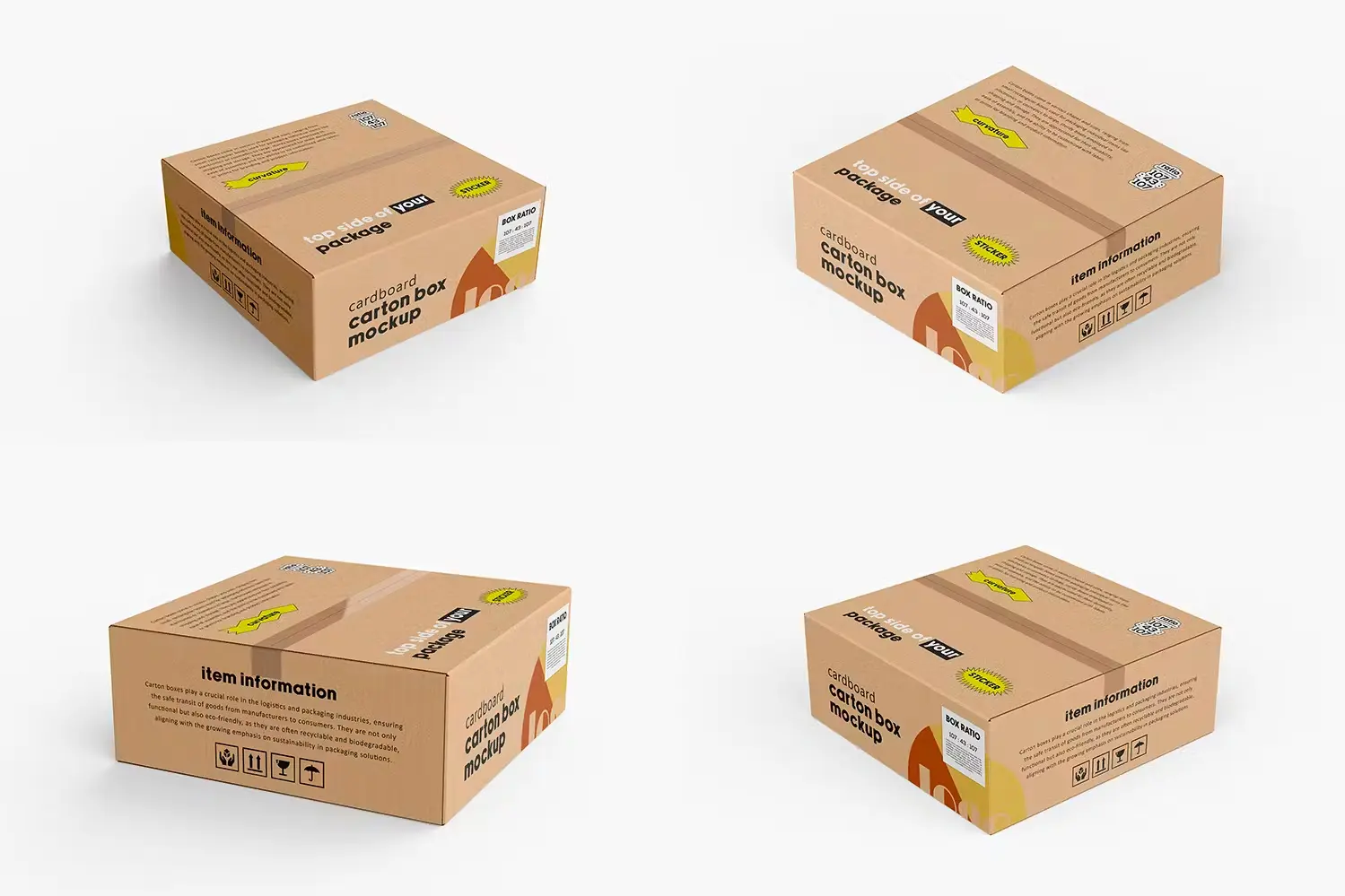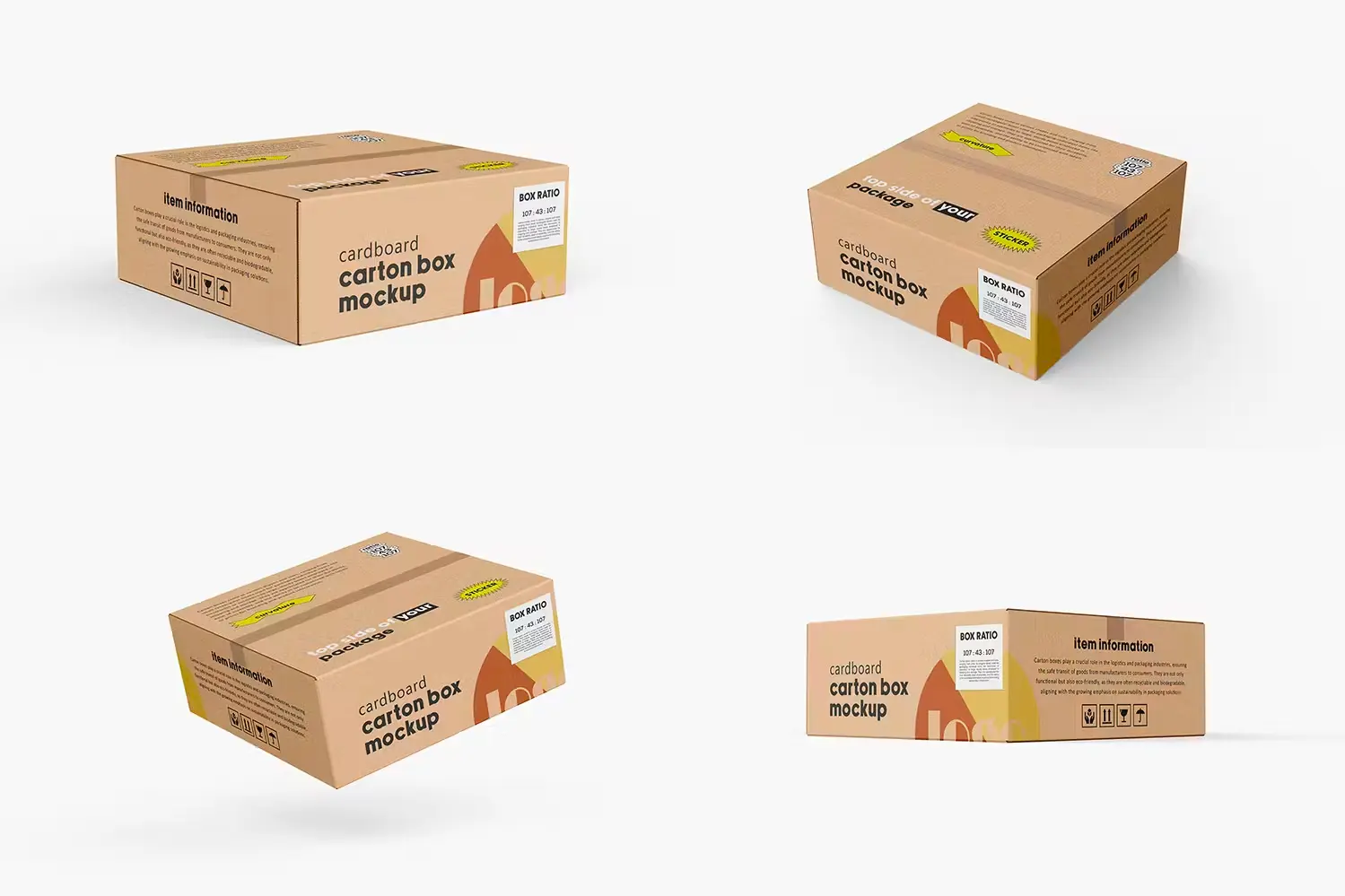 Carton Box Mockup 18款正方形打包收纳盒快递纸箱纸盒包装设计ps样机素材展示效果图