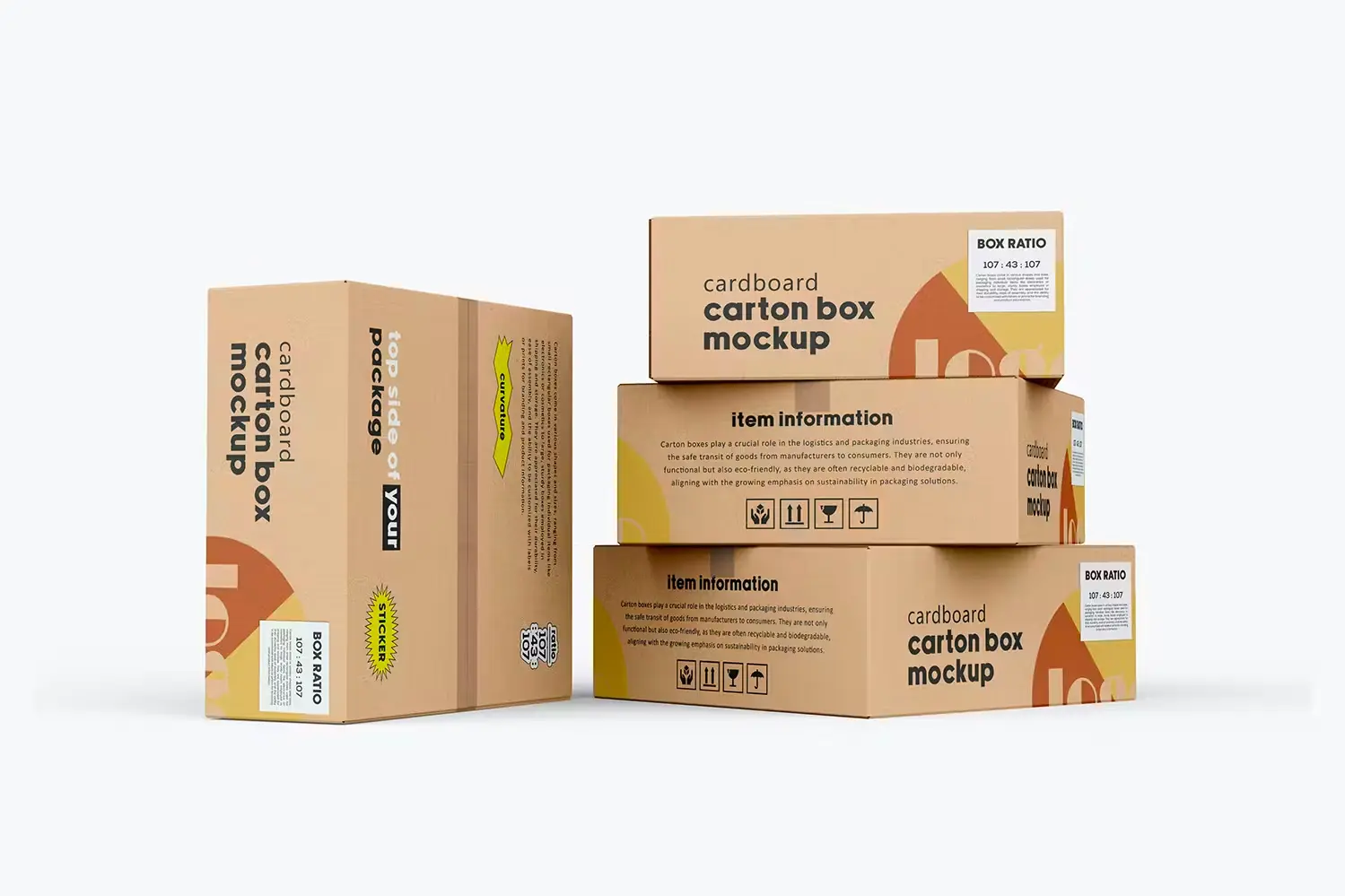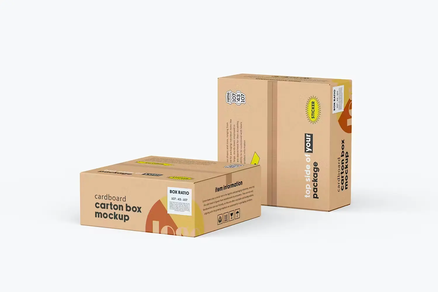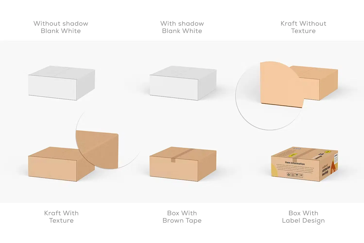Carton Box Mockup 18款正方形打包收纳盒快递纸箱纸盒包装设计ps样机素材展示效果图